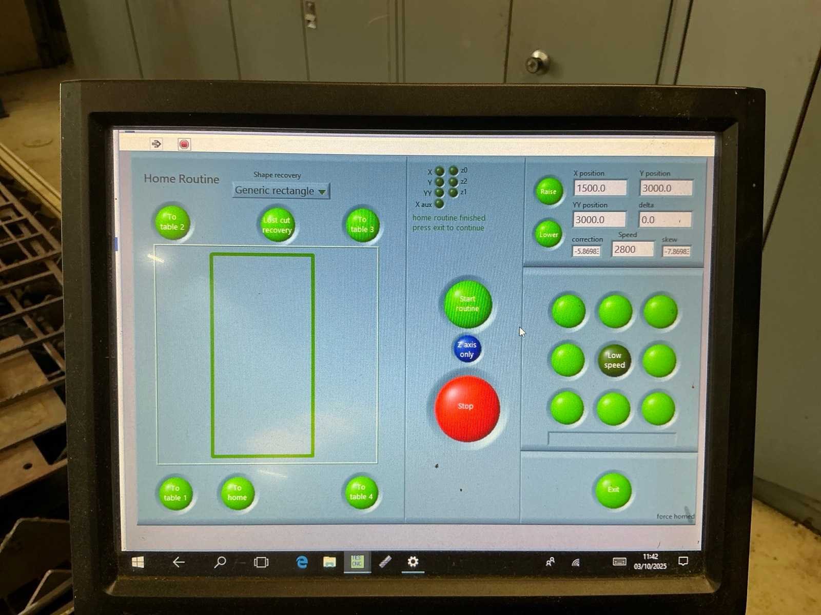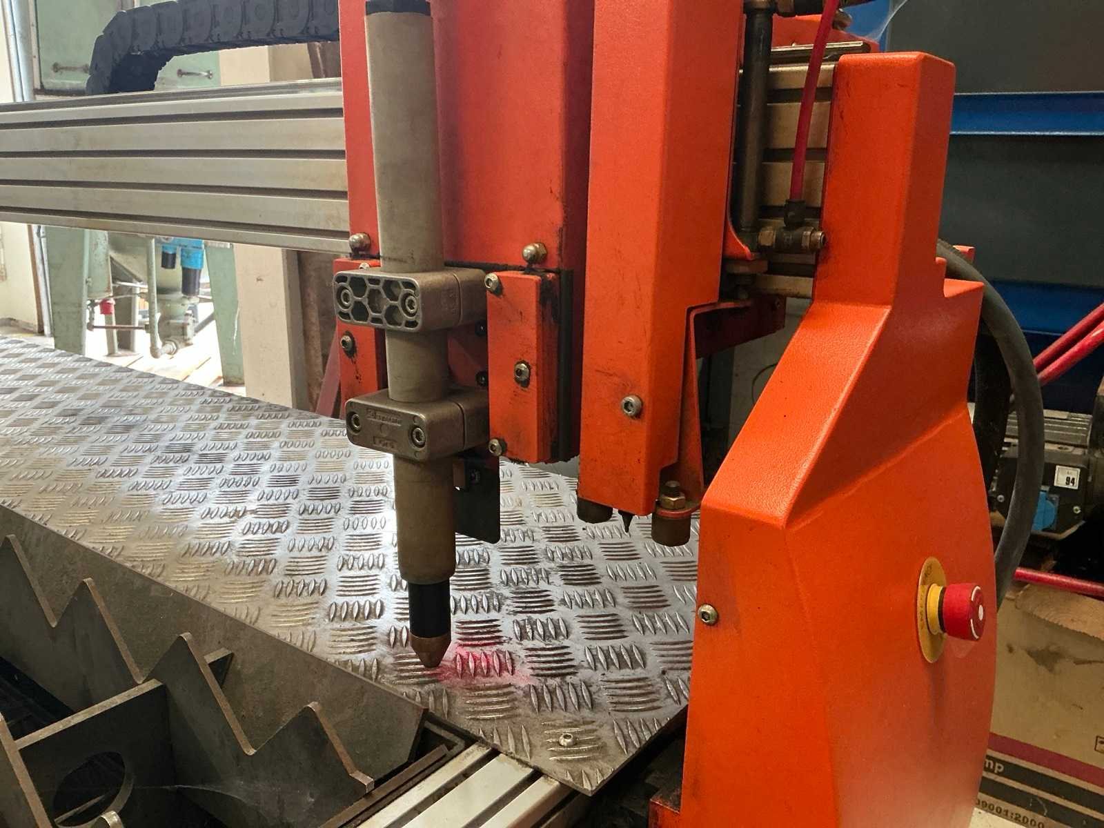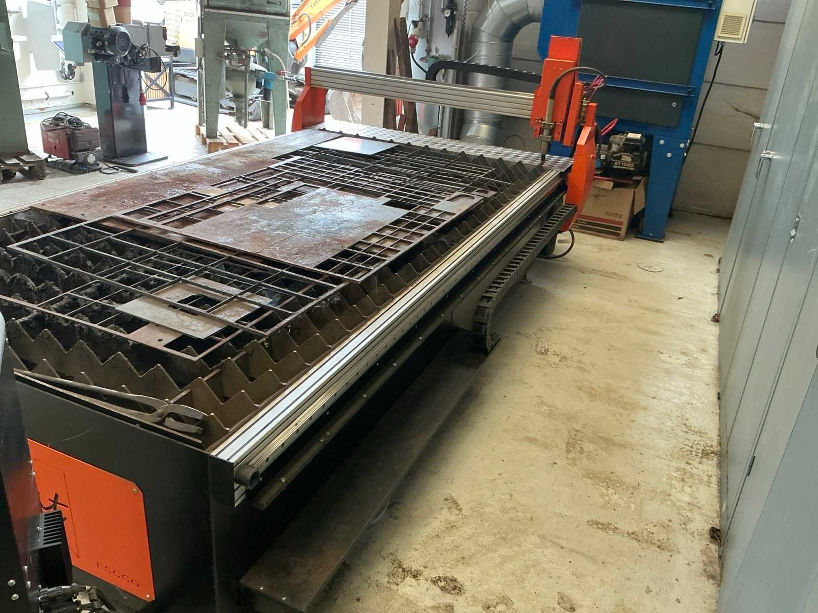 Zelf te demonteren heftruck aanwezig indien gevraagd exclusief afzuiging Nee Merk: ESCCO Type: Procut 1050BB Bouwjaar: 2018 Serienummer: 847 Snijbereik: 20mm Tafel afmeting l: 3000mm Tafel afmeting b: 1500mm Merk en type plasma-unit: Hypertherm Powermax 105 Max. snijdikte: 22mm Aansluiting: 380V Machinegewicht: 800kg Afmeting l: 3495mm Afmeting b: 2100mm Afmeting h: 1450mm