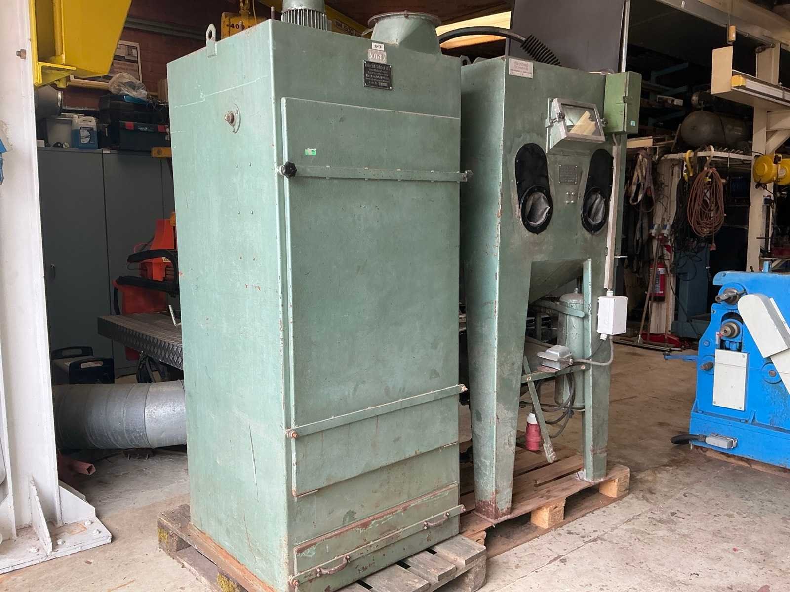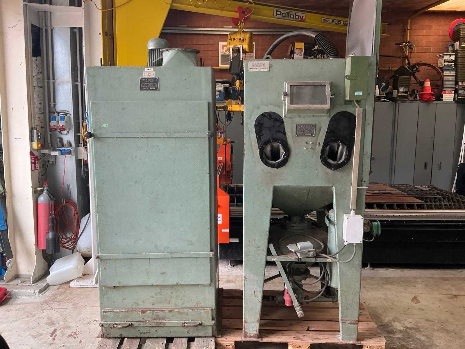 Filterkast afmetingen 1400x880x2100 Kastdeur automatisch met luchtpiston vorkheftruck aanwezig indien gewenst Nee Merk: Heinrich Schlick K.G. Type: Sandtrahlgeblase Serienummer: 17579/80 Zand: true Kamer afmeting l: 800mm Kamer afmeting b: 800mm Kamer afmeting h: 800mm Afzuiging: true Aansluiting: 380V Afmeting l: 950mm Afmeting b: 1050mm Afmeting h: 1900mm