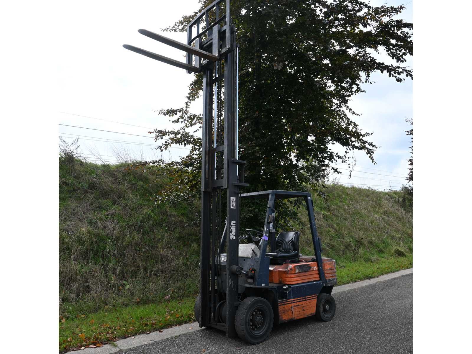 No Merk: Tailift Toyota Type: FD25 Bouwjaar: 1996 Brandstof: Diesel Mast: Standaard Aantal wielen: 4 Afgelezen urenstand: 2504 Side-shift: true Eigen gewicht: 3800kg Hefvermogen: 2500kg Hefhoogte: 4000mm Vol rubber banden: true Minimale doorrijhoogte: 2550mm Diesel: true Leveringsvoorwaarden: Gratis op vrachtwagen