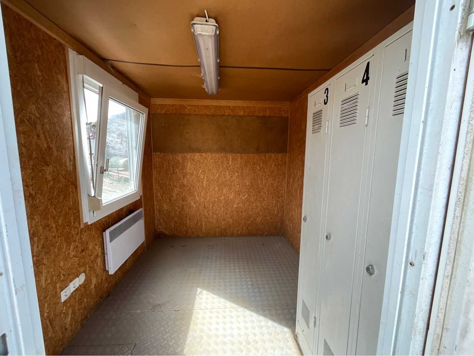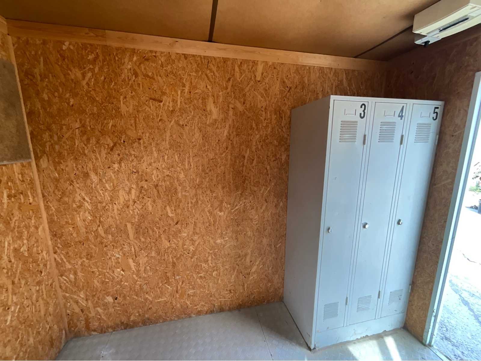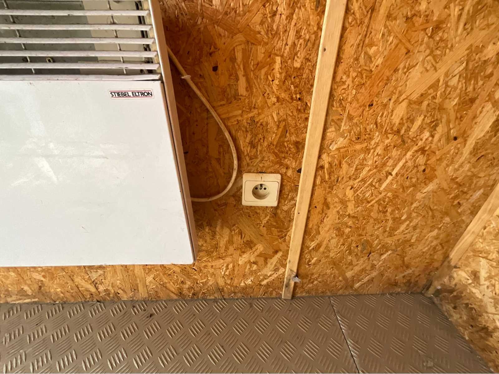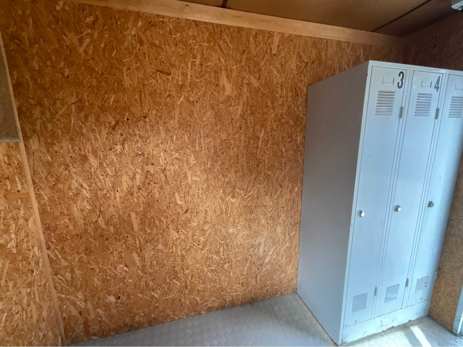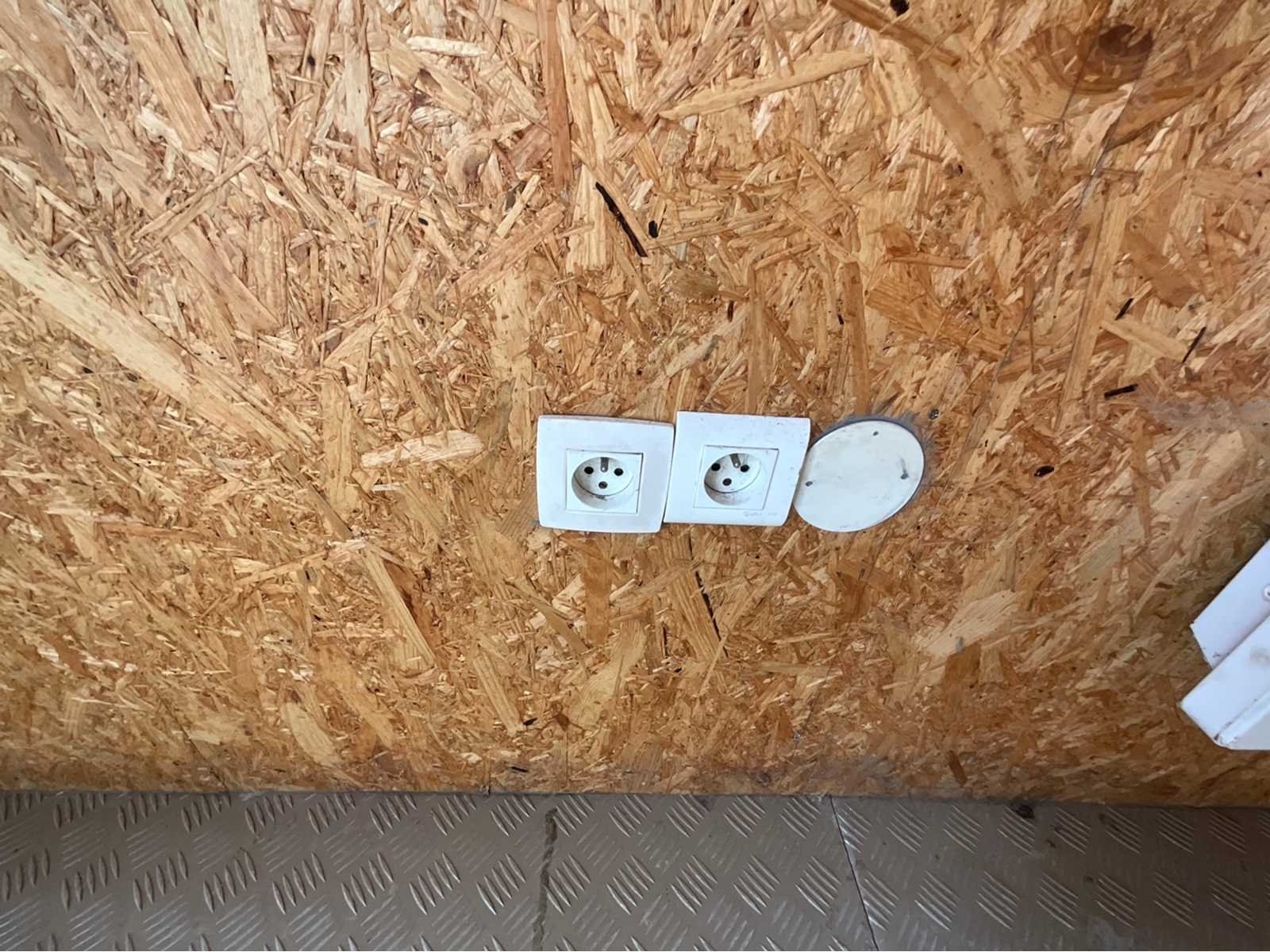 Enkel- en driefasige voeding Neon verlichting Stiebel Eltron wandkachel 3-deurs lockers 3 enkelfasige stopcontacten OSB wandbekleding Aluminium antislip vloer Draai-kiepraam PVC Non Aantal ramen: 1 Eigen gewicht: 1200kg Totale afmeting L: 2400mm Totale afmeting Breedte: 2200mm Totale afmeting Hoogte: 2400mm