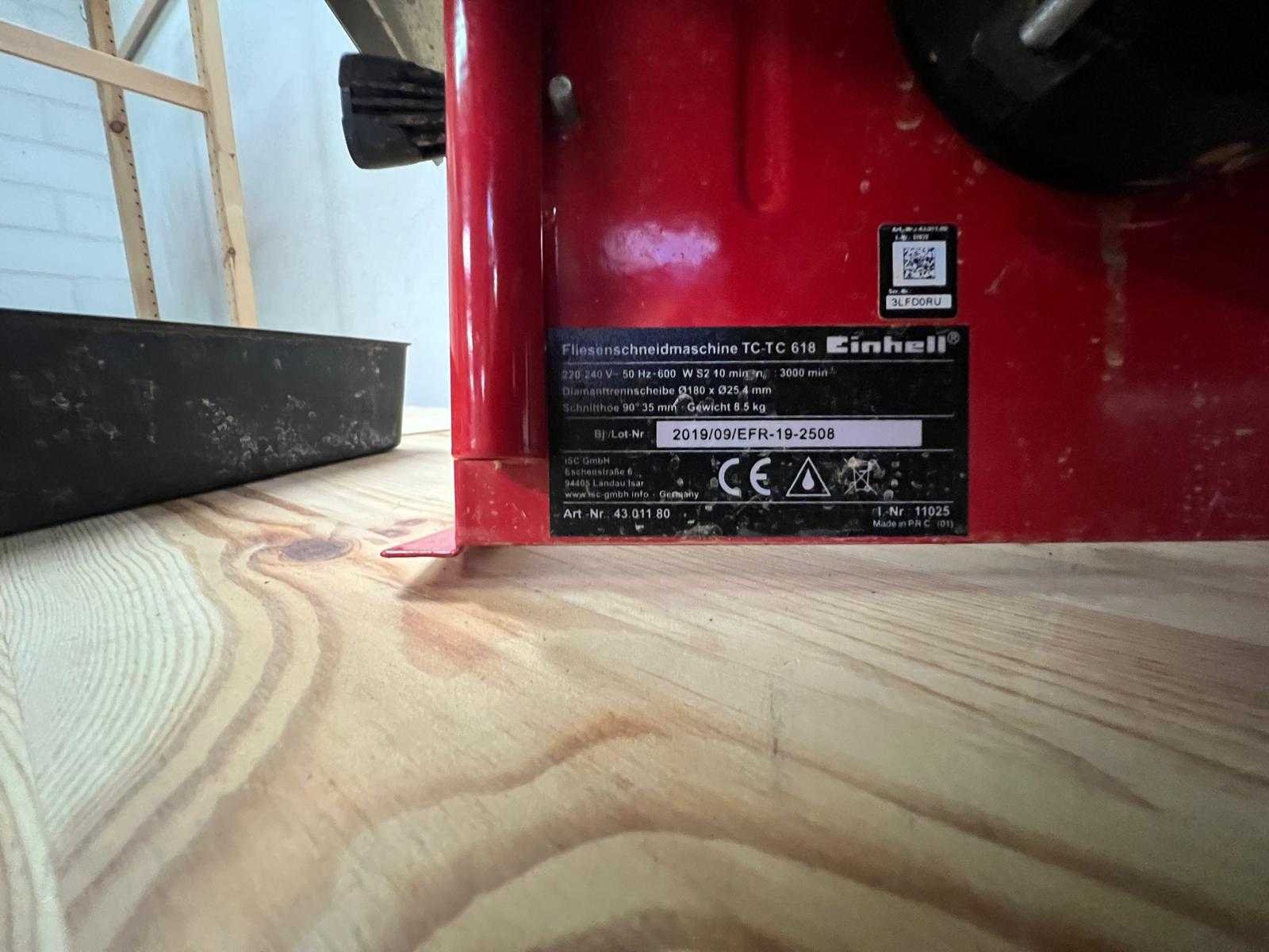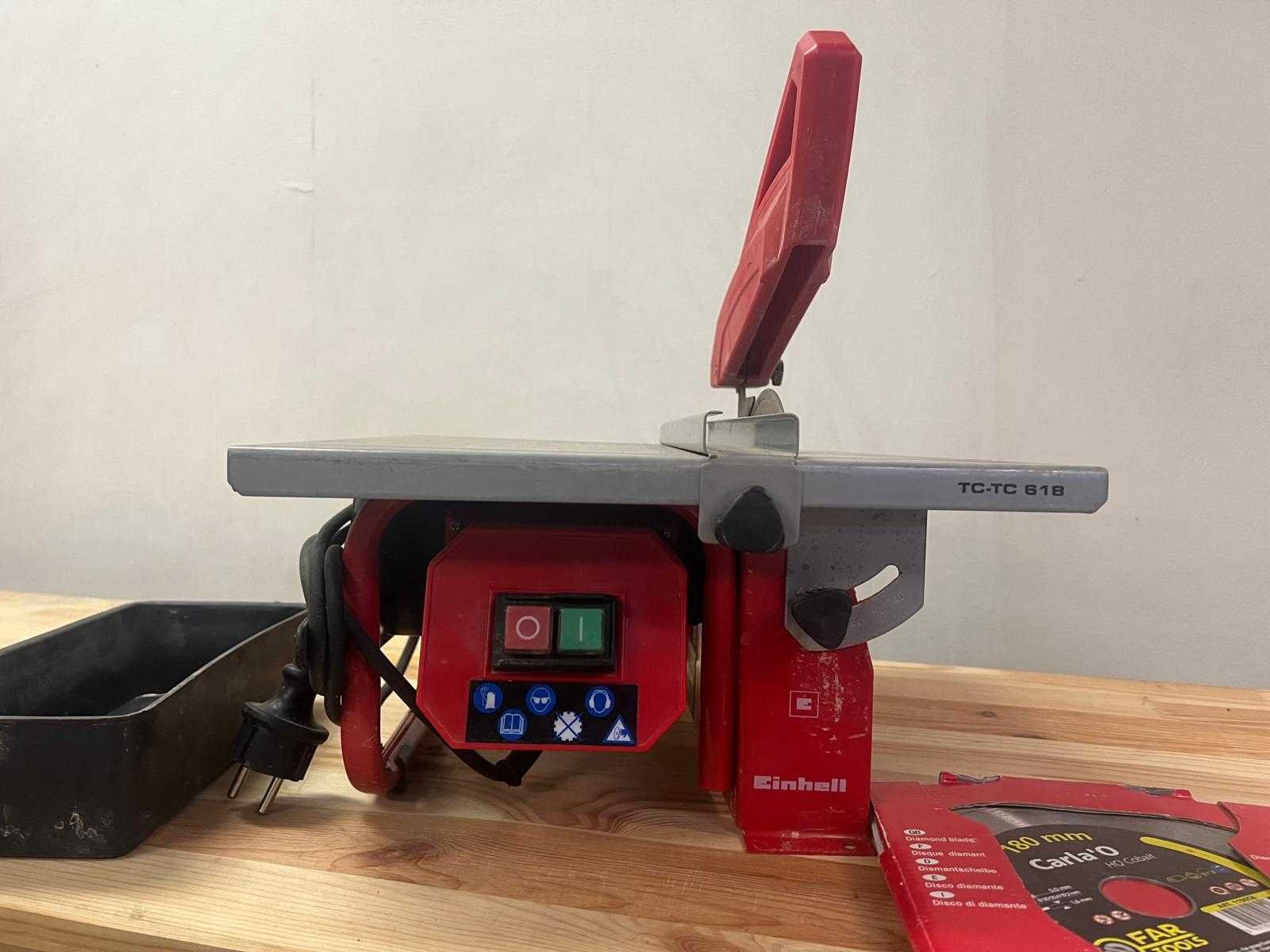 Tegelzaagmachine van het merk Einhell, model TC-TC 618. - Vermogen: 600 W - Spanning: 230 V / 50 Hz - Toerental: 3000 t/min - Zaagblad: Ø180 x Ø25,4 mm (diamantzaagblad) - Maximale zaaghoogte: 35 mm Wordt geleverd met een Fartools Carlia’O HQ Cobalt 180 mm diamantzaagblad. Machine vertoont lichte gebruikssporen maar verkeert in goede staat. Inclusief extra opvangbak en zaagblad in verpakking. Nee Merk: Einhell Model: TC-TC 618 Kleur: Rood/grijs
