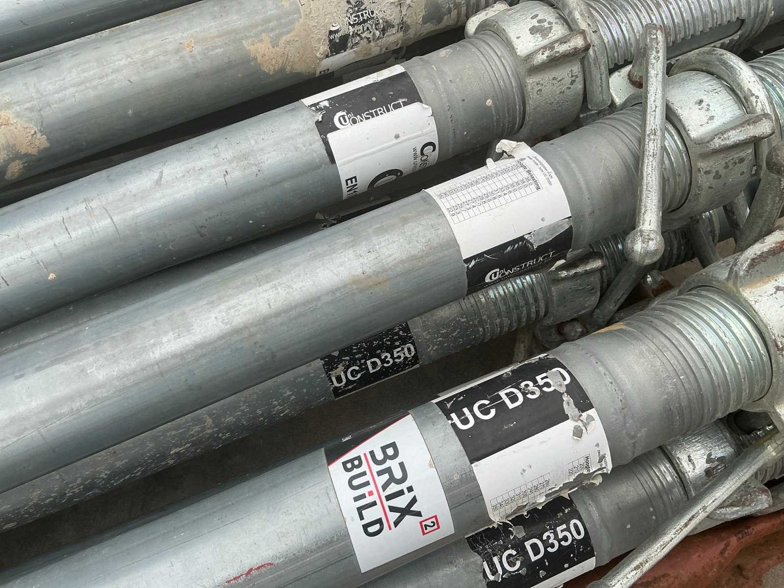 Verzwaarde (verstevigde) schoren UC D350 ingeschoven 2m lang maximaal 3M55 zonder bok waar deze in gestockeerd liggen. Nee Leveringsvoorwaarden: Heftruck aanwezig