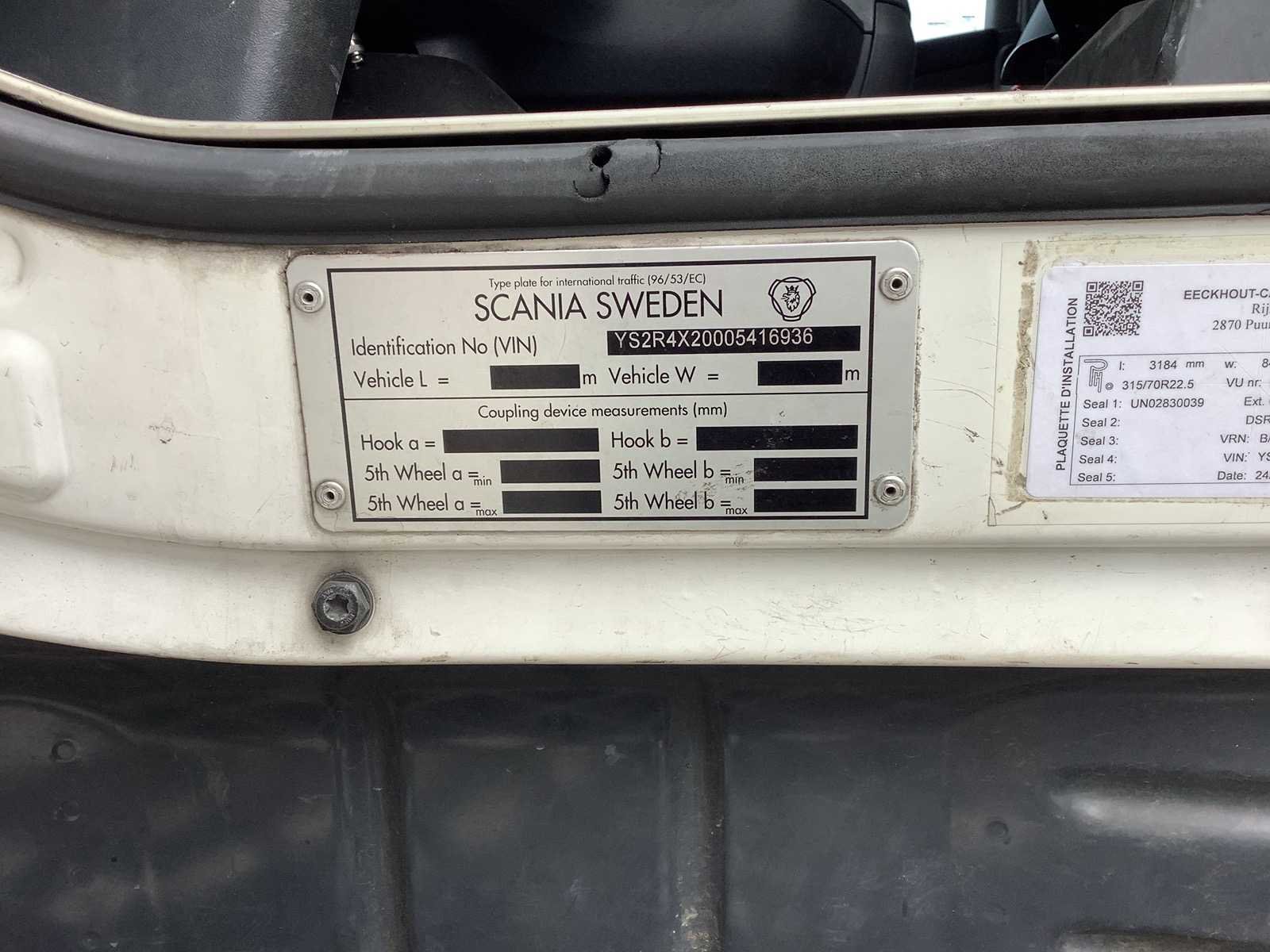 No Merk: Scania Type: R450 Bouwjaar: 2016 Chassisnummer VIN: Y2SR4X20004516936 Cilinderinhoud: 12742cc APK vervaldatum: 10/02/2026 Datum eerste toelating: 05/02/2016 Type transmissie: Automatisch Aantal assen: 2 Fuel Type: Diesel Aantal sleutels: 1 Emissieklasse: Euro 6 Slaapcabine: true Totale afmeting L: 6115mm Totale afmeting Breedte: 2550mm Afgelezen kilometerstand: 748824km Nationaliteit documenten: Belgische Kentekenpapieren compleet?: true Aantal zitplaatsen: 2 Automaat: true Diesel: true