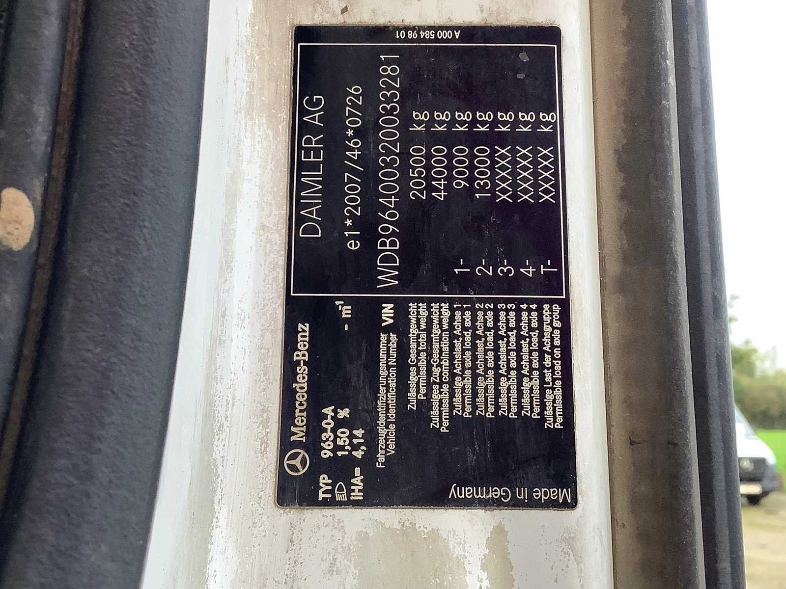 Right-hand drive met veegborstels No Merk: Mercedes-Benz Type: Arocs 963-0-A Bouwjaar: 2016 Chassisnummer VIN: WDB96400320033281 Cilinderinhoud: 12809cc APK vervaldatum: 29/09/2025 Datum eerste toelating: 11/08/2016 Type transmissie: Handmatig Aantal assen: 2 Fuel Type: Diesel Laadvermogen: 19000kg Aantal sleutels: 1 Emissieklasse: Euro 6 Totale afmeting L: 8040mm Totale afmeting Breedte: 2550mm Totale afmeting Hoogte: 3600mm Afgelezen kilometerstand: 113349km Nationaliteit documenten: Belgische Handgeschakelde versnellingsbak: true Diesel: true