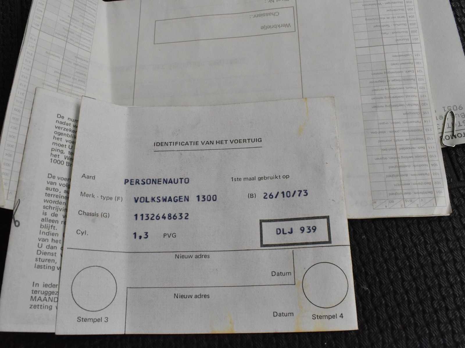 PROJECT No Merk: VOLKSWAGEN Type: KEVER 1300 Bouwjaar: 1973 Chassisnummer: 1132648632 Afgelezen kilometerstand: 62105 Brandstof: BENZINE Datum eerste inschrijving: 26/10/1973 Boorddocumenten aanwezig?: true Nationaliteit documenten: BELGISCH Aandrijving: ACHTER Transmissie: MANUEEL Aantal zitplaatsen: 4 Startinformatie: NEE Kleur: WIT Cilinderinhoud: 1300 Aantal cilinders: 4 Inschrijvingsbewijs - deel 1 : AANWEZIG Inschrijvingsbewijs - deel 2: AANWEZIG Gelijkvormigheidsattest aanwezig: true