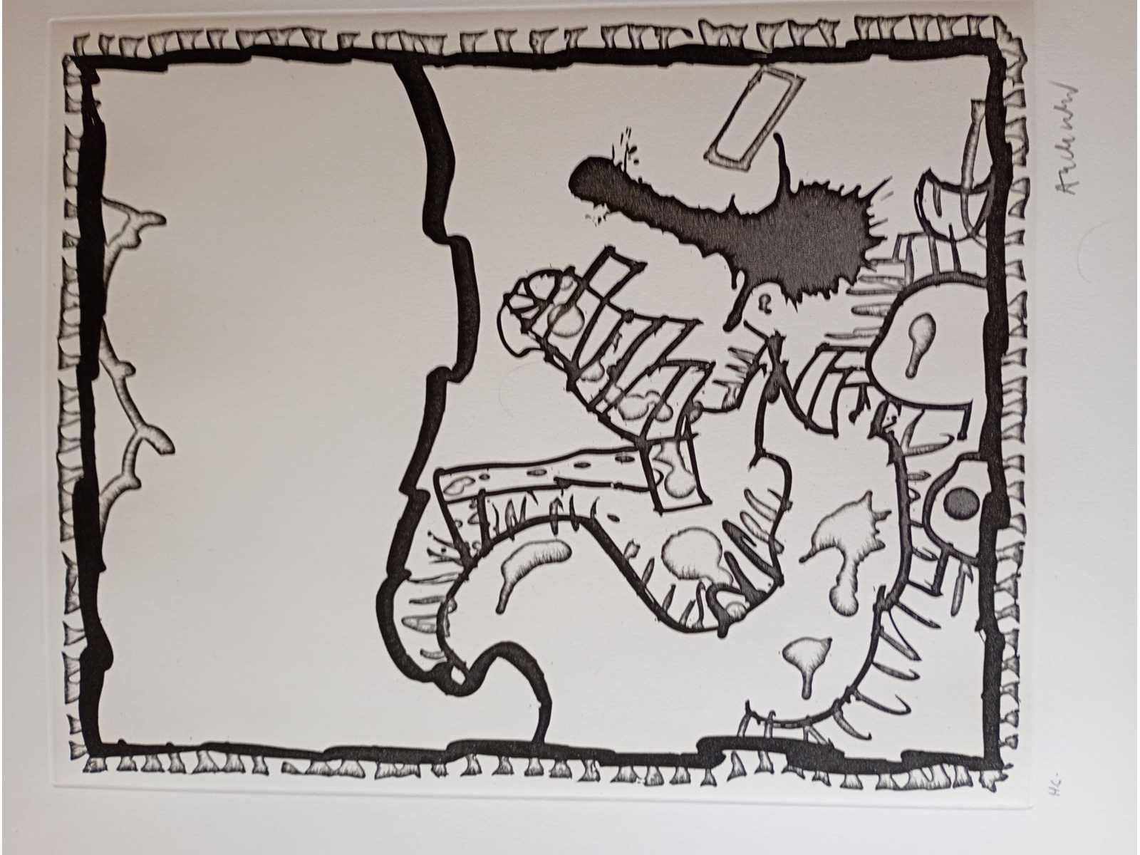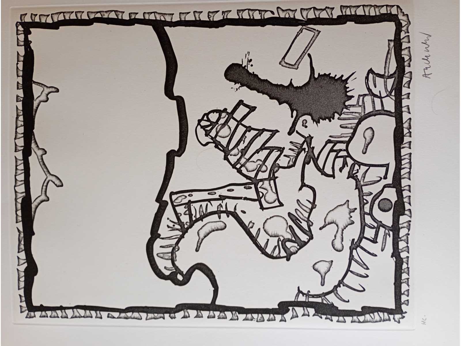 Pierre Alechinsky, orginele ets van de bekende Cobra kunstenaar Pierre Alechinsky. Handgesignieerd,afmetingen ca 51x44cm No Kunstenaar: Pierre Alechinsky Land: belgie Periode: 1927- Datering: 1981 Techniek: ets Materiaal: papier Handtekening/oplage: true Oplage: hc Gesigneerd: signed Hoogte: 55cm Breedte: 44cm