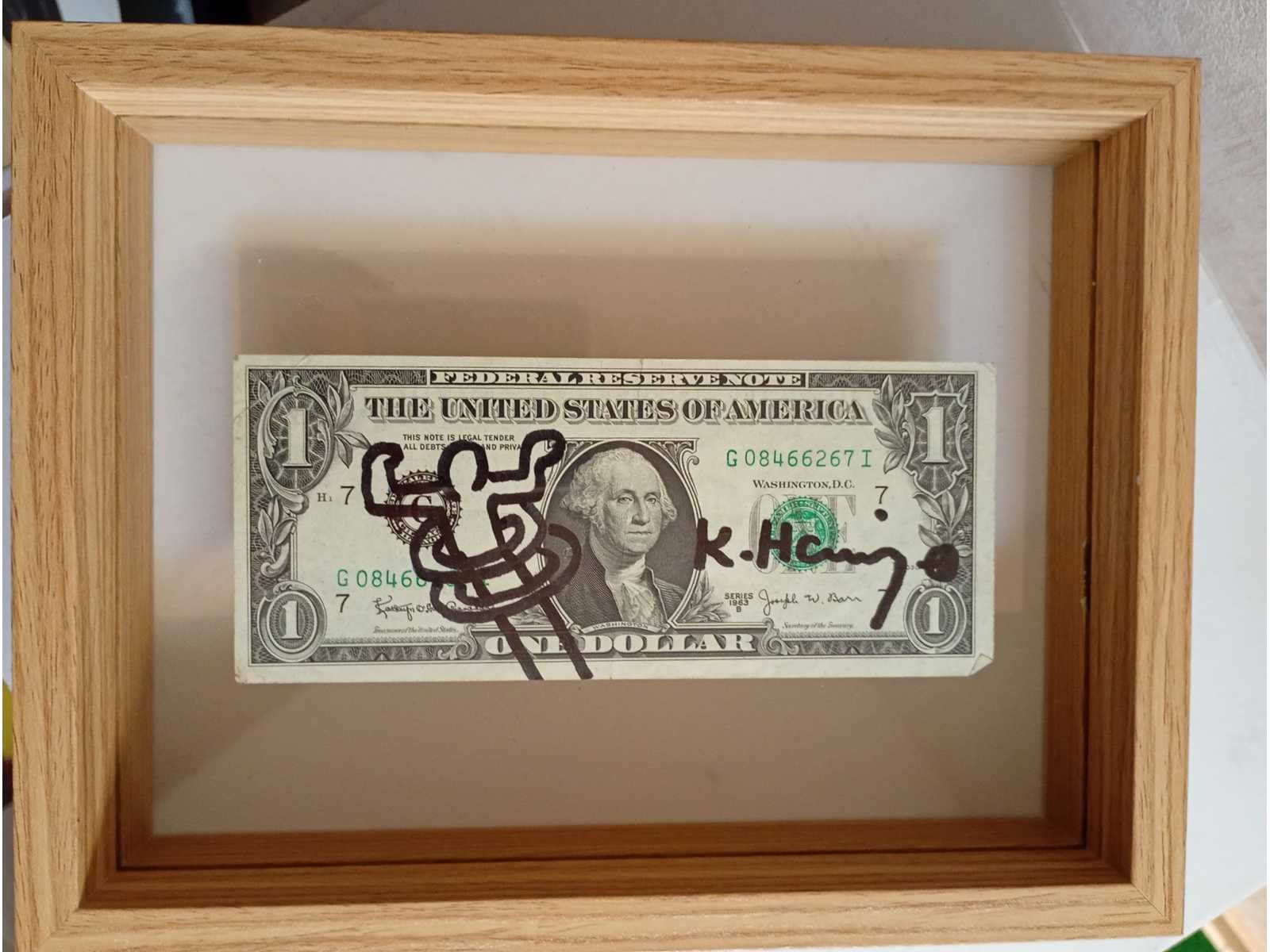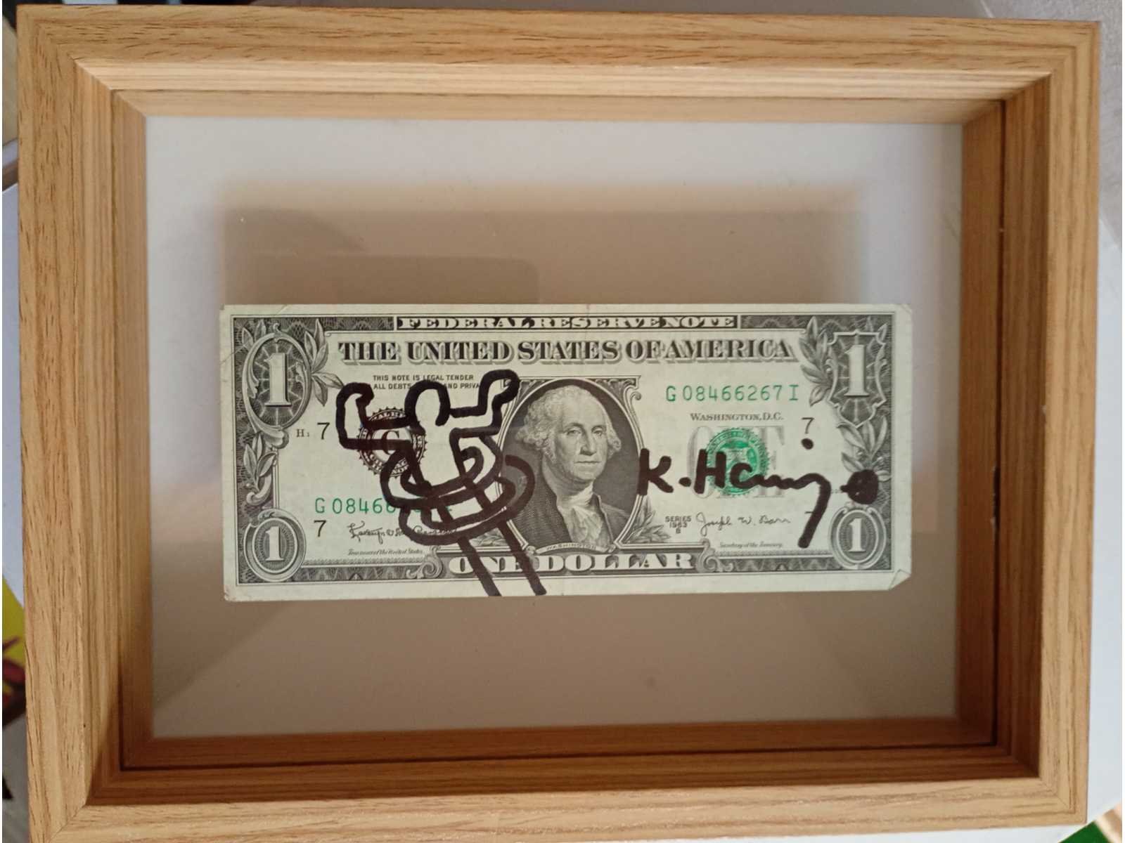 No Kunstenaar: K. Haring Land: American Regio: NY Titel van werk: Dollar Bill Drawing Periode: 1958-1990 Techniek: ink on paper Frame: true