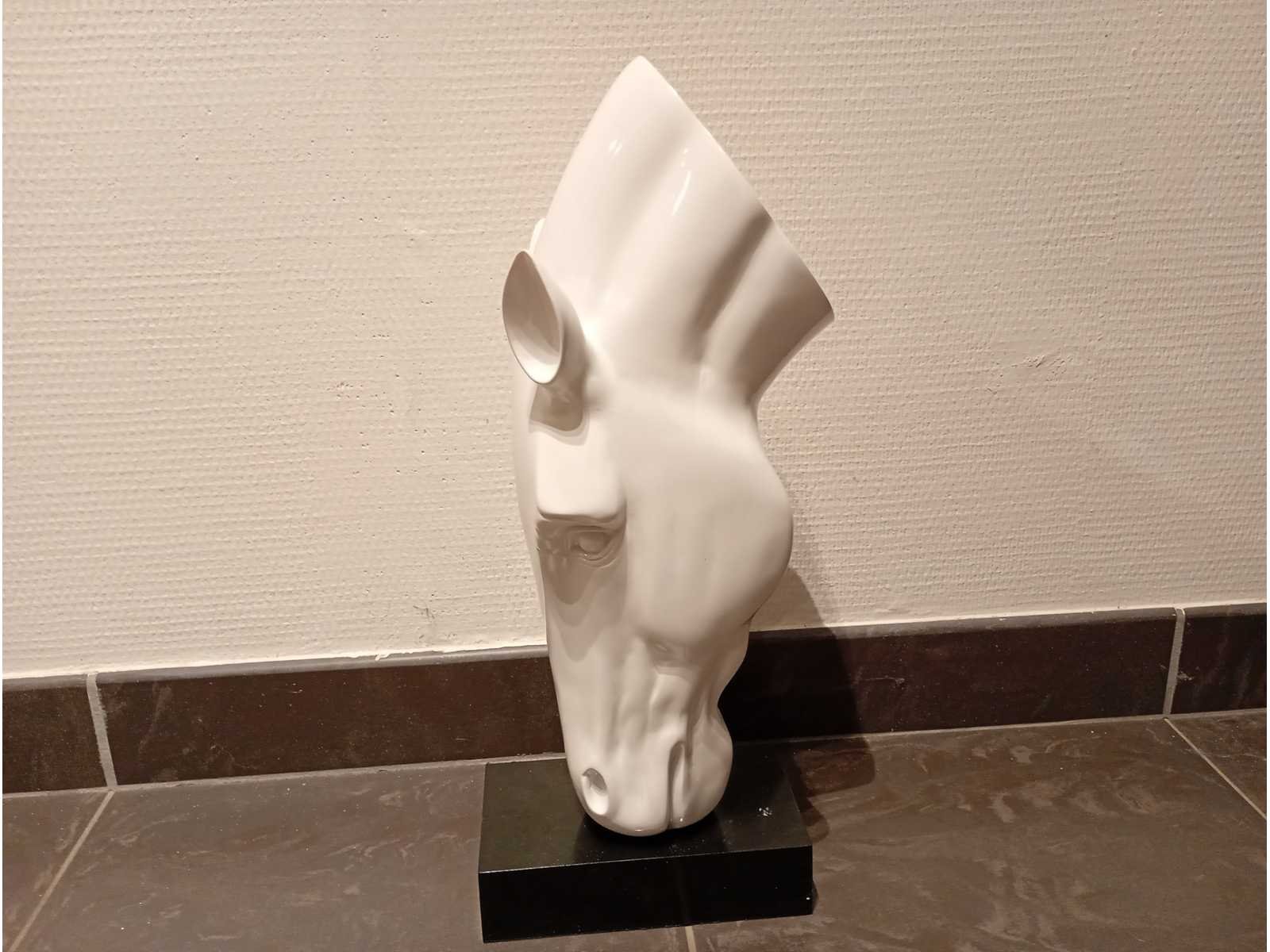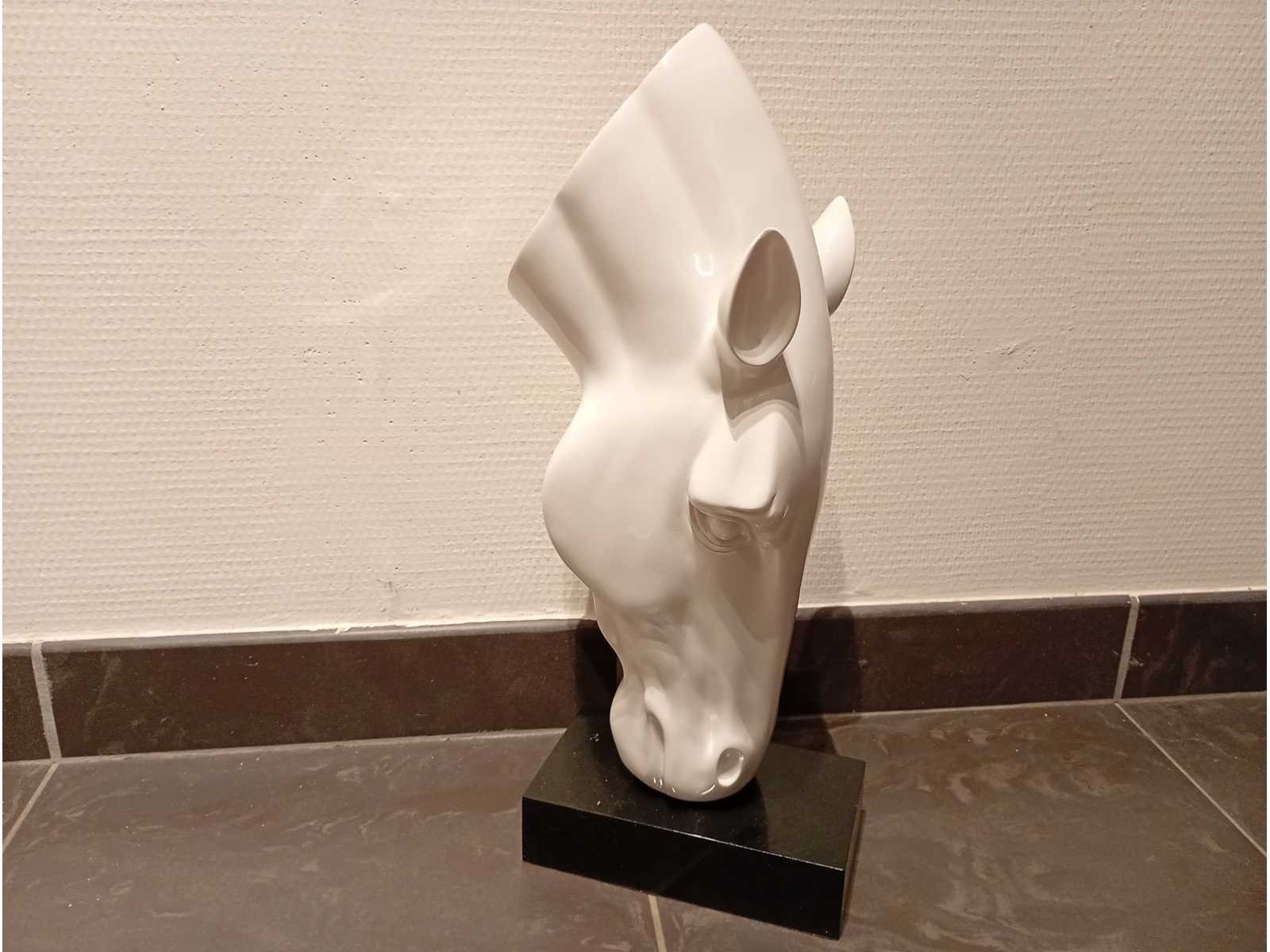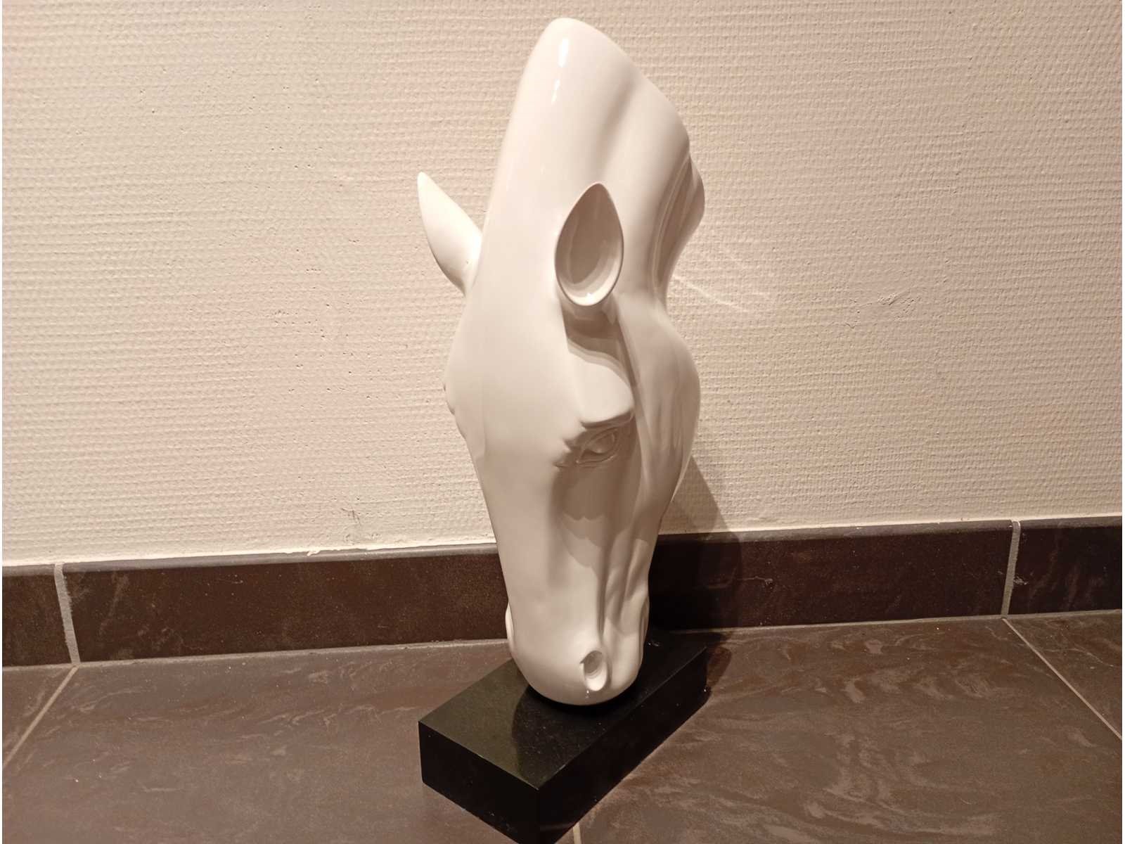 Paardenhoofd op sokkel. Zeer mooi uniek sculptuur uit poleyster . Een echte blikvanger voor in uw woning. Hoogte ca:50cm No Titel van werk: Horse Materiaal: Resin Hoogte incl. sokkel: 50 Sokkel: true