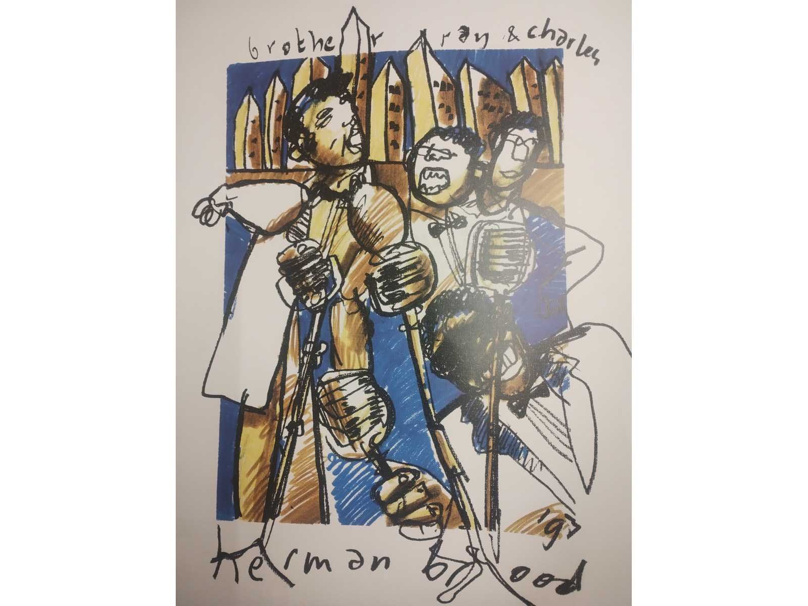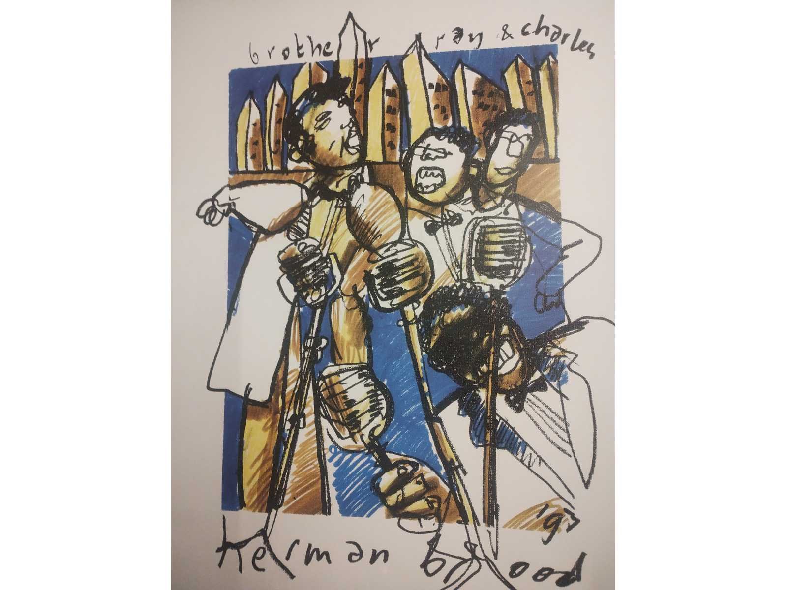 Herman Brood offset lithografie poster in 1993 uitgebracht uit de Pop-Collectie voor Free Reccord shop. Afmetingen ca 50x60 cm No Kunstenaar: Herman Brood Land: Nederland Titel van werk: Brother Ray Charles Periode: 1985-2001 Techniek: offset Materiaal: papier Hoogte: 60cm Breedte: 50cm