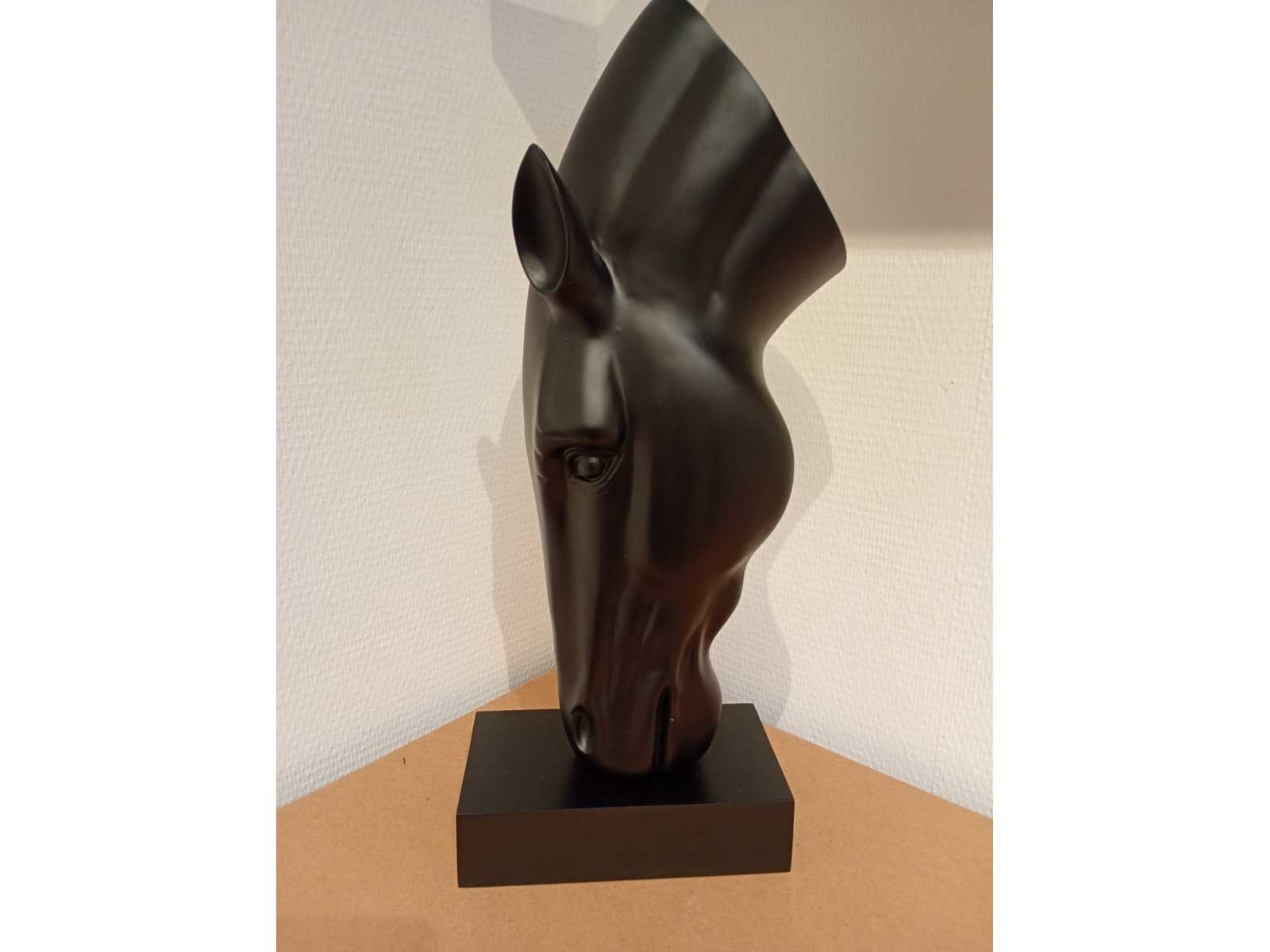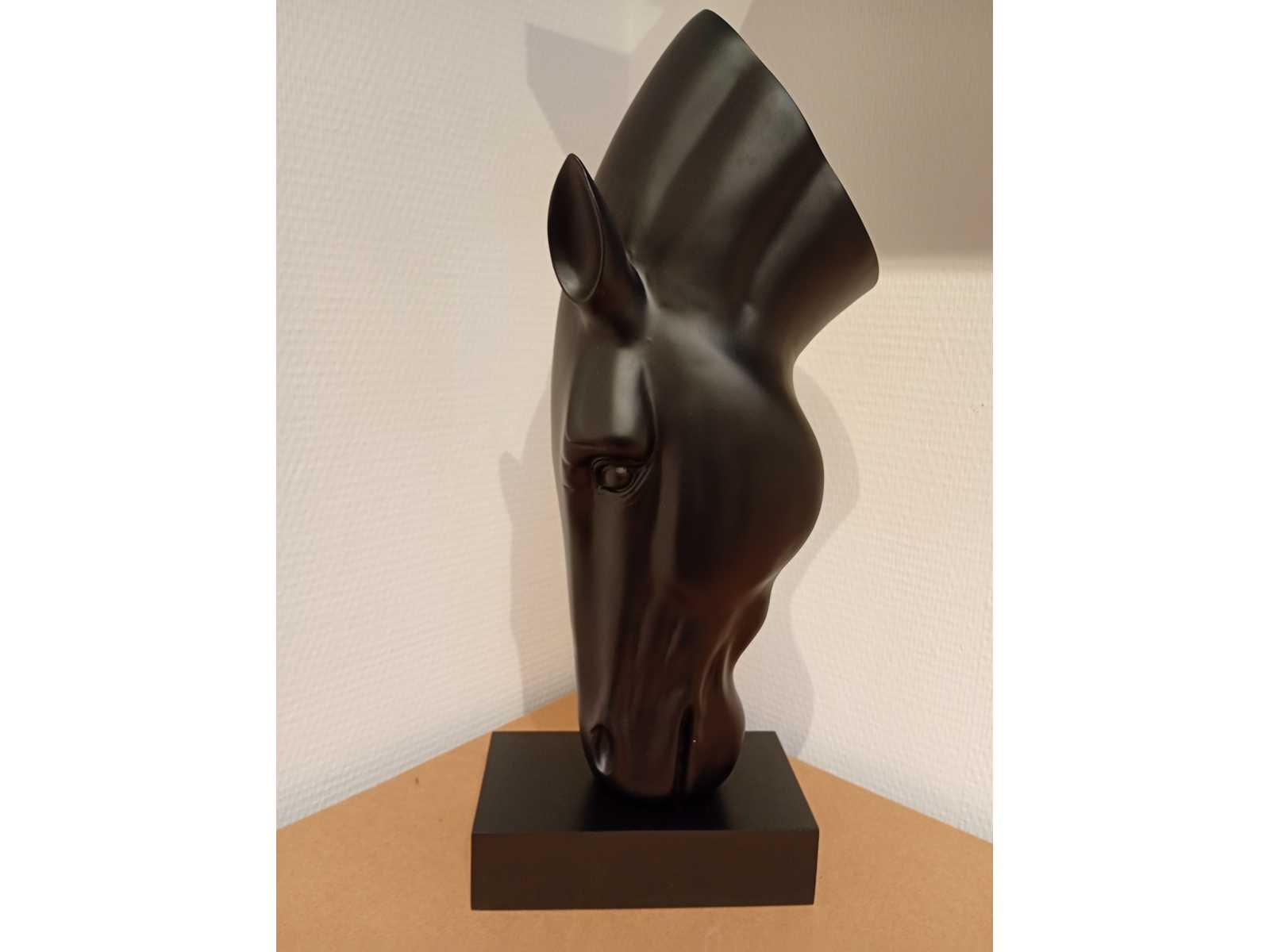 Paardenhoofd op sokkel. Zeer mooi uniek sculptuur uit poleyster . Een echte blikvanger voor in uw woning. Hoogte ca:50cm No Kunstenaar: Pop-Art Lengte: 50cm