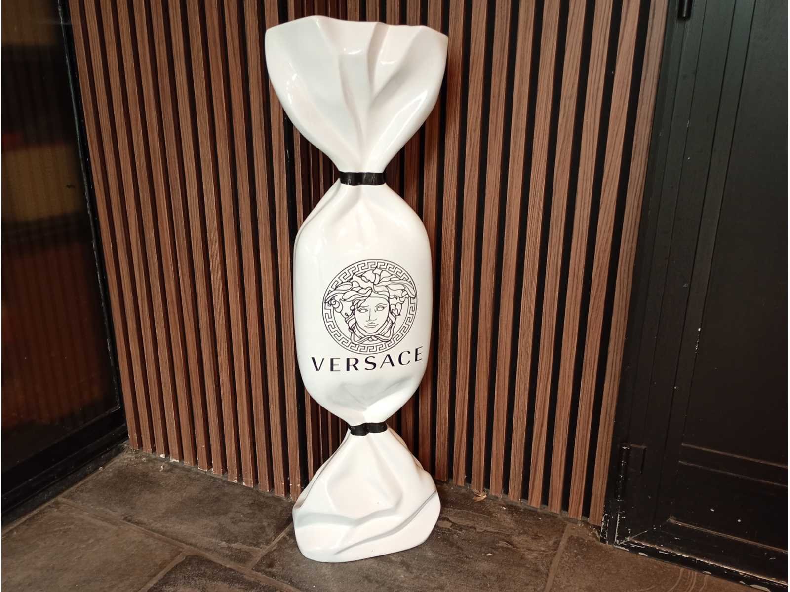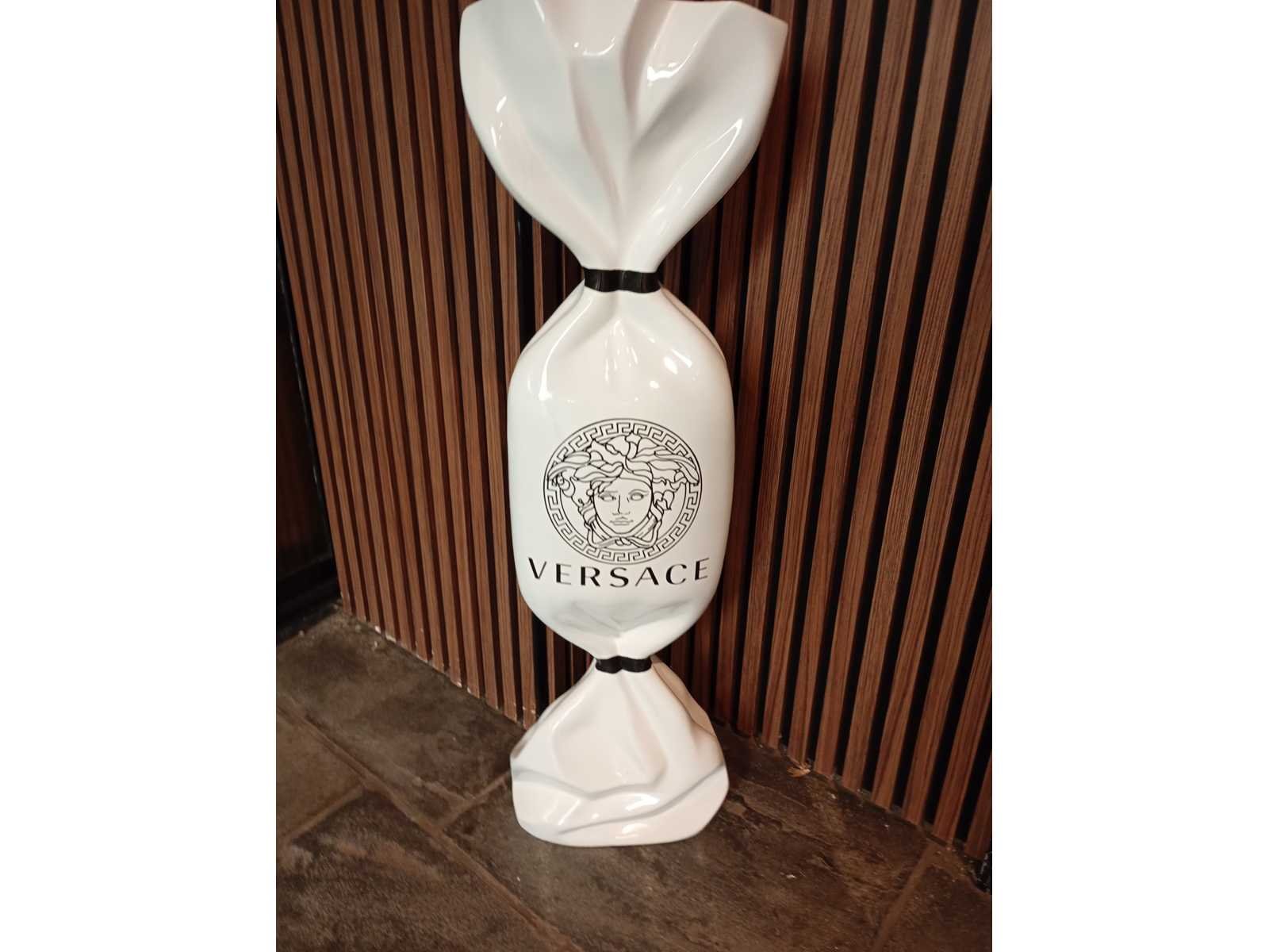 Zeer mooi wit met de hand beschilderd pop-art sculptuur van een “Candy Tofee”. Hoogte ca 90 cm. Een echte blikvanger voor in elke woning. No Kunstenaar: Pop-Art Lengte: 90cm