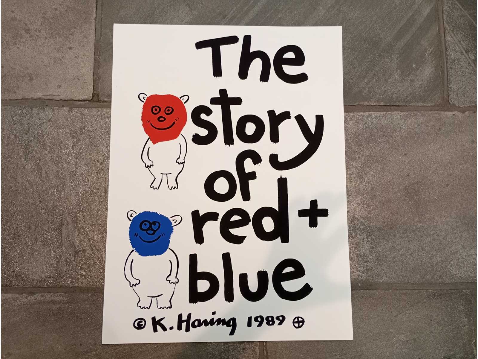 K. Haring Voor de reeks Red and Blue gebruikte Keith Haring enkel blauw en rood om op een essentiële en doordachte manier zijn compositie samen te stellen. Lithografie, niet genummerd op achterzijde voorzien van stempel foundation. Afmetingen ca. 42 x 56cm No Kunstenaar: Keith Haring Land: usa Hoogte: 56cm Breedte: 42cm