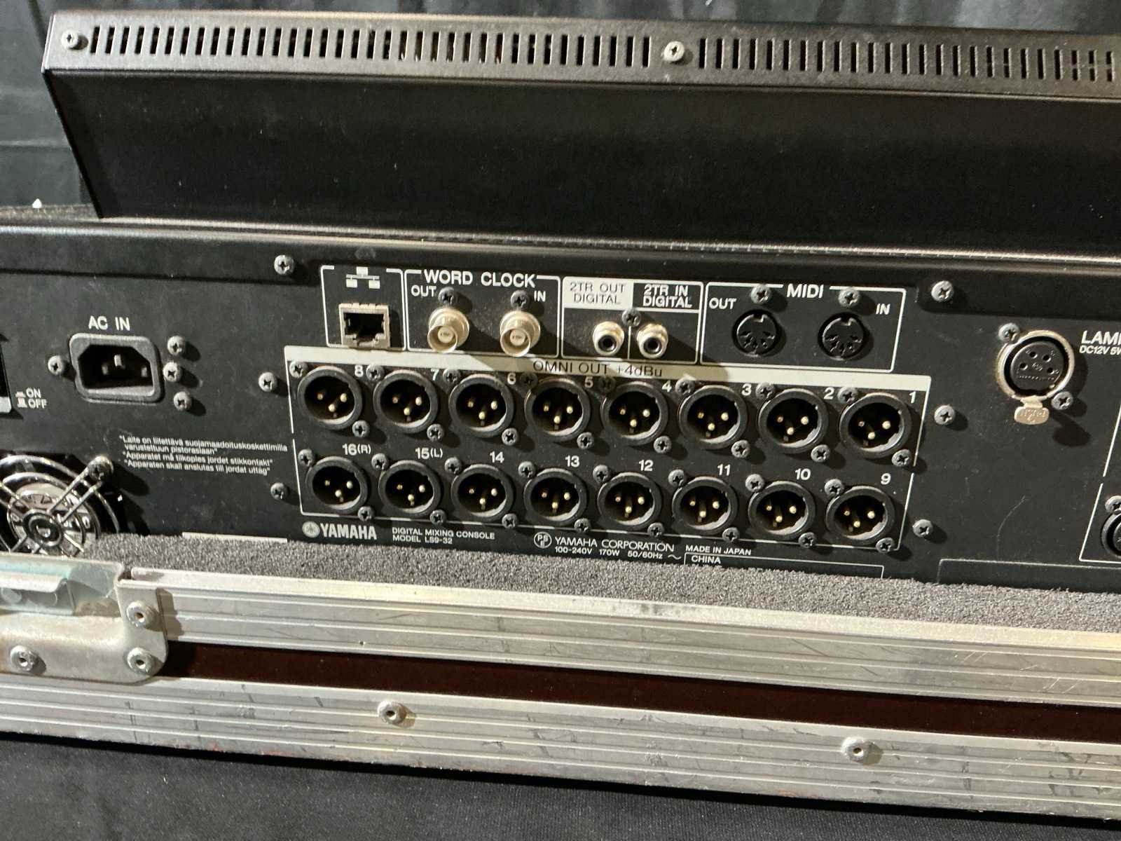 <li> Ingangen: 32 mono mic/line-ingangen + 4 stereo-ingangen </li><li> Uitgangen: 16 mixbussen, 8 matrixbussen, plus stereo- en mono-uitgangen met LCR-modus </li><li> Verwerking: 32-bits interne verwerking met een 58-bits accumulator </li><li>niet getest</li> No Merk: Yamaha Type: LS9-32 Eigen gewicht: 70kg