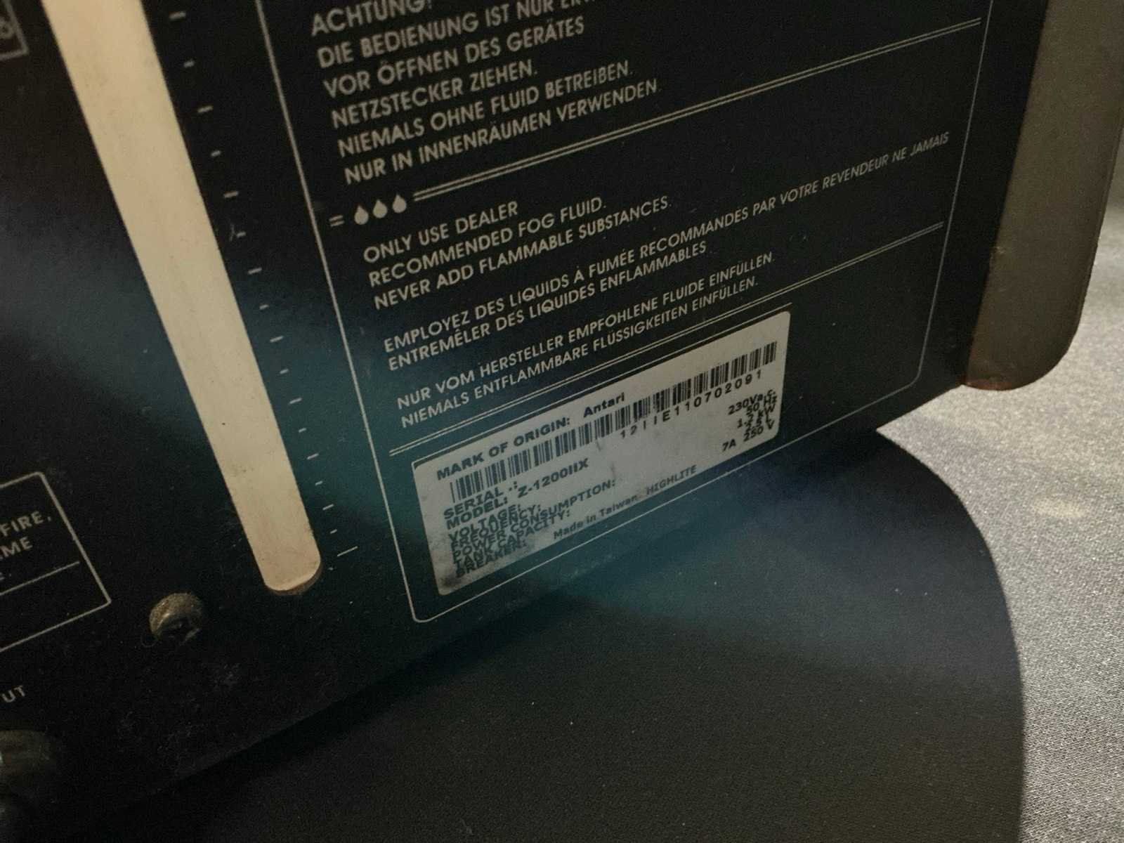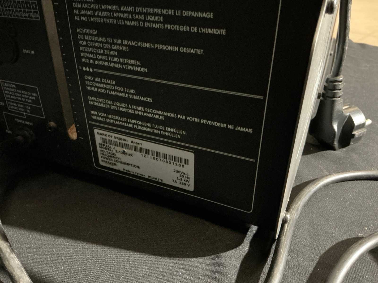 Niet getest - inclusief controller en beugel Nee Merk: Antari Type: 1200 MK2 Afstandsbediening: true Aansluiting: 230V