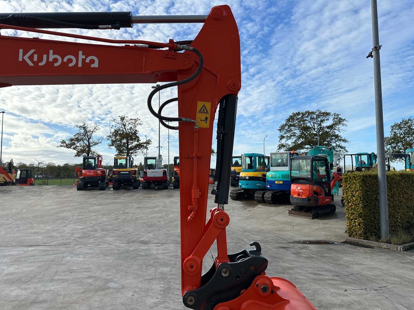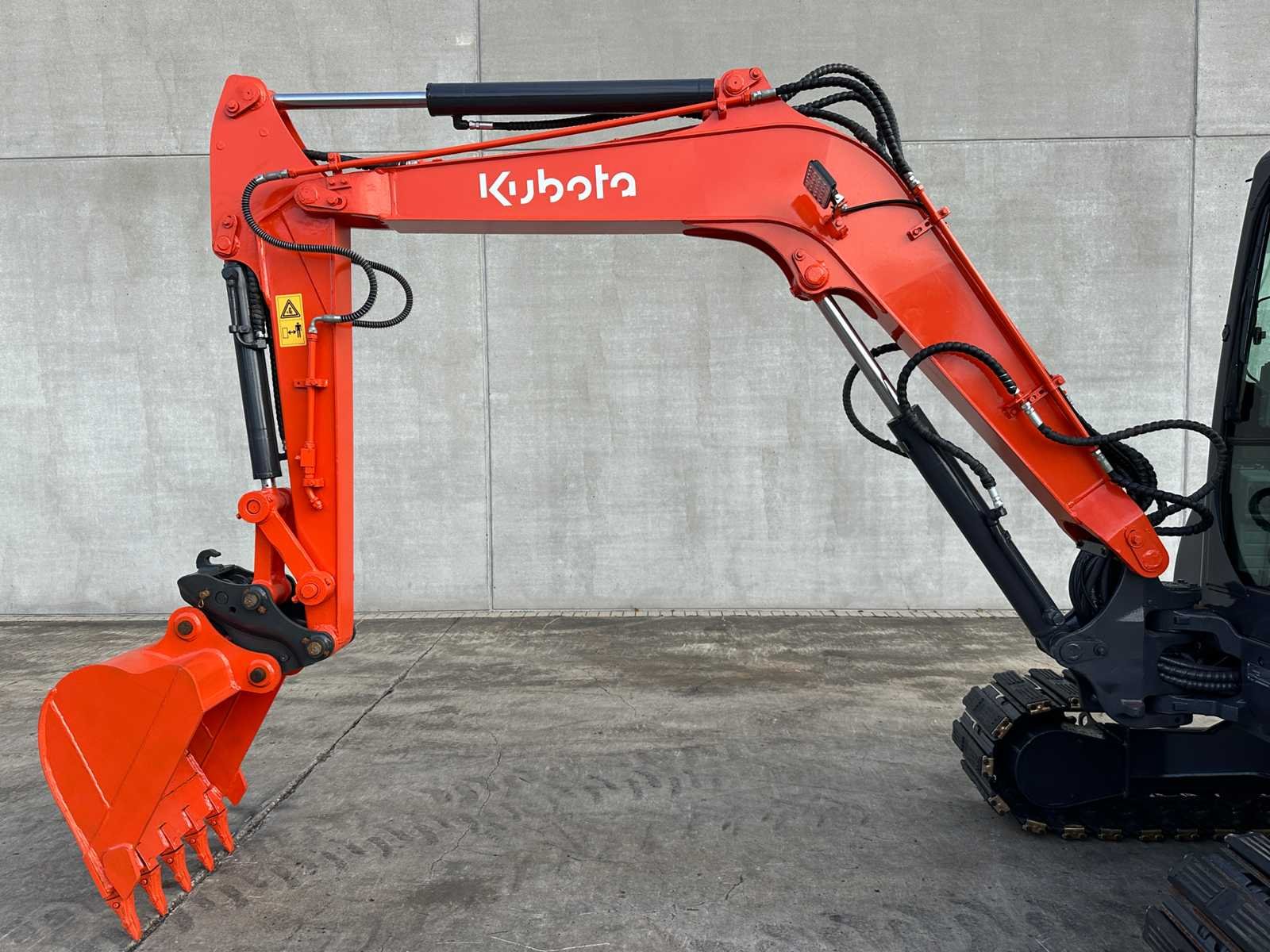 Duwblad Rupsen met rubberpads Mechanische snelwissel Geen documenten Nee Merk: Kubota Type: KX155-3SZ Bouwjaar: 2012 Serienummer: H81613 Merk motor: Kubota Motorvermogen (kW): 31.2kW Aantal cilinders: 4 Brandstof: Diesel Graafbak afm. b: 650mm Rups breedte: 400mm Afgelezen urenstand: 4462 Eigen gewicht: 5115kg Totale afmeting L: 5500mm Totale afmeting Breedte: 2050mm Totale afmeting Hoogte: 2700mm GS Code: 8429521200