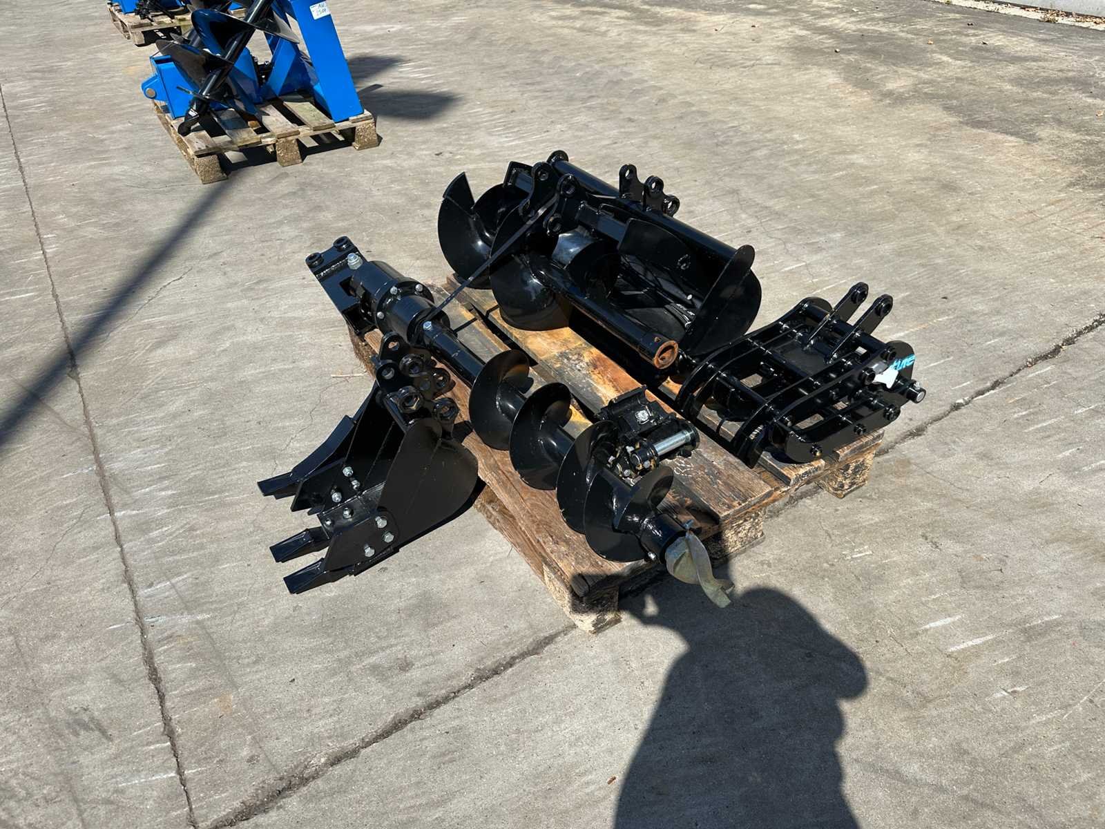 8 Verschillende uitrustingstukken voor minikraan met oa: - Grondboor dia 200 - Grondboor dia 300 - Grondboorkop - Grote graafbak - Kleine graafbak - Duimklem - Mechanische snelwissel - Ripper Nieuw Nee Merk: Giyi Bouwjaar: 2025 Eigen gewicht: 280kg Totale afmeting L: 1600mm Totale afmeting Breedte: 1000mm Totale afmeting Hoogte: 550mm