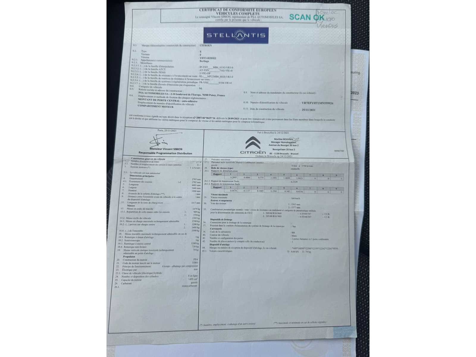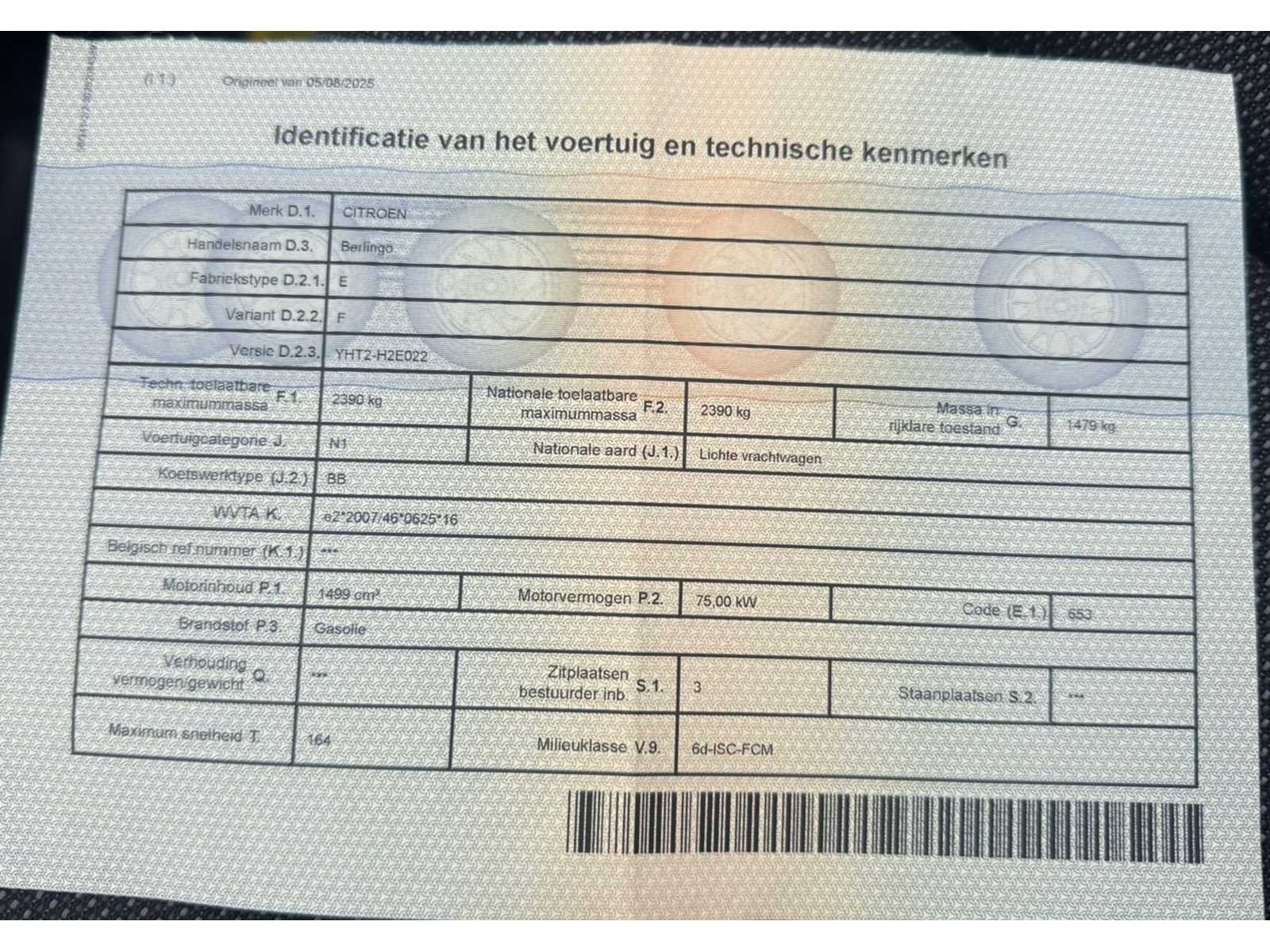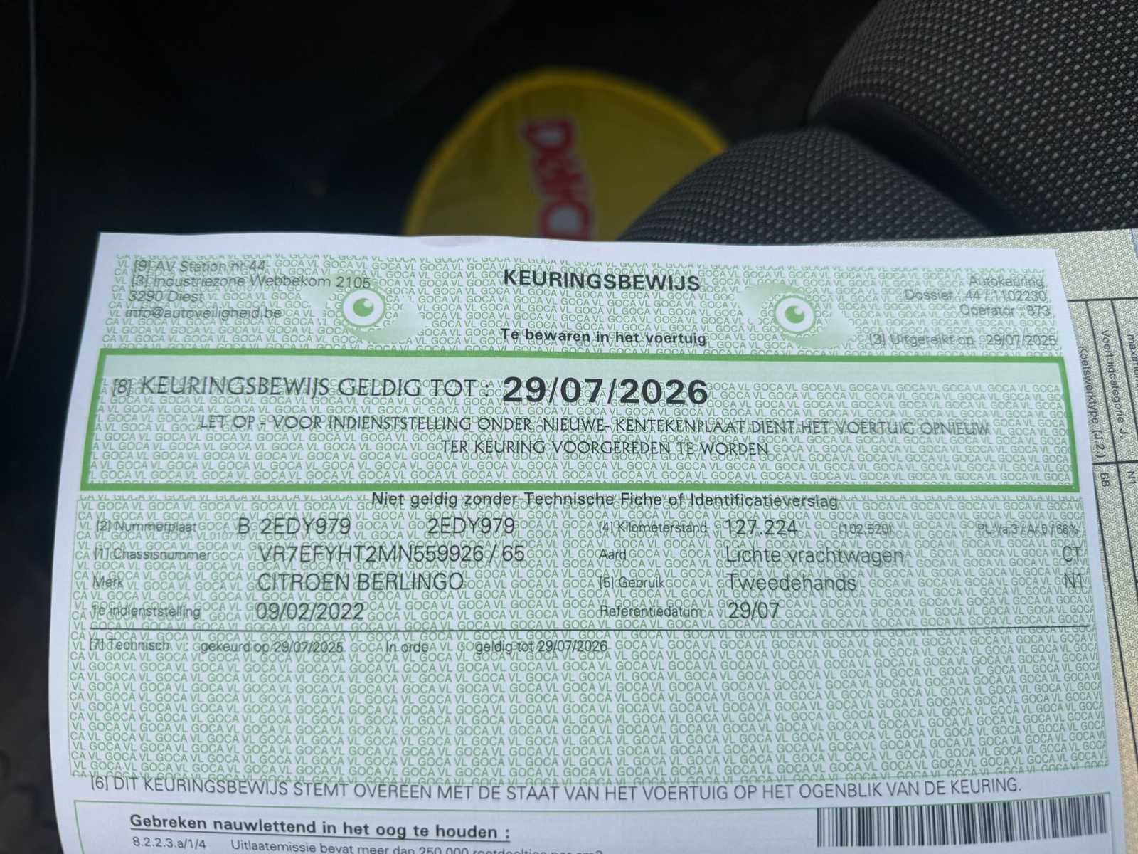 Nieuwe distributieriem en roetfilter! Goede staat word nog dagelijks mee gereden zuinige lichte vracht 6 versnelling Nee Merk: Citroën Model: Berlingo Bouwjaar: 2022 Afgelezen kilometerstand: 129671km Cilinderinhoud: 1499cc Vermogen (kW): 75kW Brandstof: diesel Chassisnummer: VR7EFYHT2MN559926 Datum eerste toelating: 9/02/2022 Vermogen (pk): 100hp Aantal zitplaatsen: 3 Transmissie: Handgeschakeld Emissieklasse: 6d-ISC-FCM Nationaliteit documenten: Belgisch Gelijkvormigheidsattest aanwezig: true Carpass: true Start en rijdt: Ja Keuringsrapport geldig tot: 29/07/2026 Vavato voert geen technische keuring uit.: true Airconditioning: true Navigatie: true Inschrijvingsbewijs - deel 1 : Aanwezig Inschrijvingsbewijs - deel 2: Aanwezig