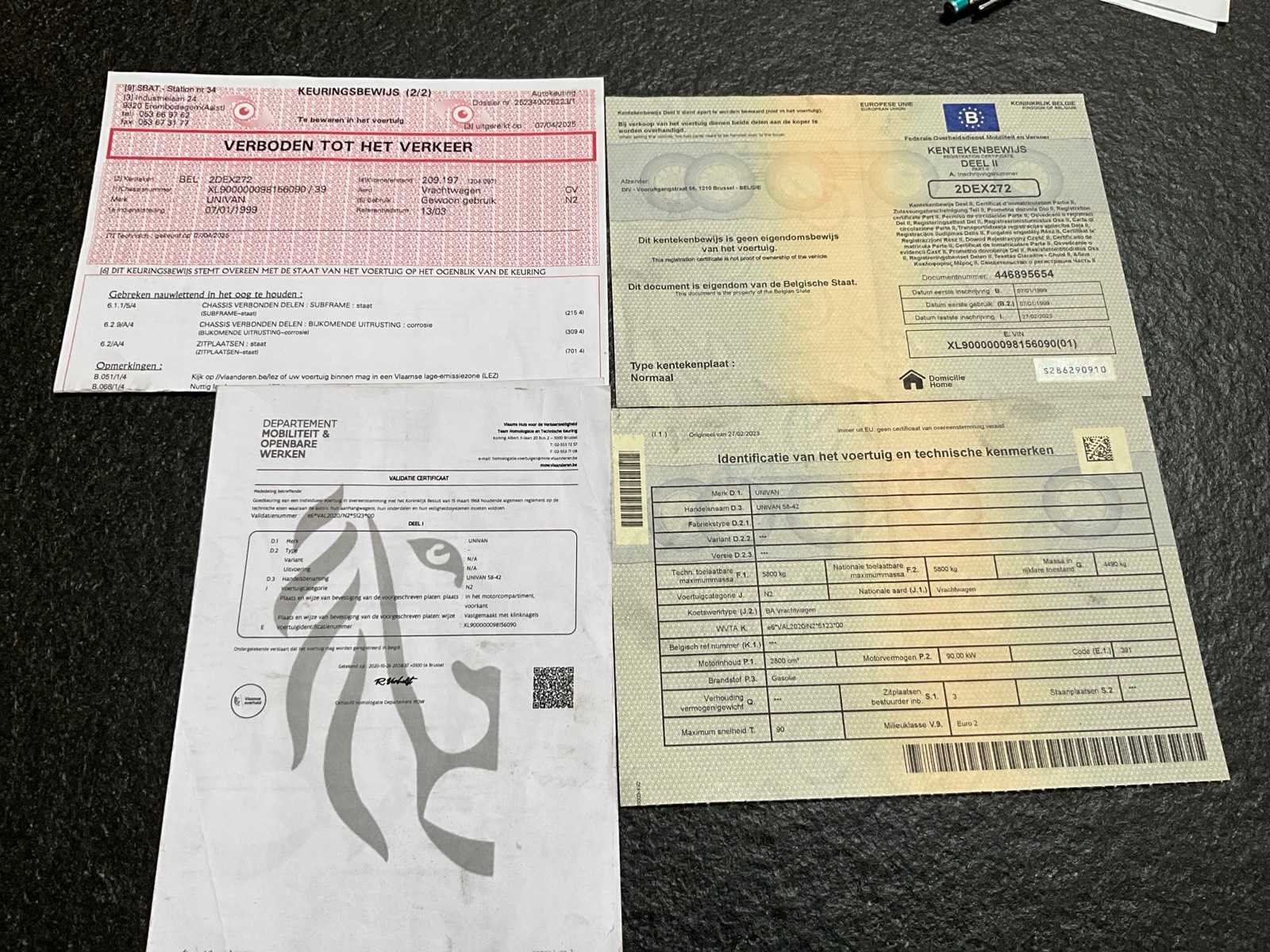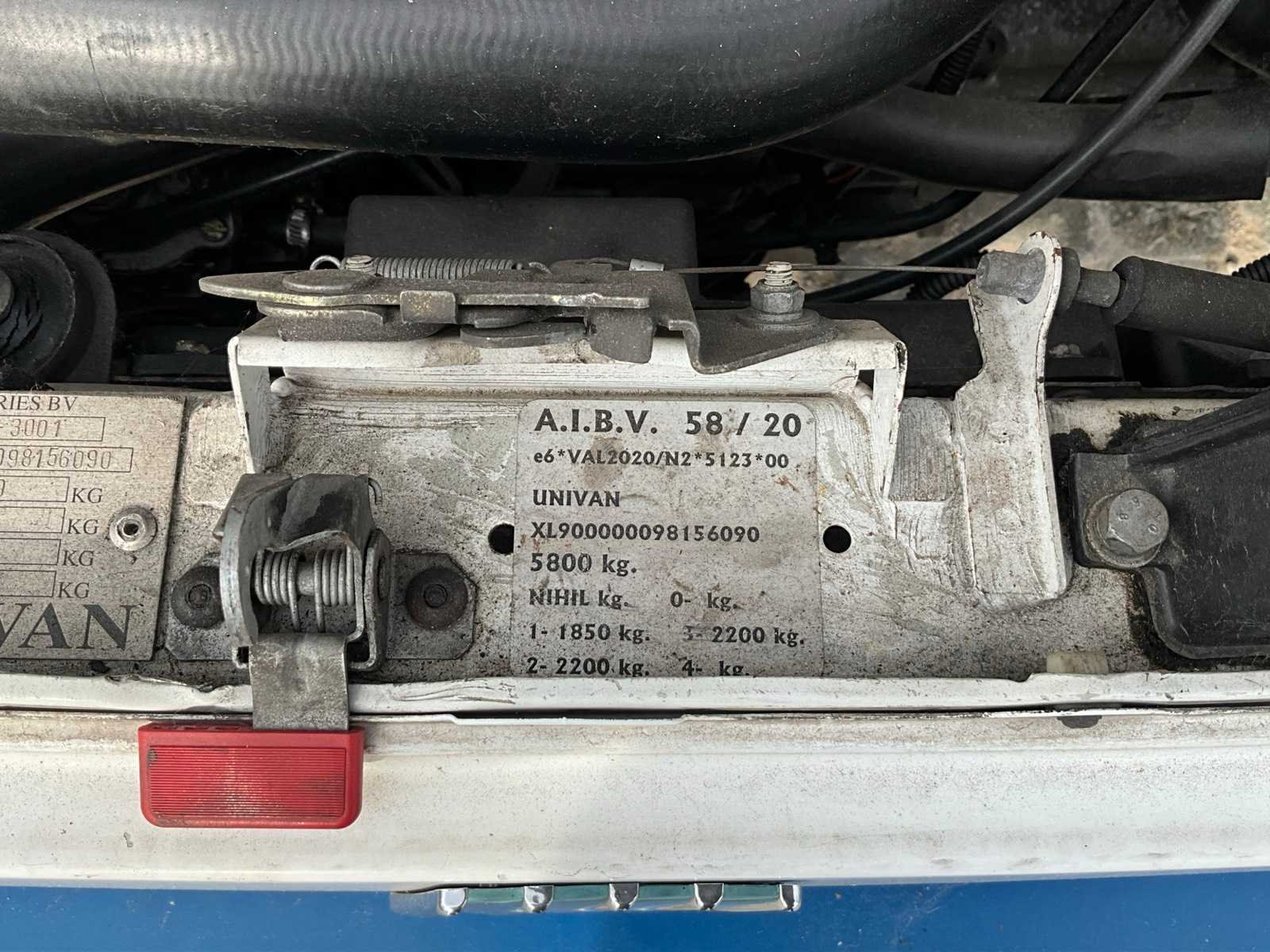 Nee Merk: Univan Model: 58-42 Bouwjaar: 1999 Afgelezen kilometerstand: 209231km Cilinderinhoud: 2800cc Vermogen (kW): 90kW Brandstof: diesel Chassisnummer: XL900000098156090 Datum eerste toelating: 07/01/1999 Aantal zitplaatsen: 3 Transmissie: Handgeschakeld Emissieklasse: Euro 2 Aantal deuren: 2 Aantal sleutels: 1 Nationaliteit documenten: België Start en rijdt: Ja Vavato voert geen technische keuring uit.: true Inschrijvingsbewijs - deel 1 : Aanwezig Inschrijvingsbewijs - deel 2: Aanwezig