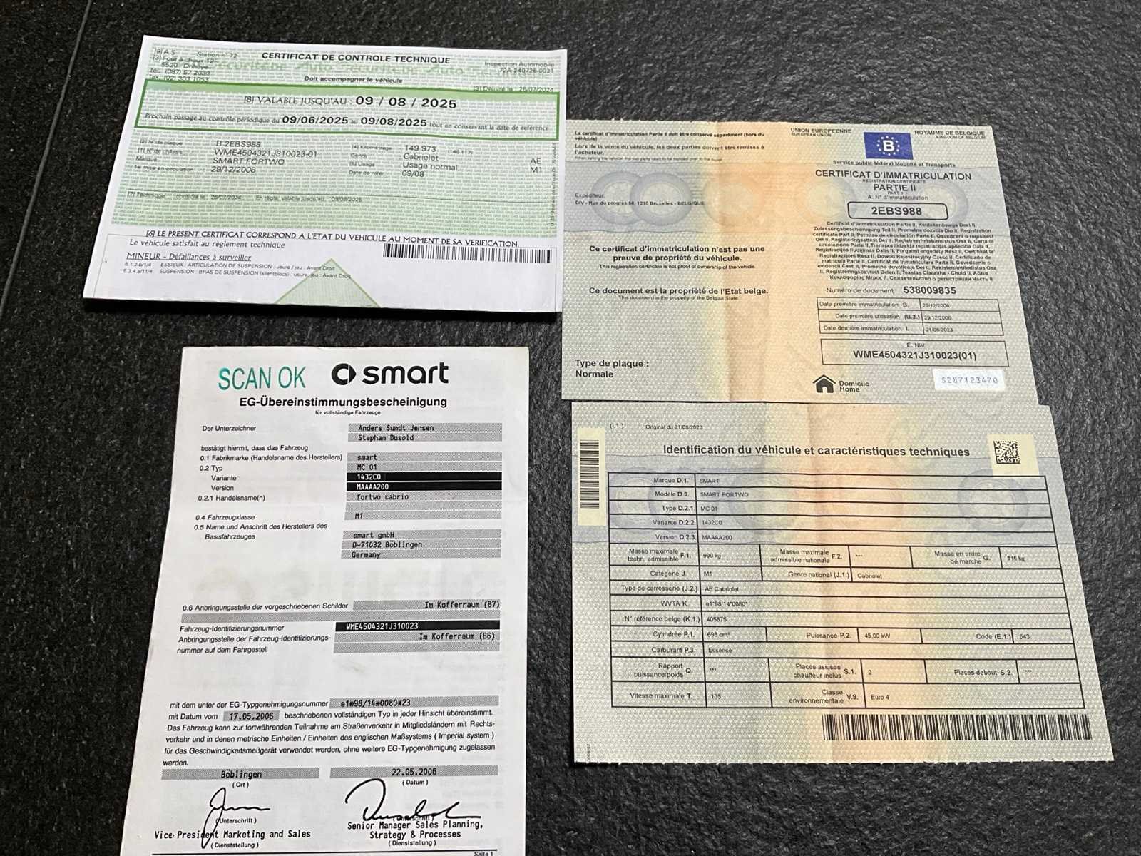 Nee Merk: Smart Model: Fortwo Bouwjaar: 2006 Afgelezen kilometerstand: 153222km Cilinderinhoud: 698cc Vermogen (kW): 45kW Brandstof: benzine Chassisnummer: WME4504321J310023 Datum eerste toelating: 29/12/2006 Aantal zitplaatsen: 2 Kleur: grijs Transmissie: Automaat Emissieklasse: Euro 4 Aantal deuren: 3 Aantal sleutels: 1 Nationaliteit documenten: België Start en rijdt: Ja Vavato voert geen technische keuring uit.: true Inschrijvingsbewijs - deel 1 : Aanwezig Inschrijvingsbewijs - deel 2: Aanwezig