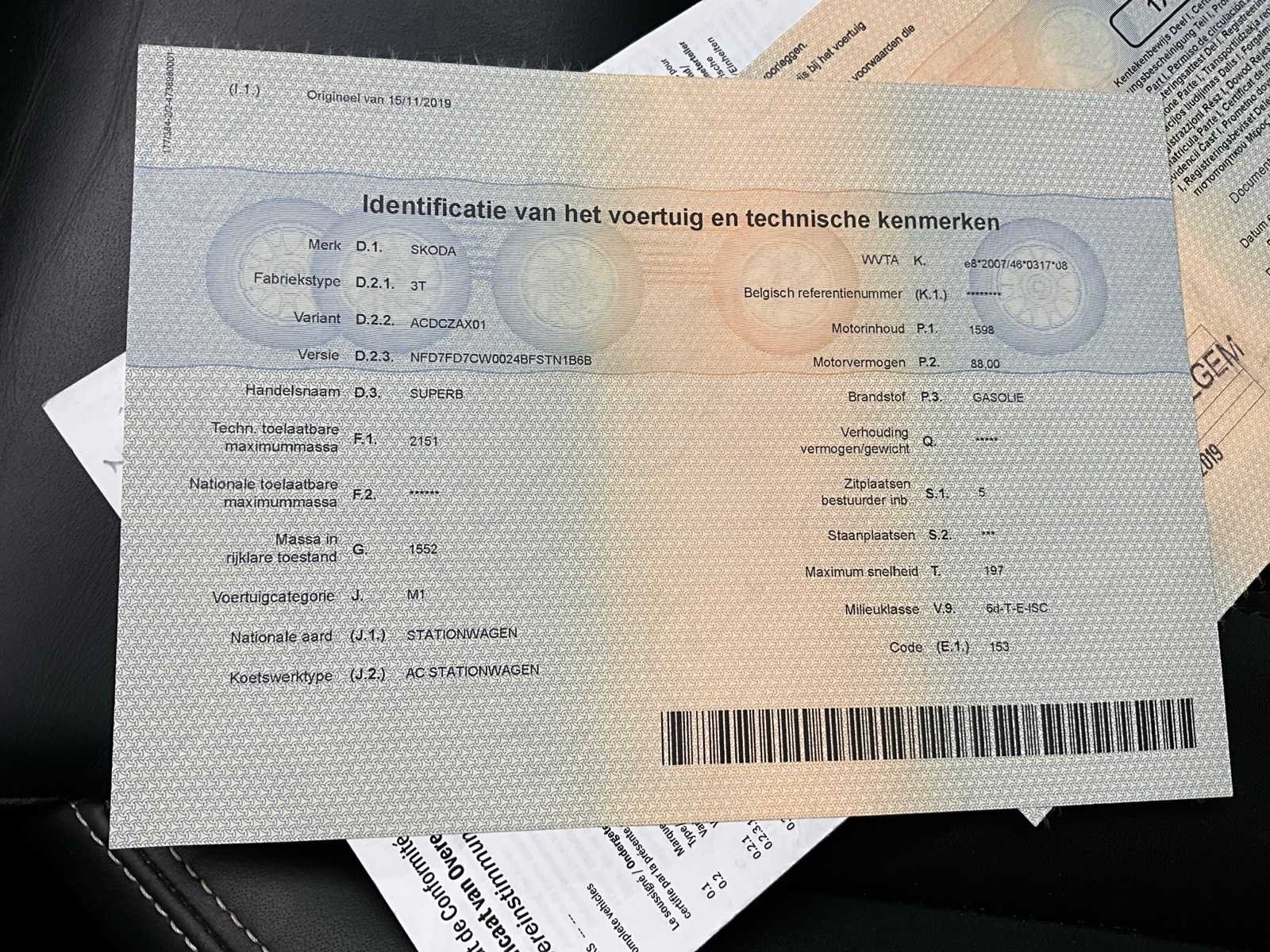 Zetelverwarming, lederen zetels, start stop, DSG, automatische koffer…. Technisch en motorisch geen gebreken. Nee Merk: Skoda Model: Superb Bouwjaar: 2019 Afgelezen kilometerstand: 262658km Cilinderinhoud: 1598cc Vermogen (kW): 88kW Brandstof: diesel Chassisnummer: TMBJG7NPXL7030181 Datum eerste toelating: 15/11/2019 Transmissie: Automaat Nationaliteit documenten: Belgisch Start en rijdt: Ja startinformatie : Start en rijdt Inschrijvingsbewijs - deel 1 : Aanwezig Inschrijvingsbewijs - deel 2: Aanwezig