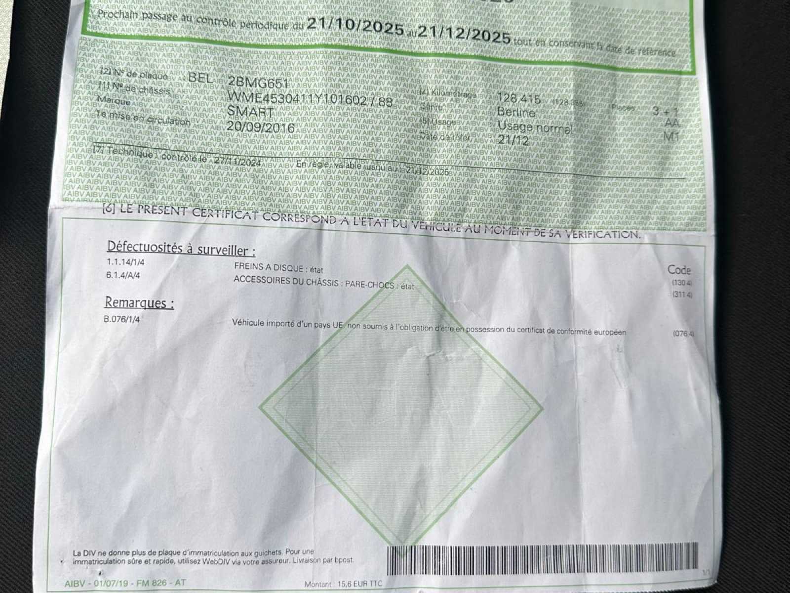 De wagen start, rijdt en draait soepel. Wagen volledig in orde. Voorbumper schade zie foto’s. No Merk: Smart Model: Forfour 451 Bouwjaar: 2016 Afgelezen kilometerstand: 130993km Cilinderinhoud: 999cc Vermogen (kW): 45kW Brandstof: Benzine Chassisnummer: WME4530411Y101602 Datum eerste toelating: 20/09/2016 Transmissie: Handgeschakeld Nationaliteit documenten: Belgisch Start en rijdt: Ja Inschrijvingsbewijs - deel 1 : Aanwezig Inschrijvingsbewijs - deel 2: Aanwezig