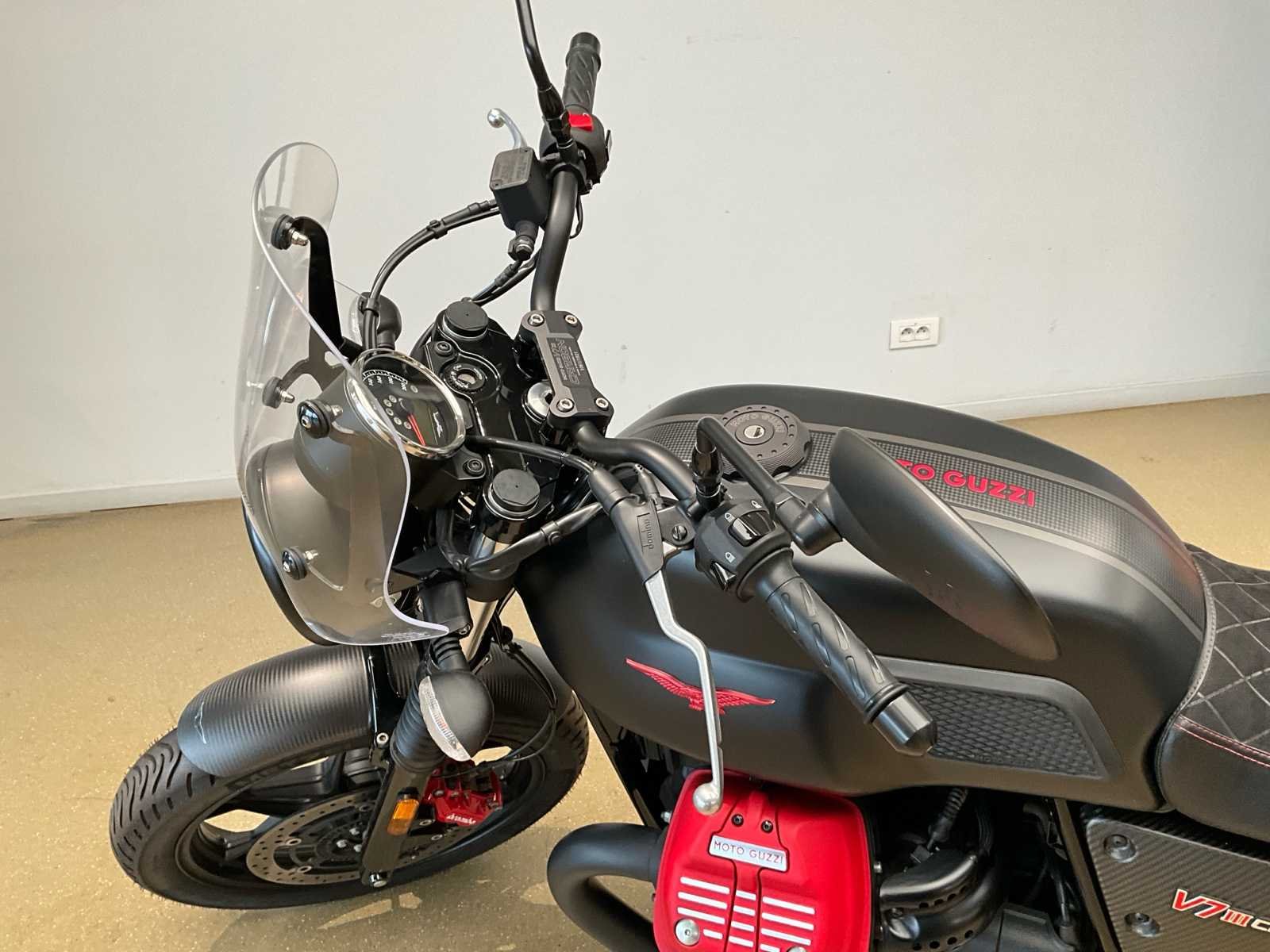 Compleet met zijtassen en windscherm. Compleet met keuring voor verkoop en 1 jaar garantie. No Merk: Moto guzzi Model: V7 III Carbon limited versie n1061 carbon Brandstof: Benzine Chassisnummer: ZGULDG004JM000696 Cilinderinhoud: 744cc Datum eerste toelating: 06/06/2019 Afgelezen kilometerstand: 12137km Nationaliteit documenten: Belgisch Startinformatie: Start en rijdt Bouwjaar: 2019