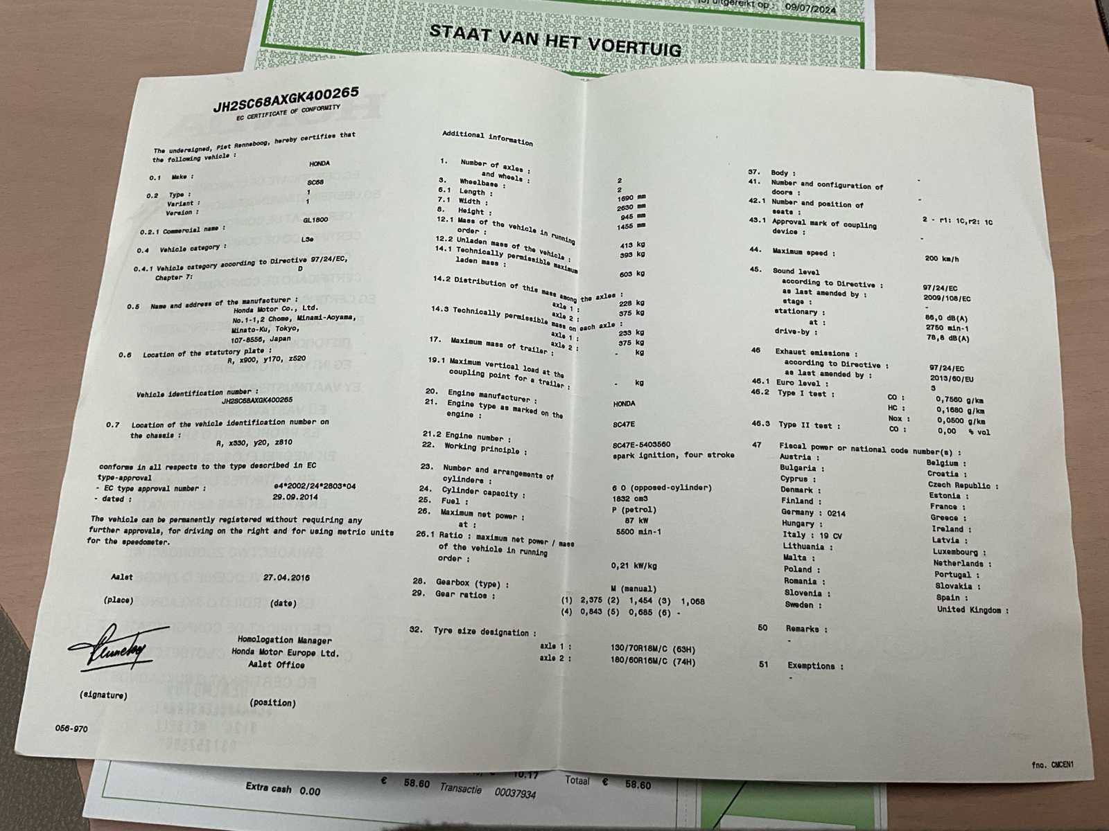 Alle Chrome aanwezig Led verlichting Elektrische ruit aanwezig Start en rijd Amper 15100km Alle documenten aanwezig Vernieuwde muziek boxen achteraan No Merk: Honda Model: GL1800 Brandstof: Benzine Chassisnummer: JH2C68AXGK400265 Cilinderinhoud: 1832cc Datum eerste toelating: 04052016 Gewicht: 413kg Vermogen (kW): 87kW Afgelezen kilometerstand: 15100km Transmissie: Manueel Nationaliteit documenten: Belg Aantal sleutels: 2 Bouwjaar: 2016