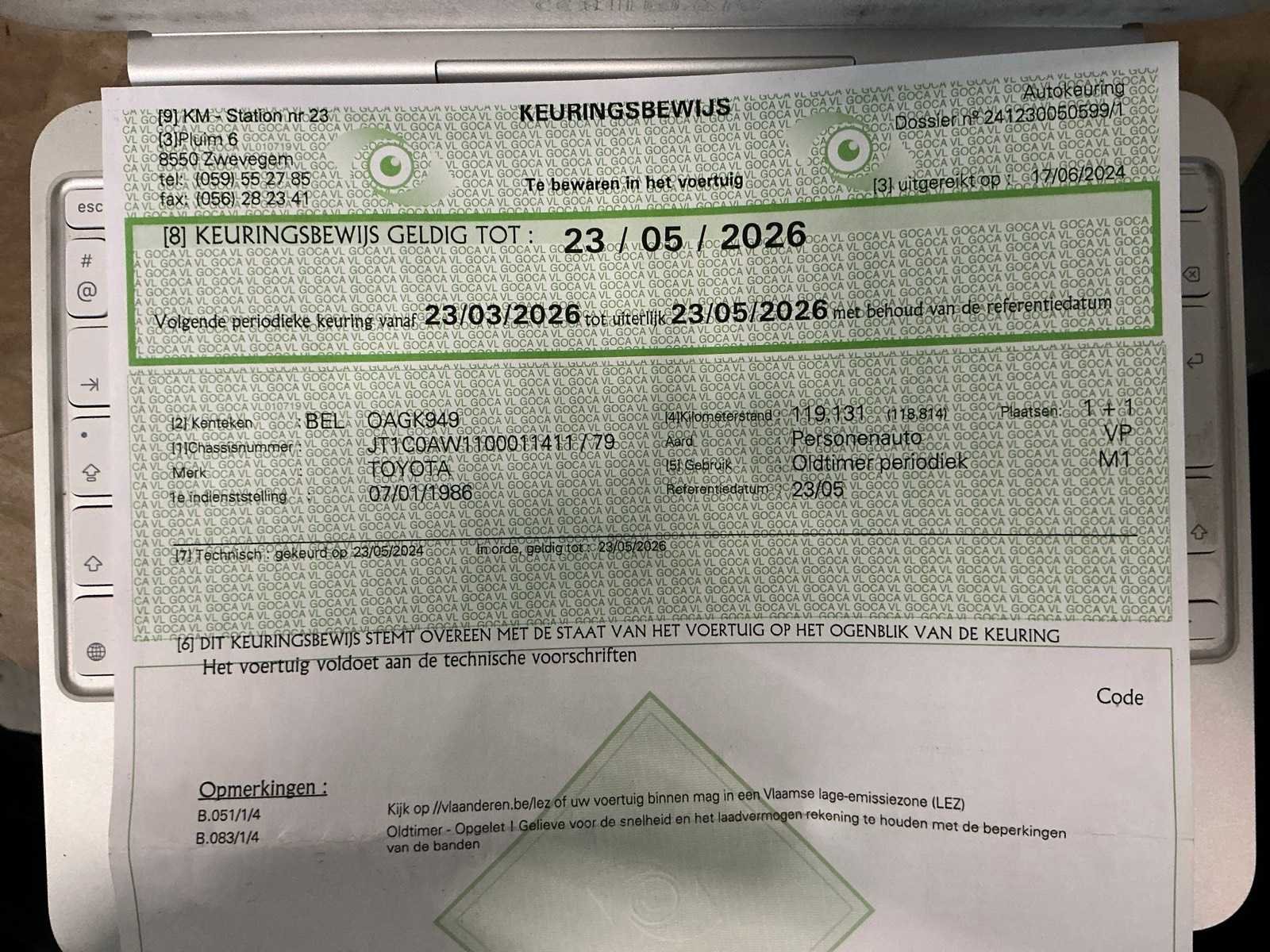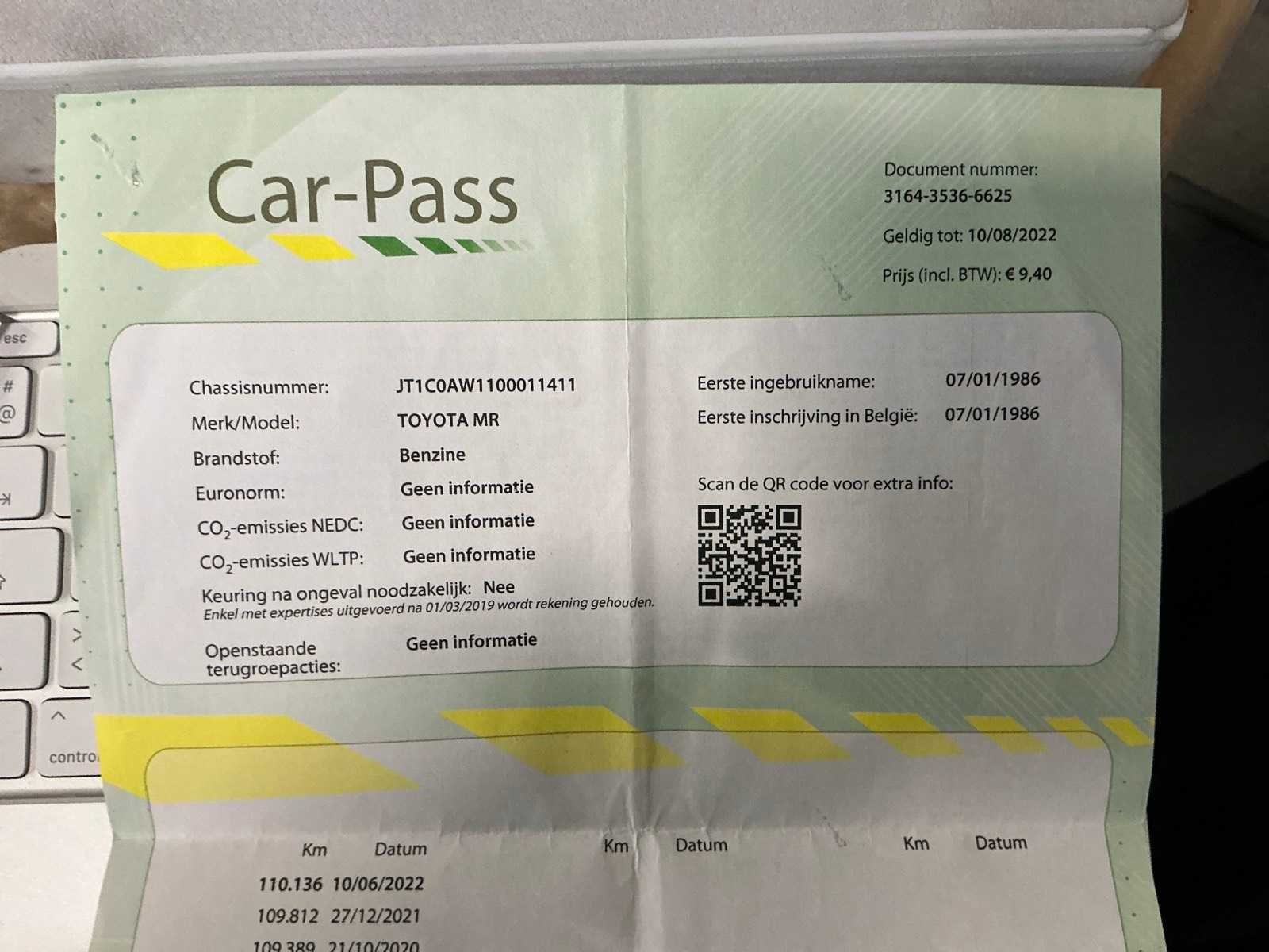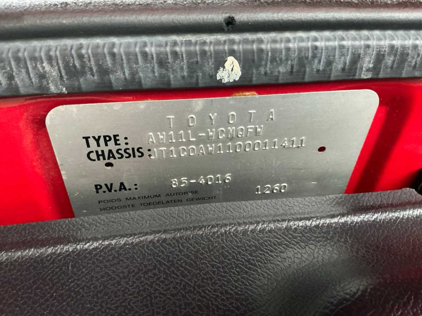 Deze Toyota MR2 MK1 kan gekeurd worden voor verkoop voor Belgische kopers. Komt met originele beschermhoes (carcover) van Toyota Heeft groot nazicht gekregen voor verkoop, staat technisch en mechanisch in orde om direct door de keuring te raken. Is voorzien van batterijsleutel voor langere stilstand. Nee Merk: Toyota Type: MR Bouwjaar: 1986 Chassisnummer: JT1C0AW1100011411 Afgelezen kilometerstand: 128678 Brandstof: Benzine Datum eerste inschrijving: 07/01/1986 Boorddocumenten aanwezig?: true Nationaliteit documenten: BE Kentekenpapieren compleet?: true Aandrijving: Achterwiel Transmissie: Handgeschakeld Vermogen (kW): 91kW Aantal deuren: 2 Aantal zitplaatsen: 2 Stuurwiel: Links Aantal sleutels: 2 Startinformatie: Start, rijdt, remt Cilinderinhoud: 1600 Inschrijvingsbewijs - deel 1 : OK Inschrijvingsbewijs - deel 2: OK Gelijkvormigheidsattest aanwezig: true