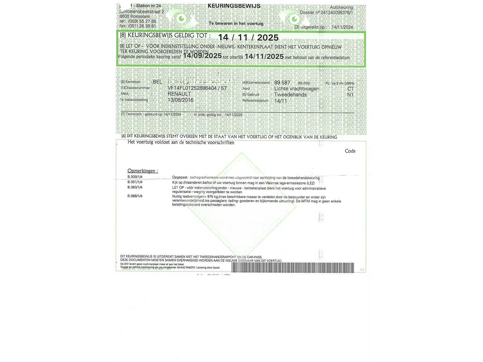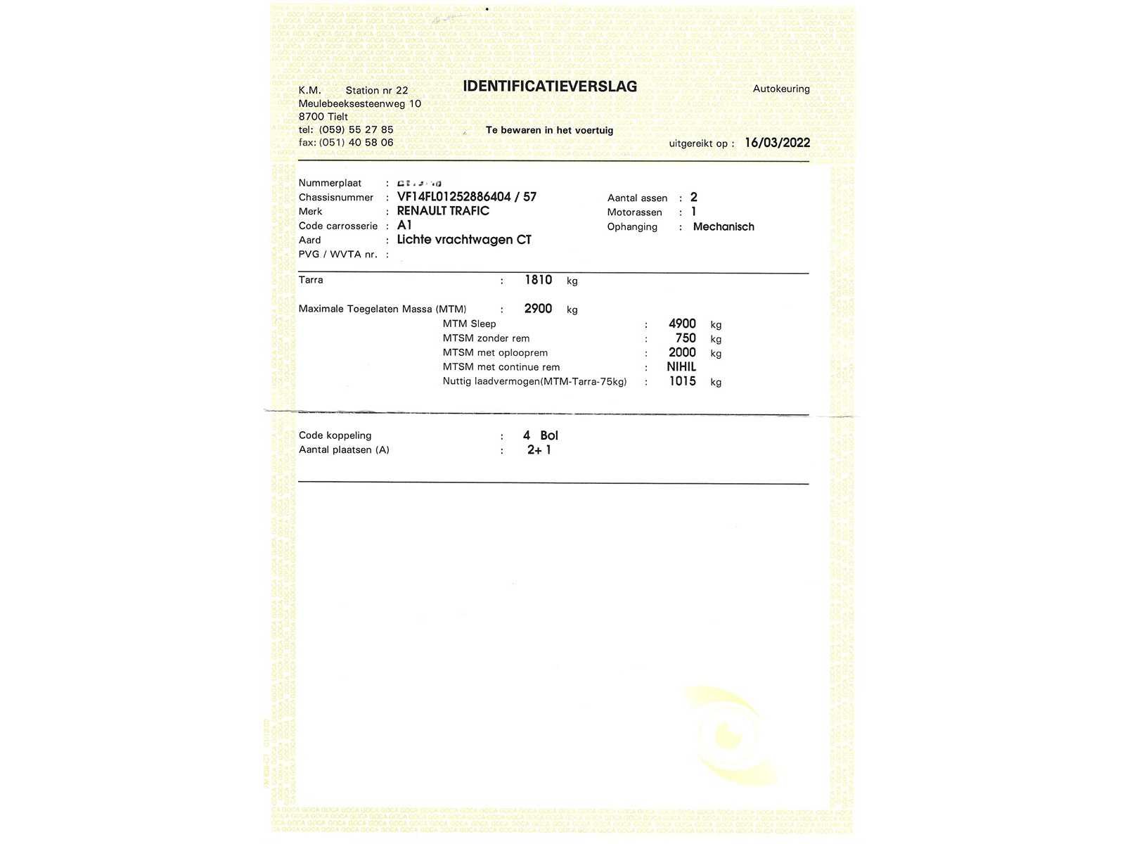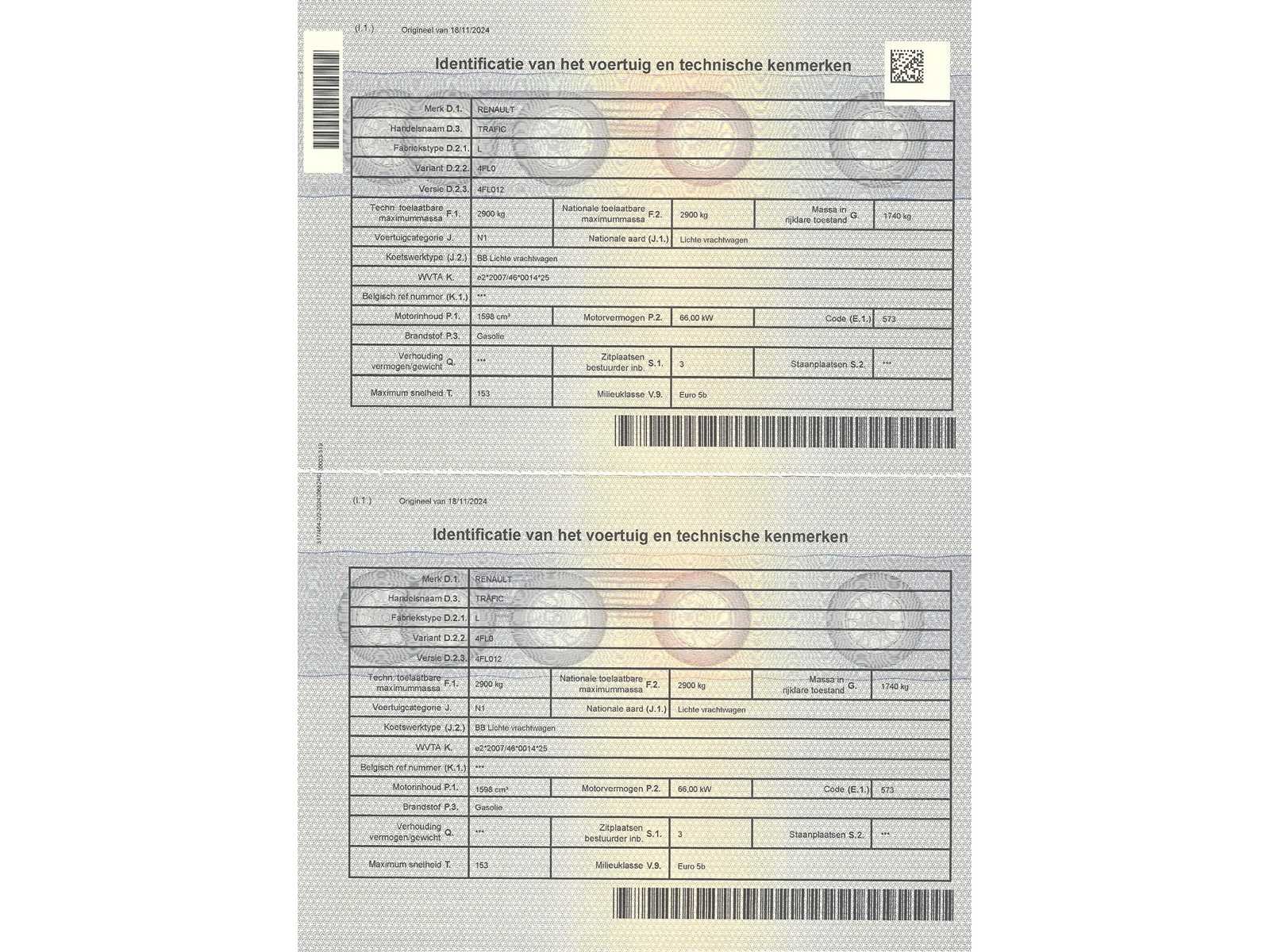 Nee Merk: Renault Type: Traffic Bouwjaar: 2016 Chassisnummer: VF14FL01252886404 Afgelezen kilometerstand: 103609km Cilinderinhoud: 1598cc Vermogen (kW): 66kW Brandstof: Diesel Datum eerste inschrijving: 13/06/2016 Aandrijving: Voorwiel Transmissie: Manueel Aantal zitplaatsen: 3 Kleur: Zwart Nationaliteit documenten: BE Aantal deuren: 5 Aantal sleutels: 2 Aantal cilinders: 4 Energielabel: Euro 5B Emissieklasse: Euro 5B Kentekenpapieren compleet?: true Boorddocumenten aanwezig?: true Maximaal trekgewicht ongeremd: 750 Maximaal trekgewicht geremd: 2000 No self drive export!: true