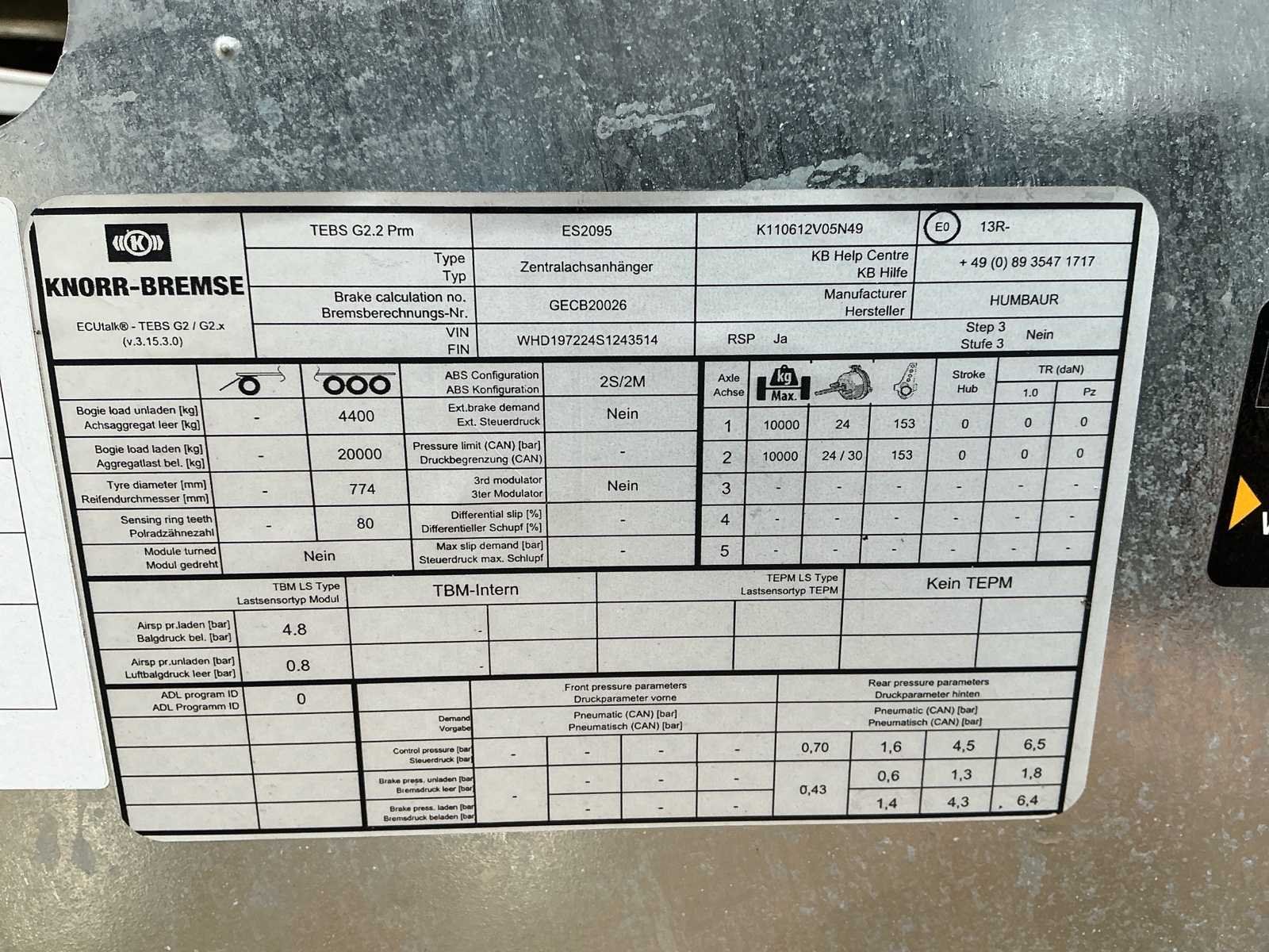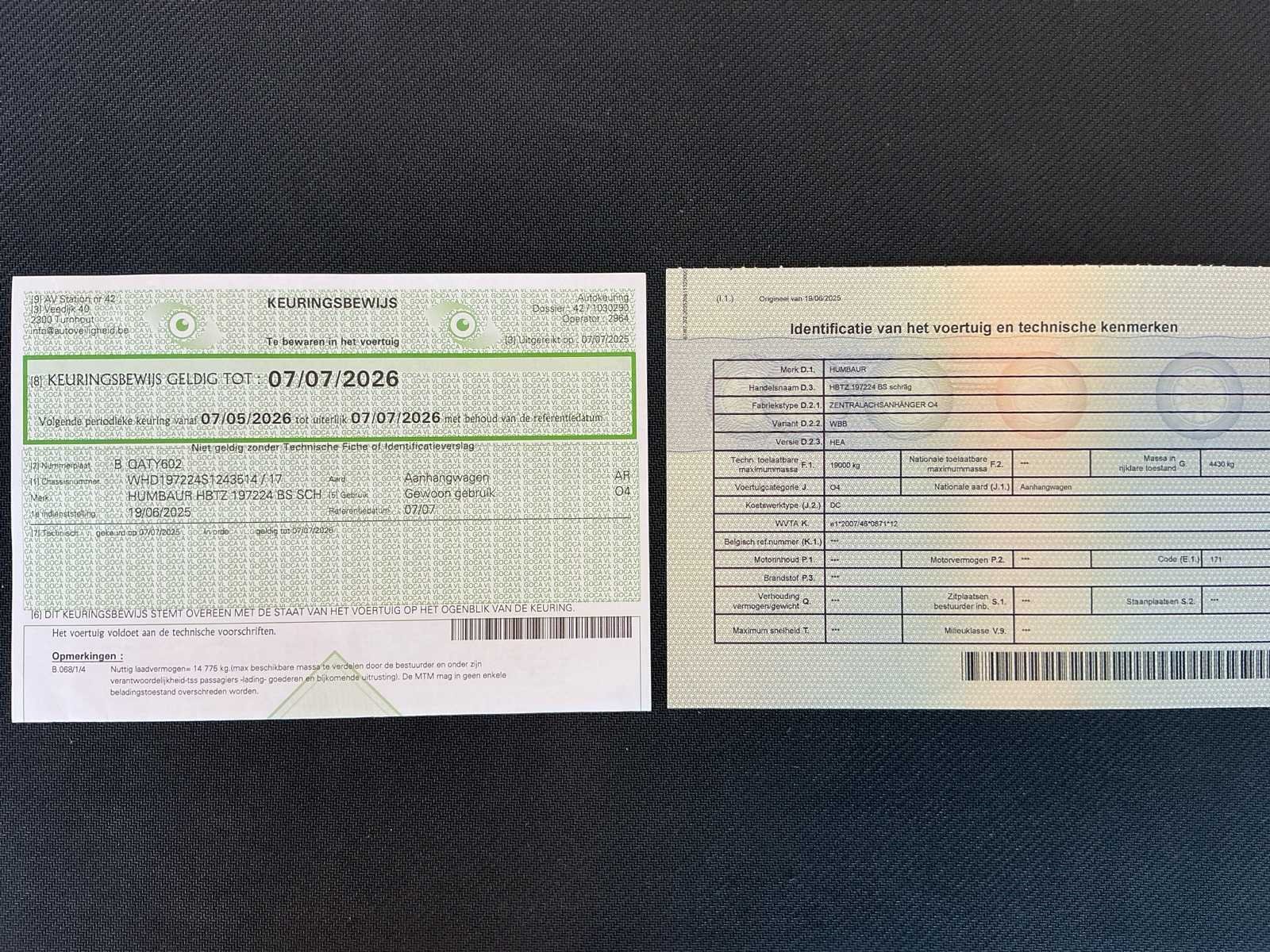 No Merk: Humbaur Type: HBTZ197224 Bouwjaar: 2025 Chassisnummer: WHD19722451243514 Chassisnummer VIN: WHD19722451243514 Laadvermogen: 14600kg Eigen gewicht: 4300kg Aantal assen: 2 Kleur: Grijs Lengte: 9200 Breedte: 2550 Hoogte: 3830