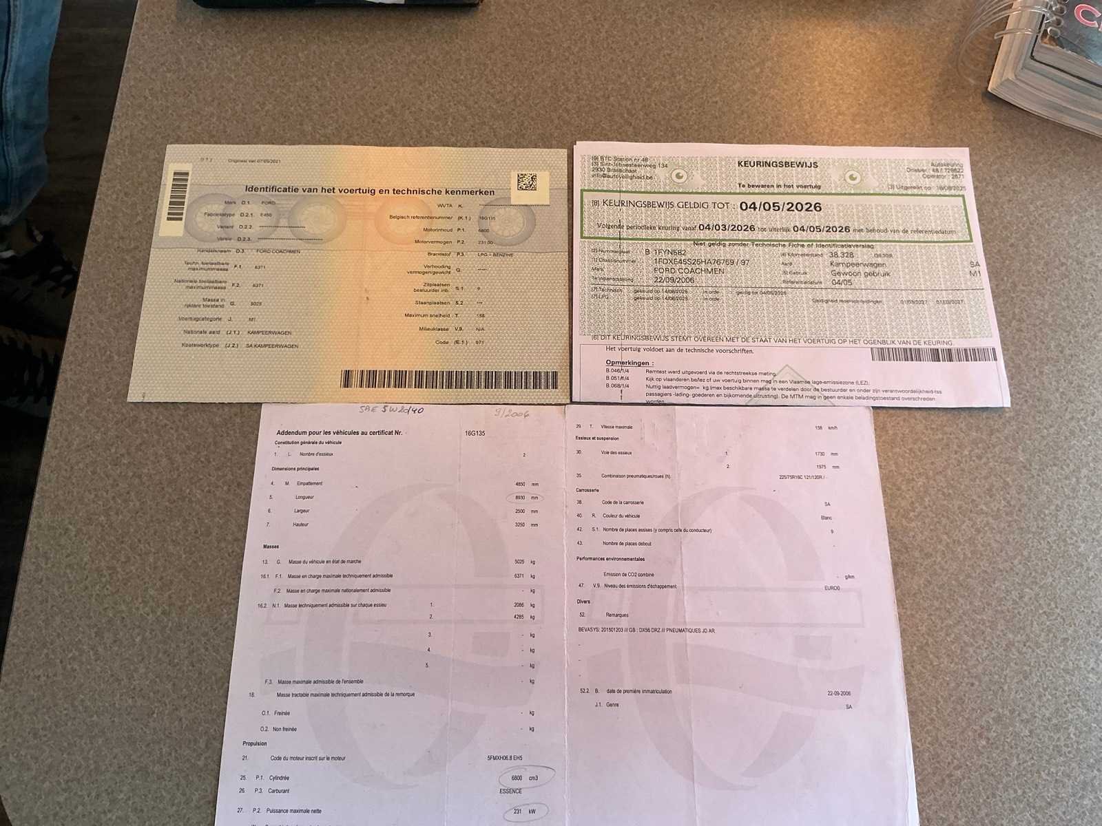 Ford E450 Coachmen 2006 Lpg voertuig 6 nieuwe banden 2 tv’s 4G & Wifi antenne 2 zonnepanelen 420W Victron regelaar Omvormer 7000W centraalstofzuigersysteem B-flexx verwarming op LPG Airco Orginele kussens in nieuwstaat (hoezen ter bescherming) C rijbewijs Nee Merk: Ford Model: E450 Type: Coachmen Chassisnummer: 1FDXE45S25HA76759 Aantal zitplaatsen: 9 Aantal sleutels: 2 Transmissie: Automaat Datum eerste toelating: 22/09/2006 Bouwjaar: 2006 Afgelezen mijlenstand: 38441mi Vermogen (kW): 231kW Cilinderinhoud: 6800cc Brandstof: Benzine / LPG Aantal deuren: 3 Kleur: Wit Lengte: 8800cm Breedte: 2500cm Hoogte: 3250cm