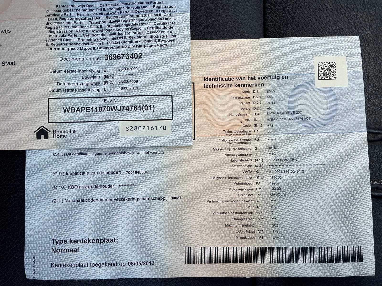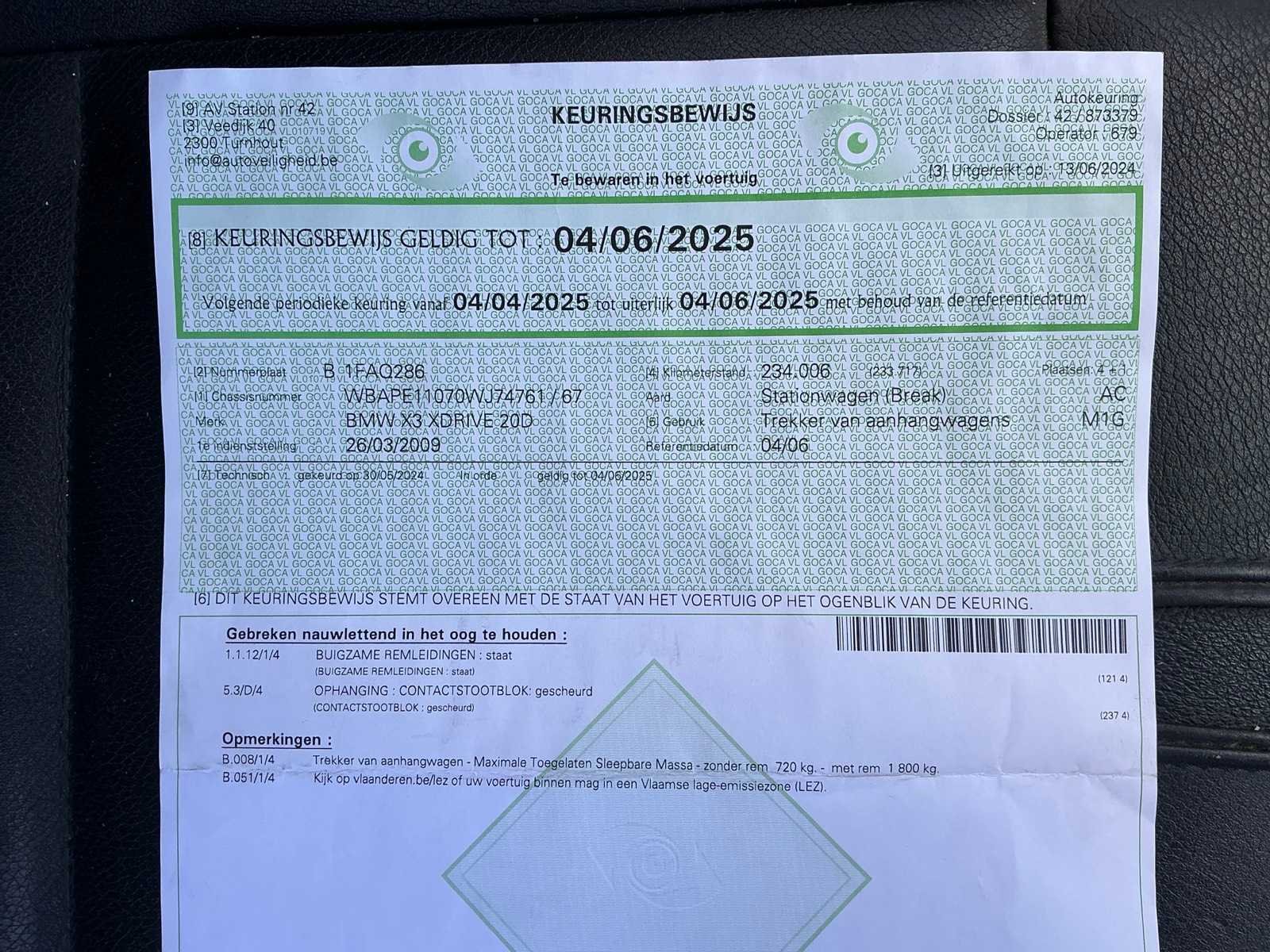 Opgelet, deze auto zal niet worden gekeurd voor verkoop (van toepassing op Belgische particuliere kopers). Nee Merk: BMW Type: X3 Xdrive 20D Bouwjaar: 2009 Afgelezen kilometerstand: 249532km Cilinderinhoud: 1995cc Vermogen (kW): 120kW Brandstof: diesel Chassisnummer: WBAPE11070WJ74761 Transmissie: Handgeschakeld Emissieklasse: Euro5 Nationaliteit documenten: Belgisch Start en rijdt: Met booster startinformatie : Met booster Vavato voert geen technische keuring uit.: true Inschrijvingsbewijs - deel 1 : Aanwezig Inschrijvingsbewijs - deel 2: Aanwezig