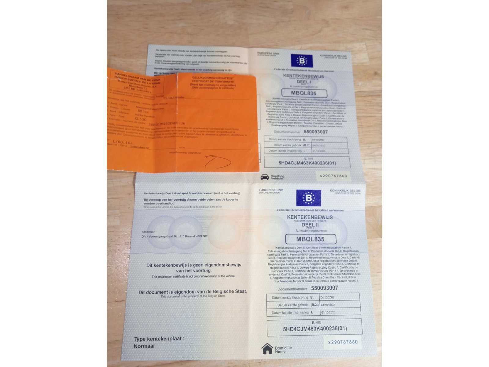 Inschrijvingsbewijs aanwezig, gelijkvormigheidsattest aanwezig . Nee Merk: Harley Davidson Model: XL53C Brandstof: benzine Chassisnummer: 5HD4CJM463K400236 Cilinderinhoud: 883cc Datum eerste toelating: 04/10/2002 Vermogen (kW): 40kW Afgelezen kilometerstand: 37171km Boorddocumenten aanwezig?: true Aantal sleutels: 2 Startinformatie: JA Bouwjaar: 2002