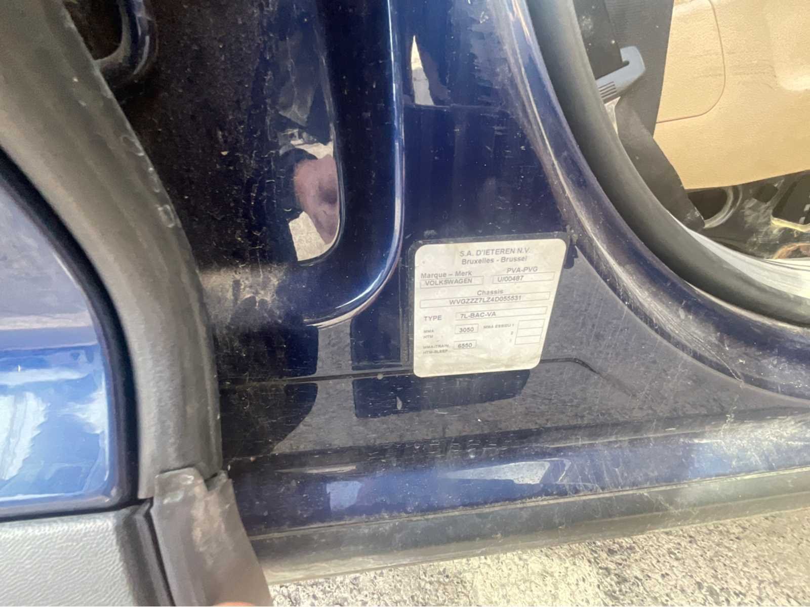 Volkswagen Touareg 2.5 TDI 4Motion – 2004 HS (kapotte) motor – niet draaiend. Compleet voertuig, verkocht voor onderdelen of reparatie. Over het algemeen goede carrosserie, maar aanwezigheid van: Afbladderende vernis op de motorkap Krassen op deuren en bumpers Aangetaste koplampen Beschadigde velgen / versleten en gebarsten banden Beige lederen interieur: Bestuurdersstoel erg versleten en gescheurd Complete achterbekleding en dashboard Interieurreiniging te plannen Complete motorruimte (niet-functionele motor). Trekhaak aanwezig. Non Merk: Volkswagen Model: Touareg Type: 2.5 TDI 4Motion (4x4) Bouwjaar: 2004 Afgelezen kilometerstand: 347290km Cilinderinhoud: 2461cc Vermogen (kW): 120kW Brandstof: diesel Chassisnummer: WVGZZZ7LZ4D055531 Vermogen (pk): 163hp Aandrijving: Links Aantal zitplaatsen: 5 Kleur: Bleu Transmissie: Handgeschakeld Aantal deuren: 5 Aantal sleutels: 1 Aantal cilinders: 4 Nationaliteit documenten: Belgique Gelijkvormigheidsattest aanwezig: true Vavato voert geen technische keuring uit.: true
