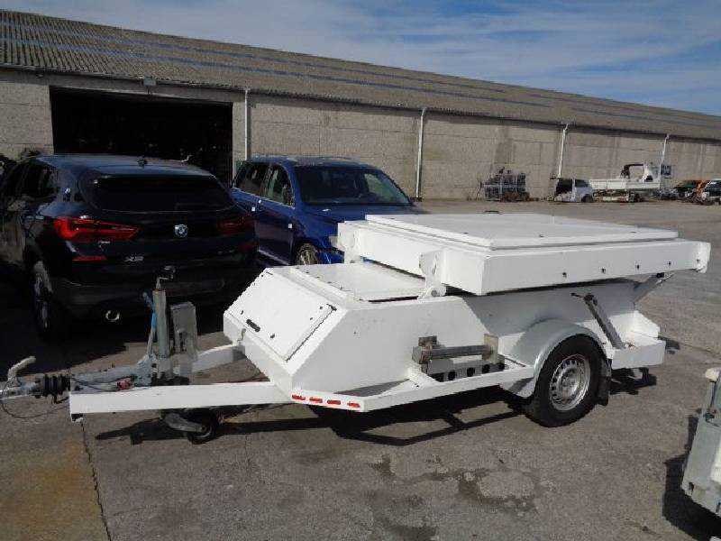 Fabrikant: Knott GmbH, Eggstätt (Duitsland) Type: KF20Z / KF13 Naamplaatje aanwezig Bruto voertuiggewicht (GVW): 750 kg Remsysteem: Knott traagheidsrem Elektrische apparatuur: te reconstrueren (HS-batterij, ontbrekende bedrading) Software / documenten: niet inbegrepen Vorig gebruik: dienstvoertuig / ex-politie Algemene staat: Correcte visuele conditie rekening houdend met leeftijd Vertoont tekenen van corrosie en slijtage Batterij defect geraakt, geen bedrading aanwezig Vereist volledige revisie en technische heringebruikname voor gebruik Heeft in het verleden gewerkt Non Merk: Knott GmbH Model: KF20Z / KF13 Product type: Mobiele educatieve radartrailer Kleur: Wit Materiaal: staal