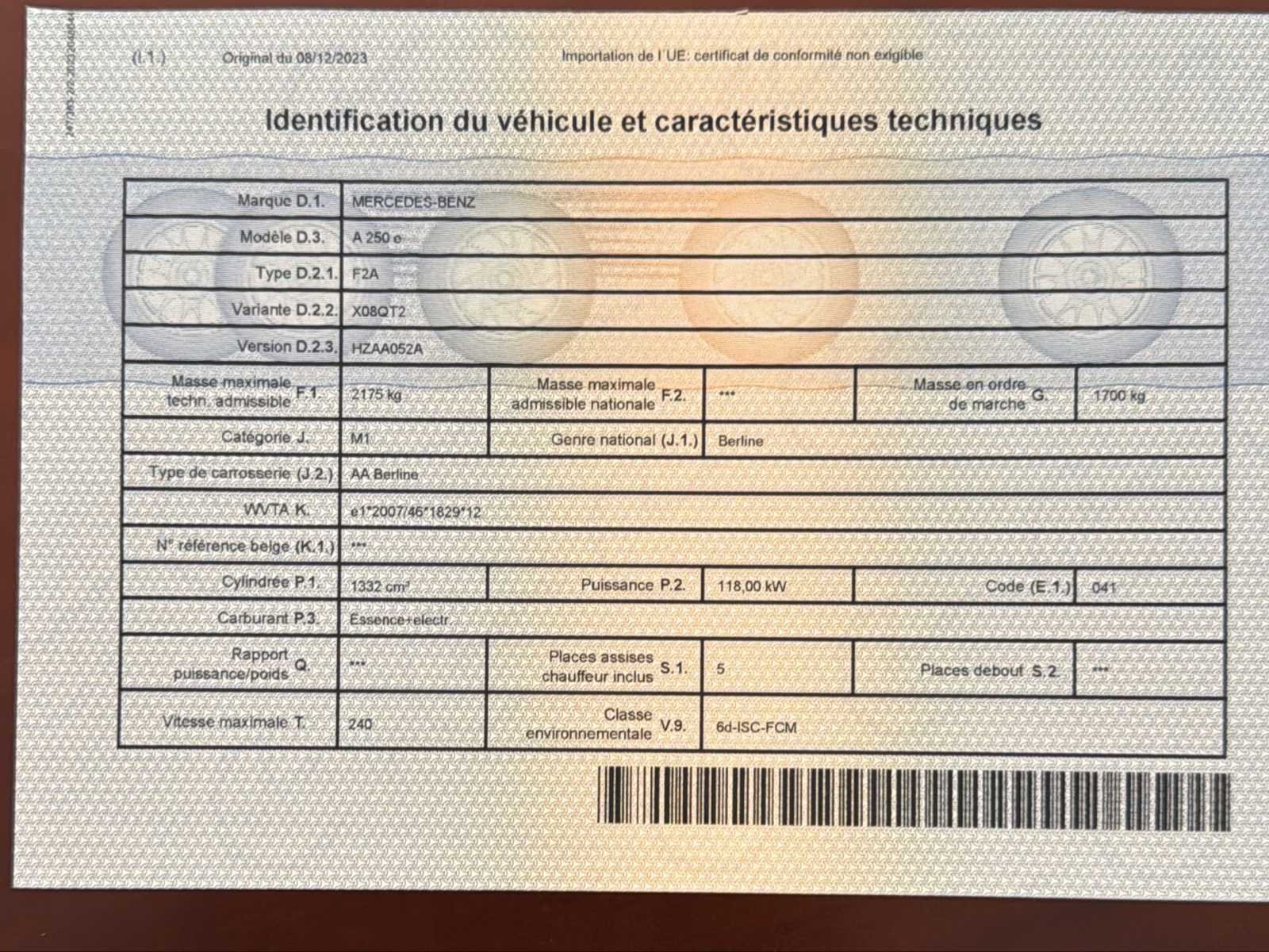 De mercedes heeft volgende opties: -Parkeersensoren V+A -Cruise control & Bleutooth -Zetelverwarming No Merk: Mercedes-Benz Model: A 250 e Type: Berline Bouwjaar: 2020 Afgelezen kilometerstand: 74853km Cilinderinhoud: 1332cc Vermogen (kW): 118kW Brandstof: Benzine Chassisnummer: W1K1771861J288934 Datum eerste toelating: 30/12/2020 Aantal zitplaatsen: 5 Kleur: Blauw Transmissie: Automaat Emissieklasse: Euro 6d Aantal deuren: 4 Nationaliteit documenten: Belgische Vavato voert geen technische keuring uit.: true Airconditioning: true Navigatie: true Xenon verlichting: true Leder bekleed: true