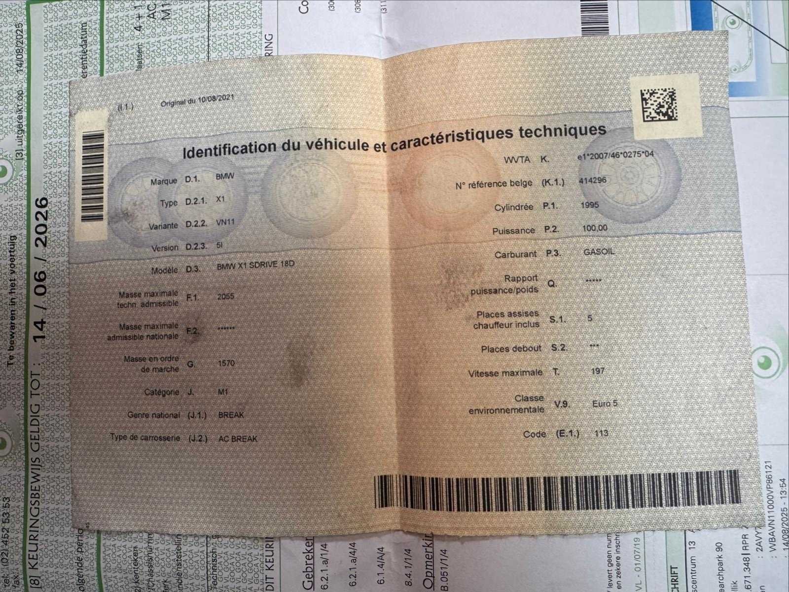 De wagen bevindt zich in gebruikte staat. Volgende opties zijn aanwezig: -Automatische airco. -Lederen zetelbekleding. -Parkeersensoren achteraan. No Merk: Bmw Model: X1 Sdrive 18D 136 pk Type: Suv Bouwjaar: 2011 Afgelezen kilometerstand: 195826km Cilinderinhoud: 1995cc Vermogen (kW): 100kW Brandstof: Diesel Chassisnummer: WBAVN11000VP86121 Datum eerste toelating: 03/08/2011 Aantal zitplaatsen: 5 Kleur: Zwart Transmissie: Automaat Emissieklasse: Euro 5 Aantal deuren: 5 Carrosserie: Suv Nationaliteit documenten: Belgisch Gelijkvormigheidsattest aanwezig: true Vavato voert geen technische keuring uit.: true Airconditioning: true Leder bekleed: true