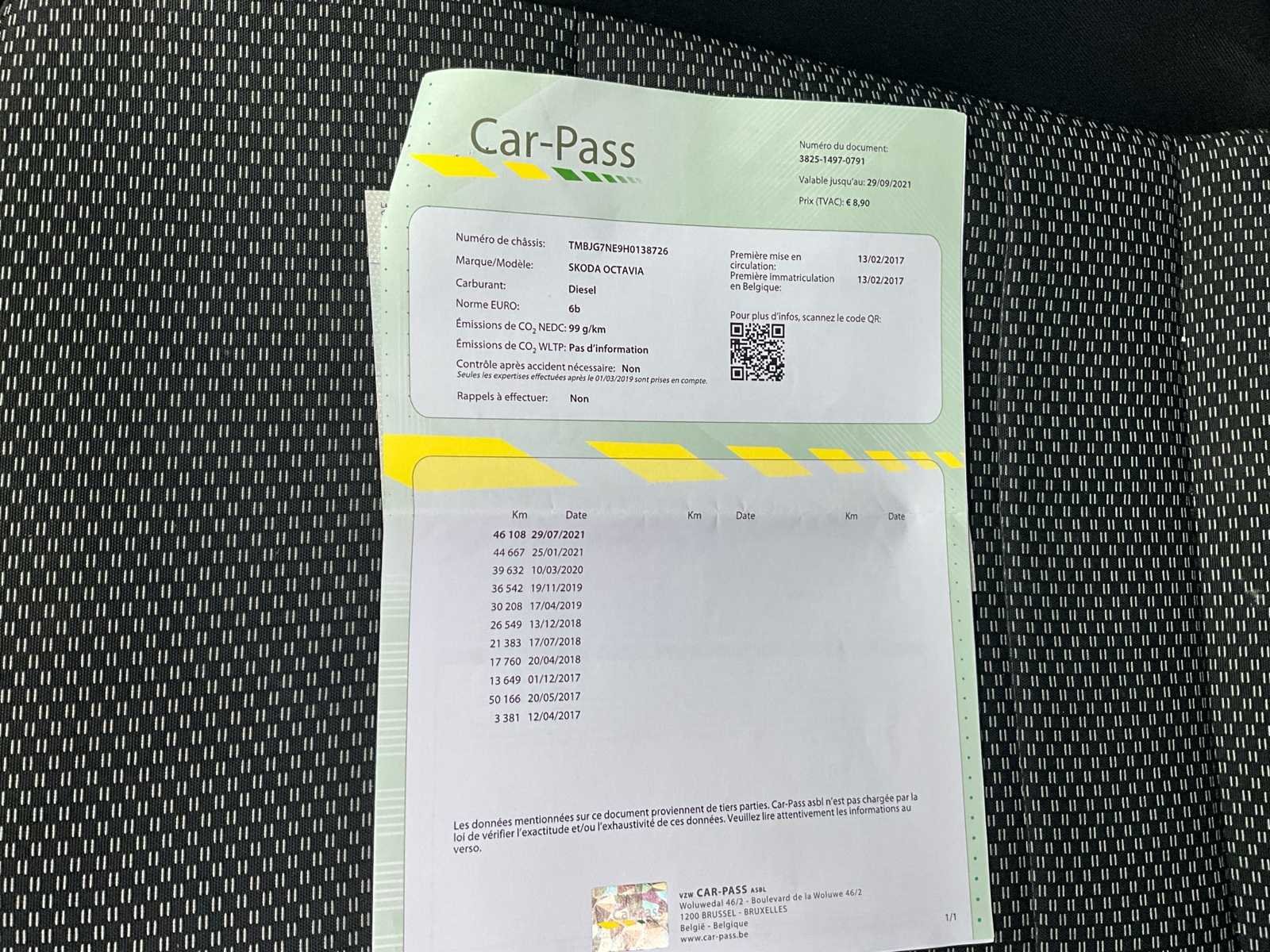 2 voorbanden recent vervangen No Merk: Skoda Model: Octavia Bouwjaar: 2017 Afgelezen kilometerstand: 210000km Cilinderinhoud: 1598cc Vermogen (kW): 81kW Brandstof: Diesel Chassisnummer: TMBJG7NE9H0138726 Datum eerste toelating: 13/02/2017 APK vervaldatum: 26/95/2026 Vermogen (pk): 110hp Energielabel: Euro 6 miljard Aandrijving: Ja Aantal zitplaatsen: 5 Kleur: Gris Transmissie: Automatique Stuurwiel: Links Emissieklasse: Euro6b Aantal deuren: 5 Aantal sleutels: 2 Aantal cilinders: 4 Carrosserie: Stationwagen Nationaliteit documenten: Belge Gelijkvormigheidsattest aanwezig: true Carpass: waar Start en rijdt: Oui Keuringsrapport geldig tot: 26/05/2026 Airconditioning: true Navigatie: true