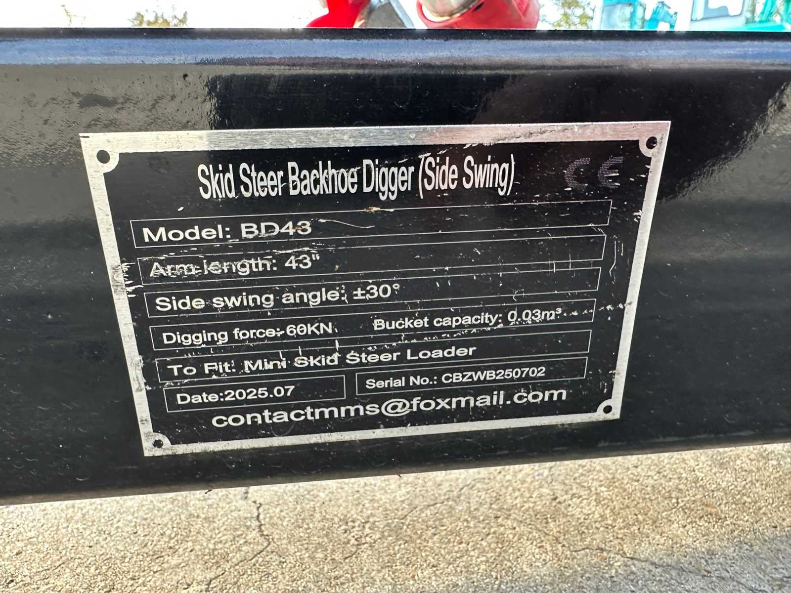 Nieuw Bakbreedte : 310mm Hydraulische aansluiting Zwenkend No Merk: Giyi Type: BD43 Bouwjaar: 2025 Serienummer: CBZWB250702 Totale afmeting L: 1700mm Totale afmeting Breedte: 900mm Totale afmeting Hoogte: 520mm