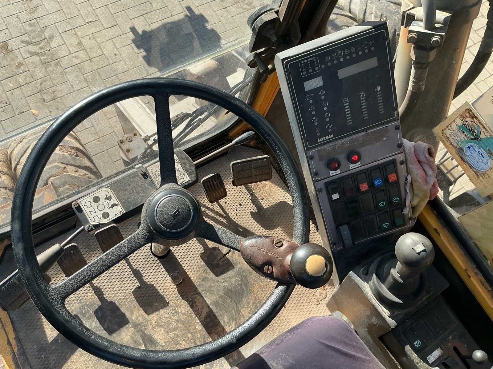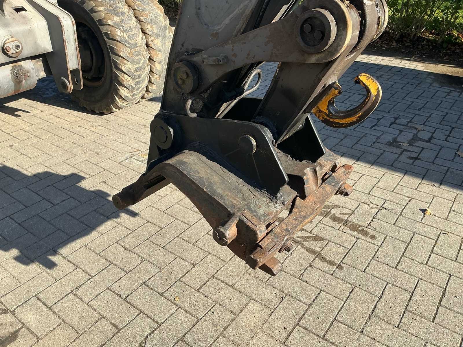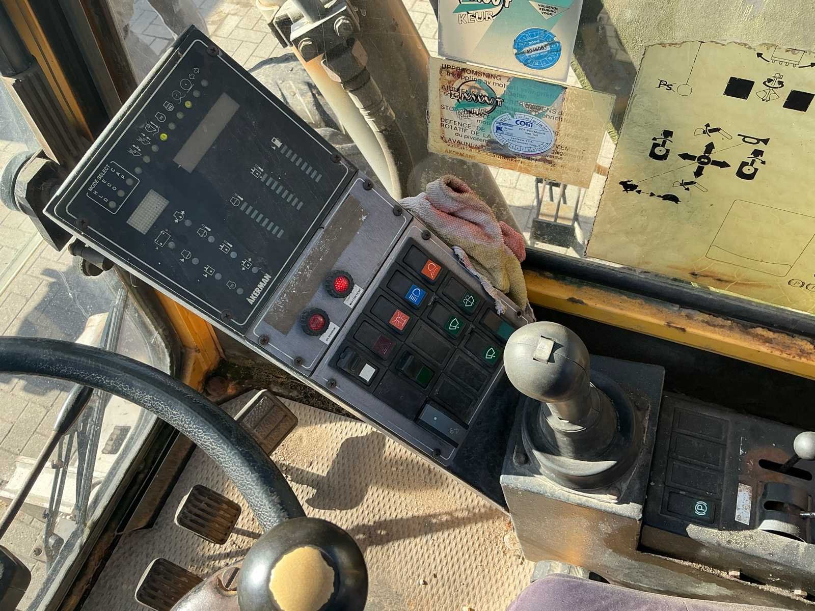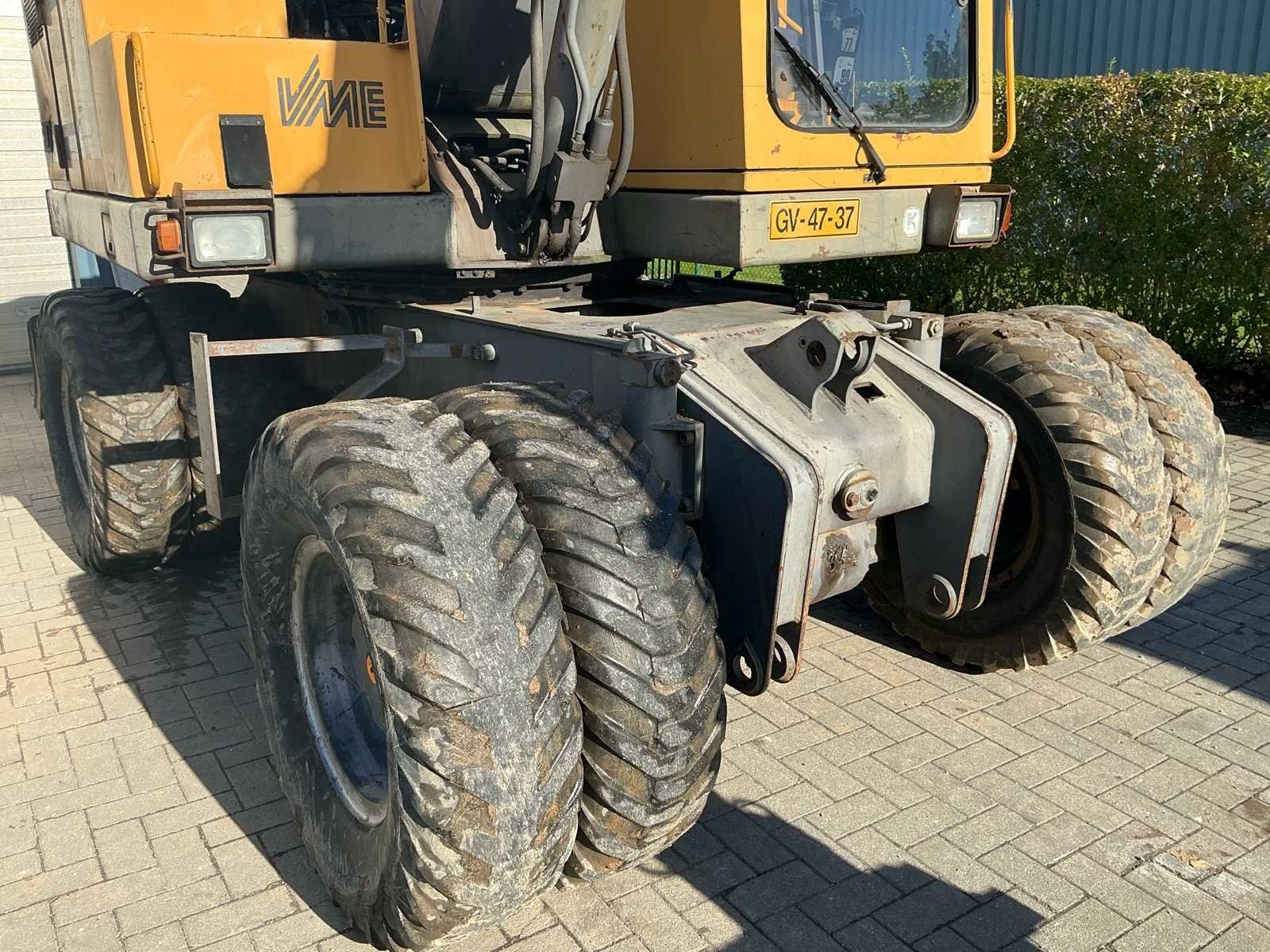 Åkerman H5M mobiele graafmachine – bouwjaar 1992 Hydraulische graafmachine met beperkte hijsfunctie, maximale hijslast 1.030 kg. Uitgerust met 4x4 en voor meer stabiliteit voorzien van dubbele wielen, verstelbare giek (4,4 + 2,4 m), en dieselmotor. Machine compleet met cabine, verlichting en hydraulische aansluitingen. Zie video voor demonstratie. Gewicht ca. 15.500 kg – hefhoogte 7,3 m – type H5M97. No Merk: Akerman Type: H5M Bandenkraan Serienummer: H5M97 Merk motor: Volvo TD 40 Motorvermogen (kW): 88kW Aantal cilinders: 4 Brandstof: Diesel Bedrijfsgewicht: 15500kg Gieklengte: 4400mm Max. werkbereik: 7300mm Cabine: true Afgelezen urenstand: 15891 Eigen gewicht: 14800kg Totale afmeting L: 7200mm Totale afmeting Breedte: 2350mm Totale afmeting Hoogte: 3000mm