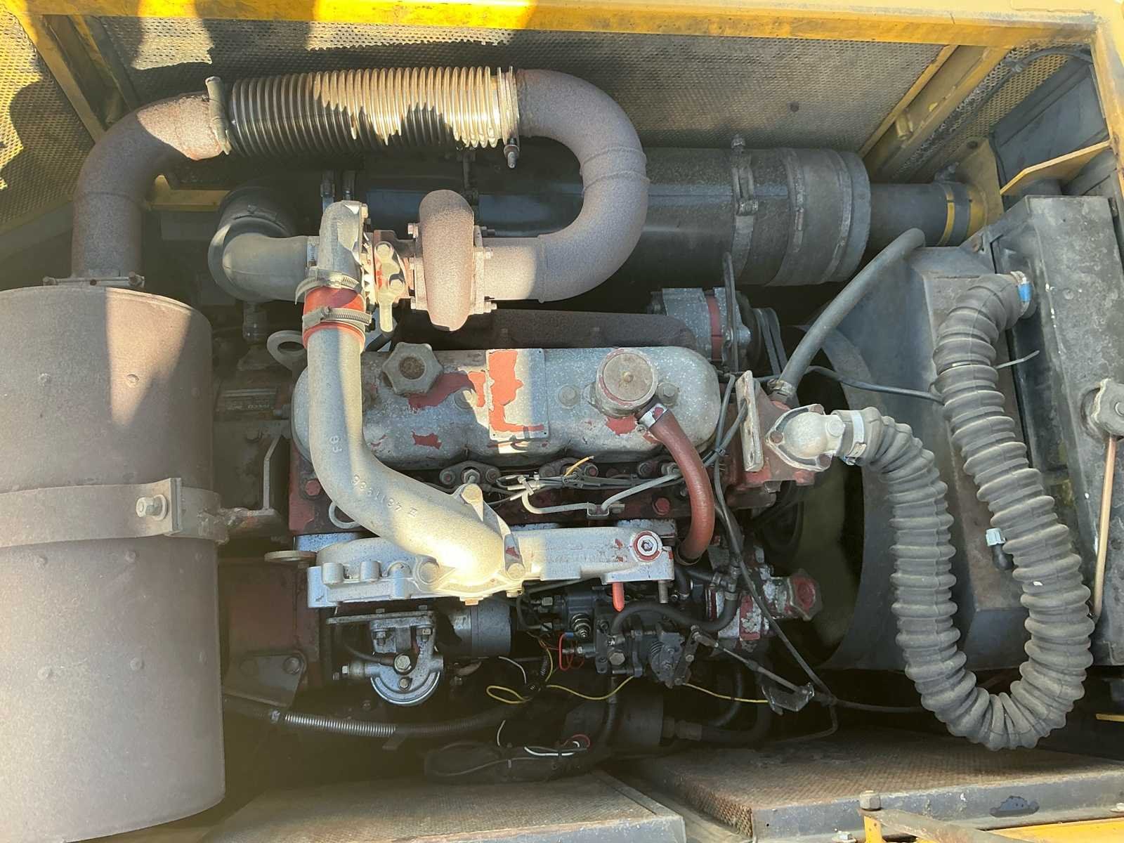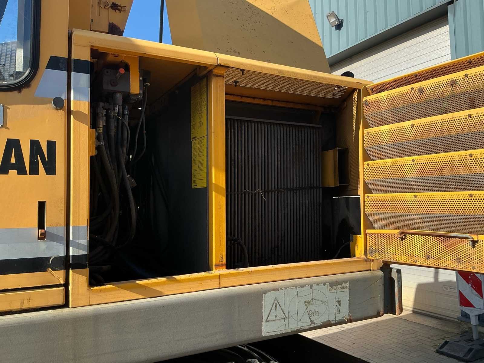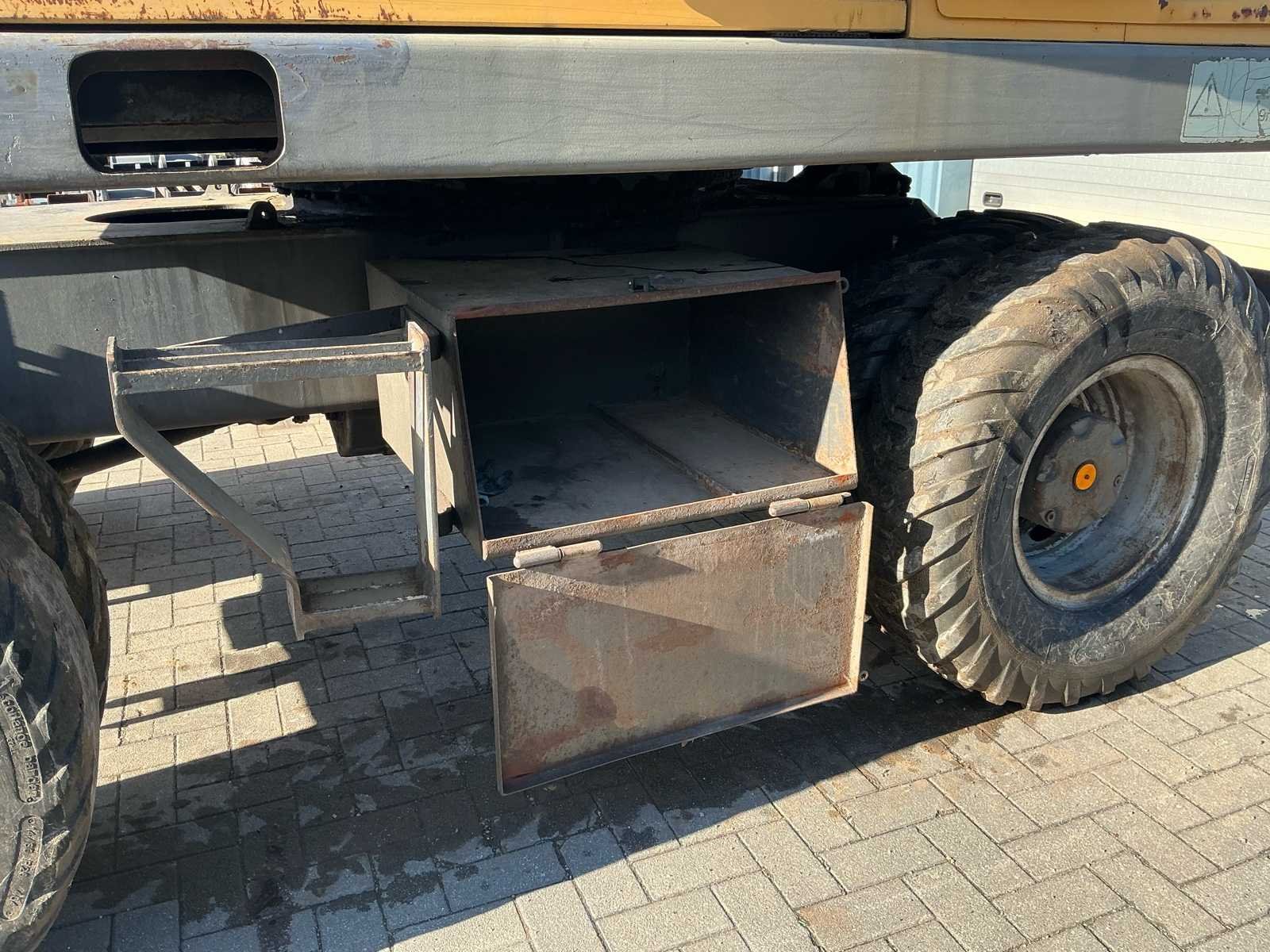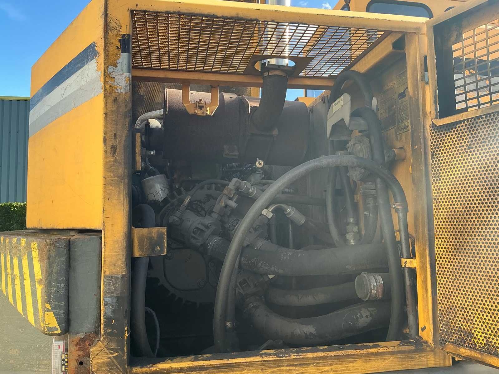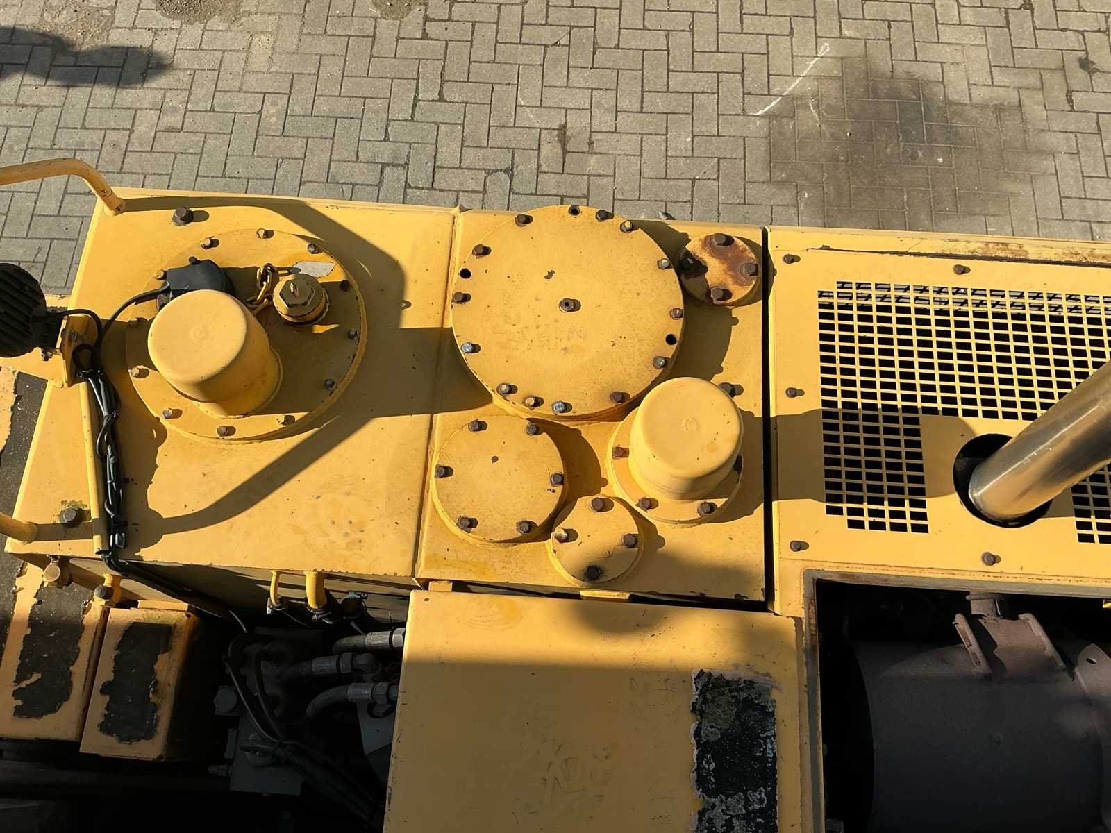 Åkerman H5M mobiele graafmachine – bouwjaar 1992 Hydraulische graafmachine met beperkte hijsfunctie, maximale hijslast 1.030 kg. Uitgerust met 4x4 en voor meer stabiliteit voorzien van dubbele wielen, verstelbare giek (4,4 + 2,4 m), en dieselmotor. Machine compleet met cabine, verlichting en hydraulische aansluitingen. Zie video voor demonstratie. Gewicht ca. 15.500 kg – hefhoogte 7,3 m – type H5M97. No Merk: Akerman Type: H5M Bandenkraan Serienummer: H5M97 Merk motor: Volvo TD 40 Motorvermogen (kW): 88kW Aantal cilinders: 4 Brandstof: Diesel Bedrijfsgewicht: 15500kg Gieklengte: 4400mm Max. werkbereik: 7300mm Cabine: true Afgelezen urenstand: 15891 Eigen gewicht: 14800kg Totale afmeting L: 7200mm Totale afmeting Breedte: 2350mm Totale afmeting Hoogte: 3000mm