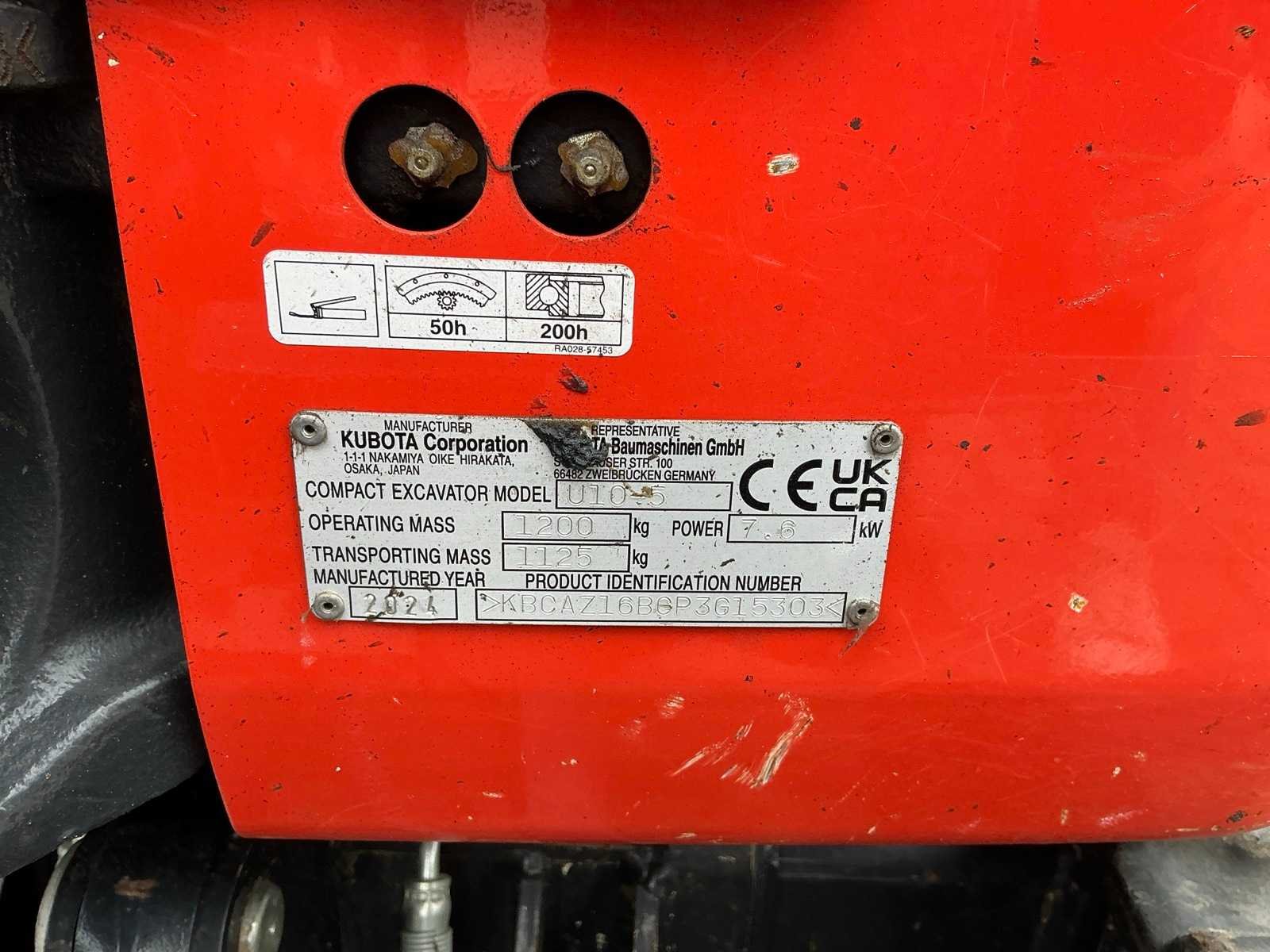 Gecodeerde sleutels aanwezig inclusief 2 andere graafbakken Nee Merk: Kubota Type: U10-5 Bouwjaar: 2024 Serienummer: KBCAZ16B0P3G15303 Merk motor: Kubota Motorvermogen (kW): 7.6kW Brandstof: Diesel Bedrijfsgewicht: 1200kg Inclusief graafbak: Yes Graafbak afm. l: 80mm Graafbak afm. b: 30mm Rups breedte: 18mm Afgelezen urenstand: 575 Eigen gewicht: 1125kg