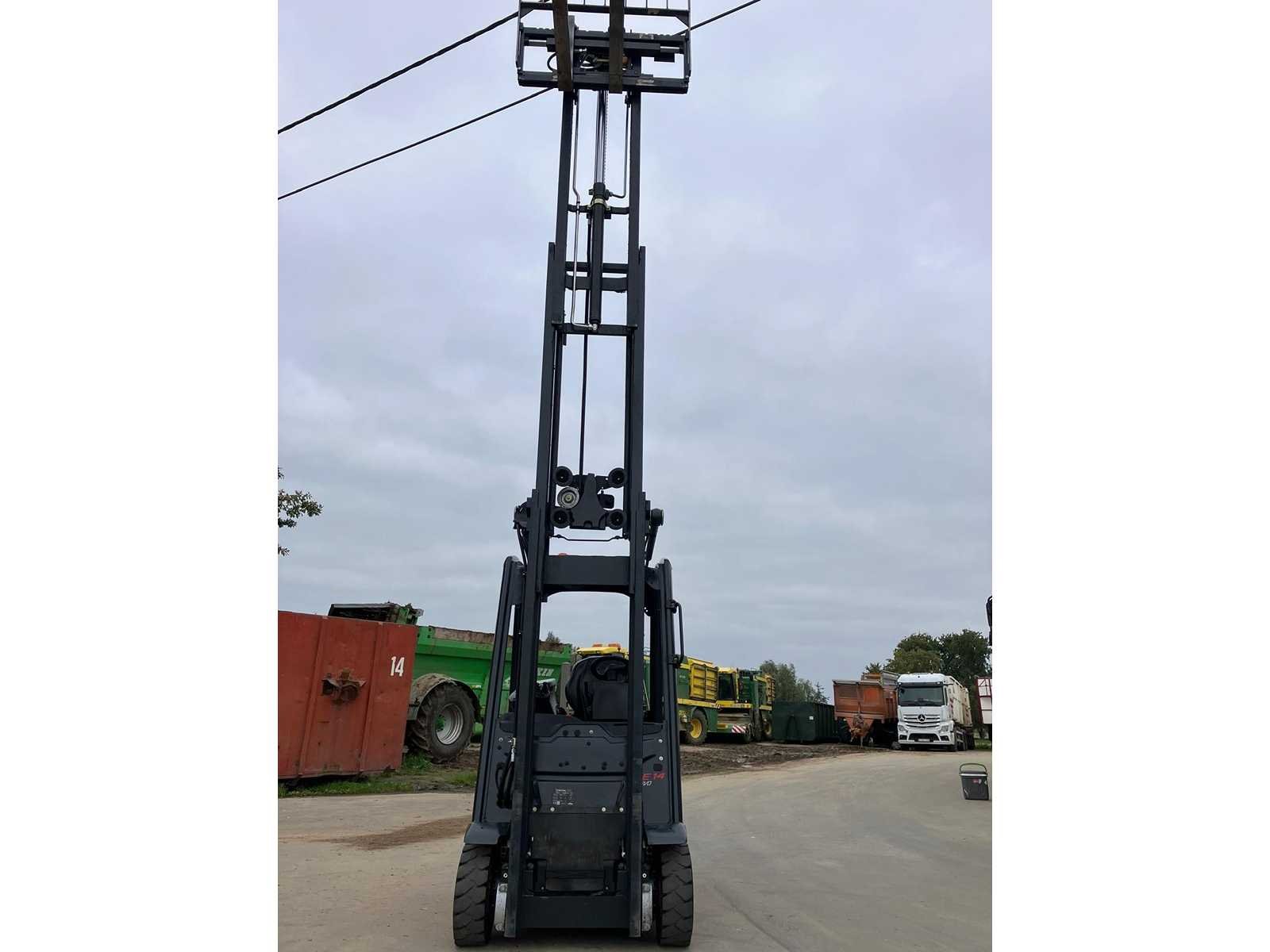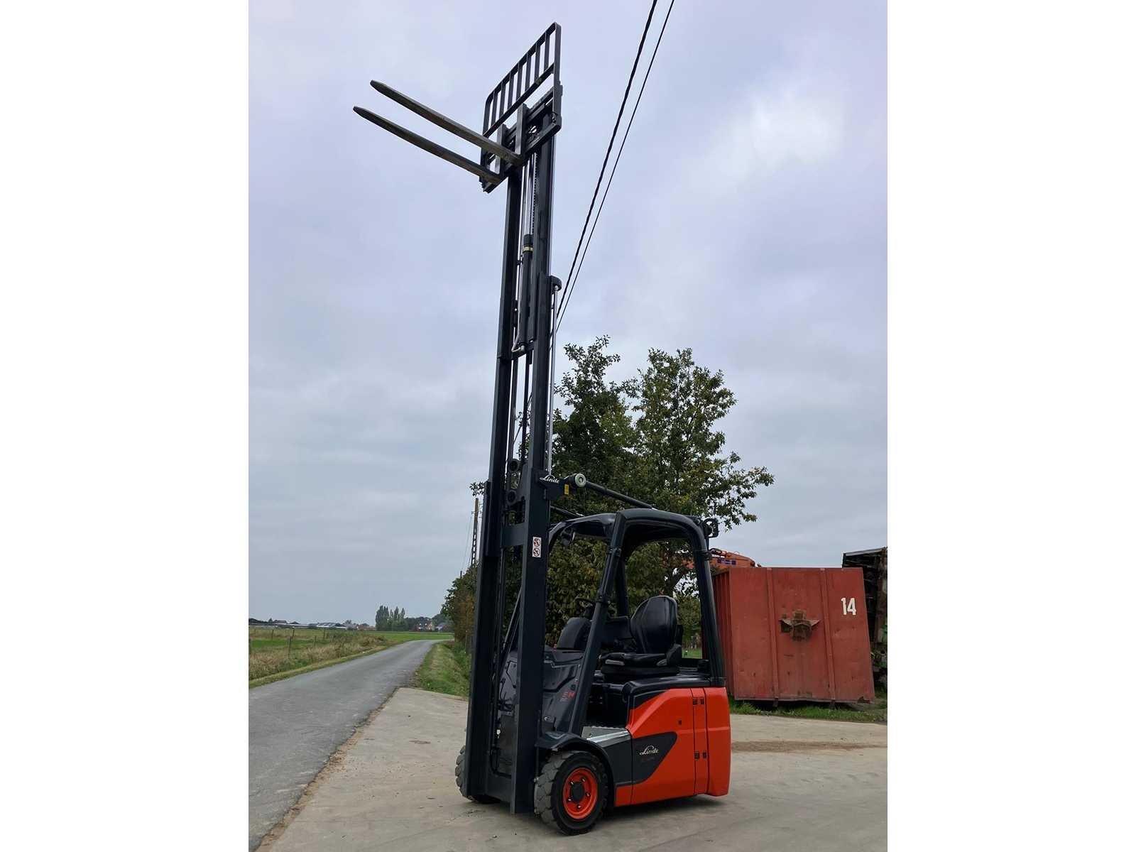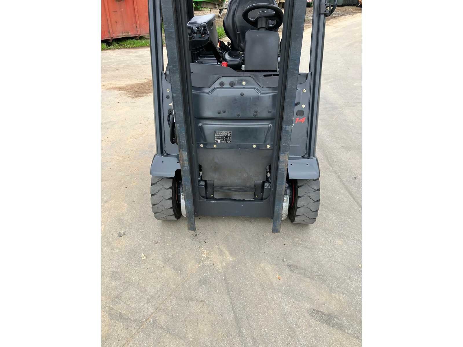 Vermogen: 2 × 4.6 kW Batterijspanning: 48V No Merk: Linde Type: E14-02 Bouwjaar: 2016 Serienummer: H2X386G12131 Brandstof: Elektrisch Free-lift: true Side-shift: true Triple mast: true Eigen gewicht: 2540kg Hefvermogen: 1400kg Vol rubber banden: true GS Code: 84271019