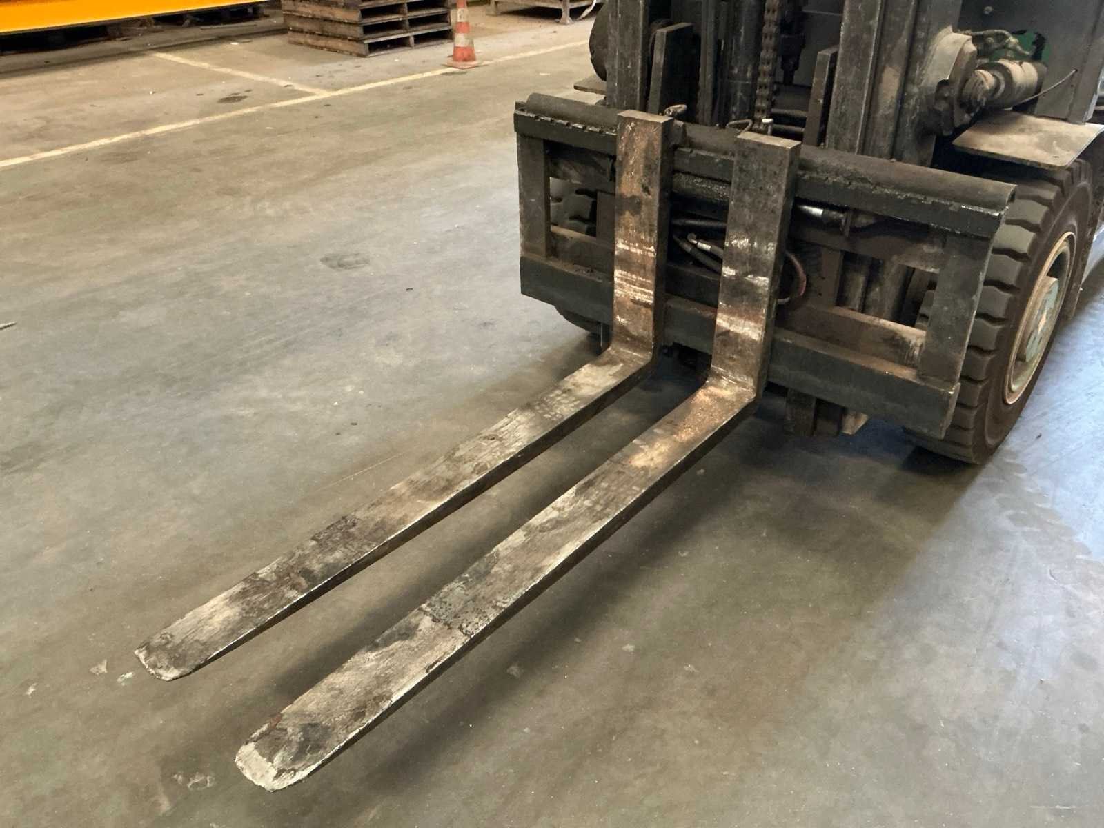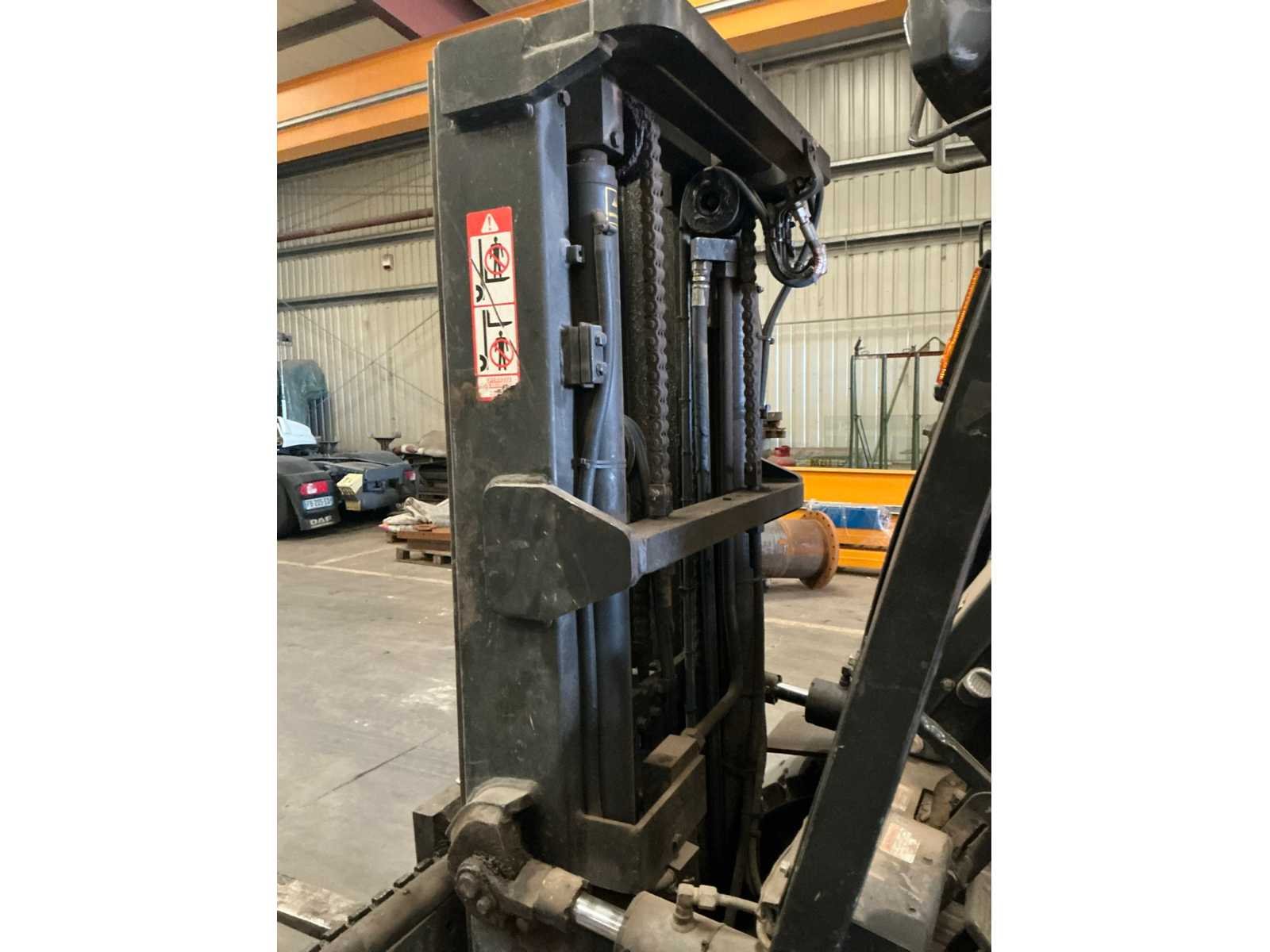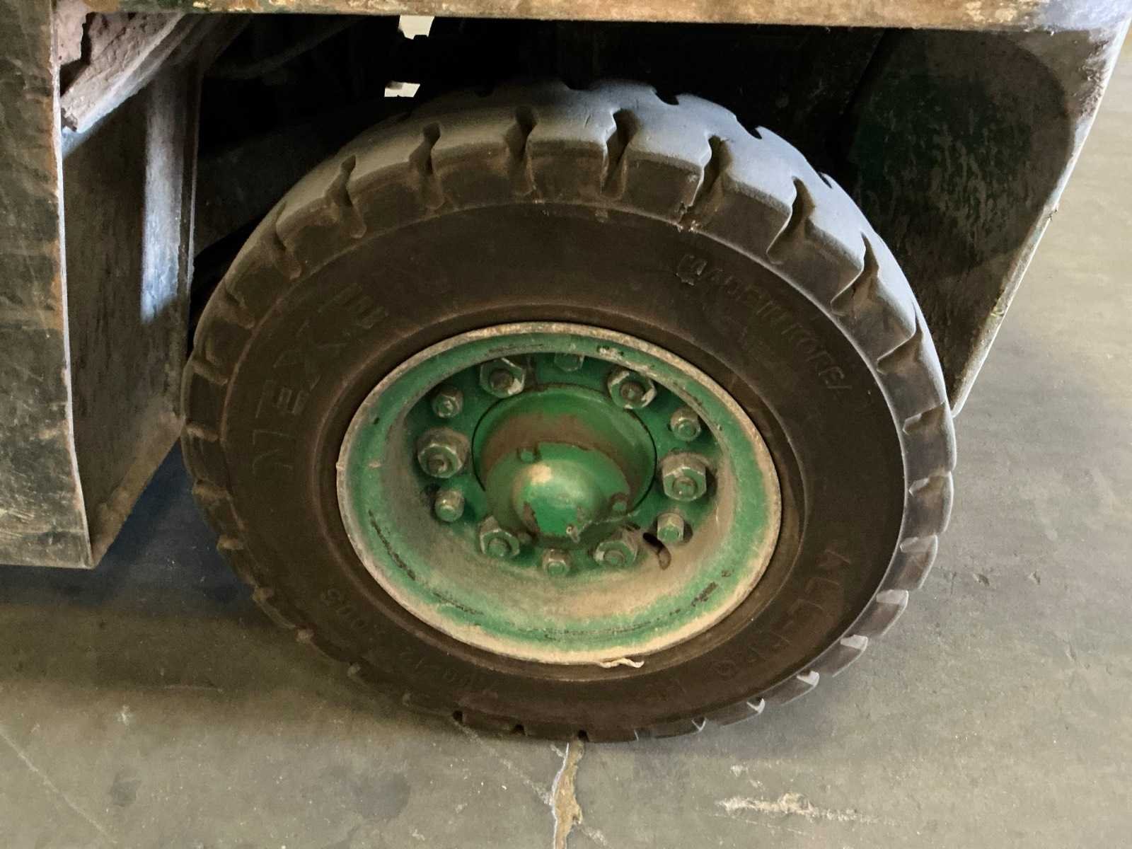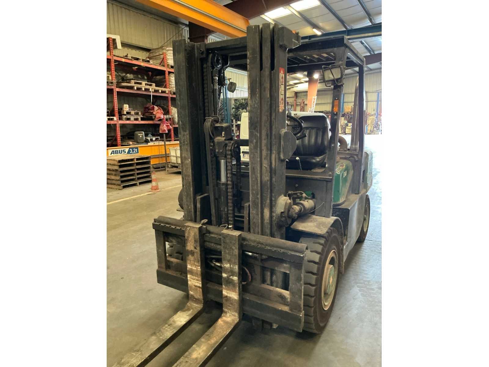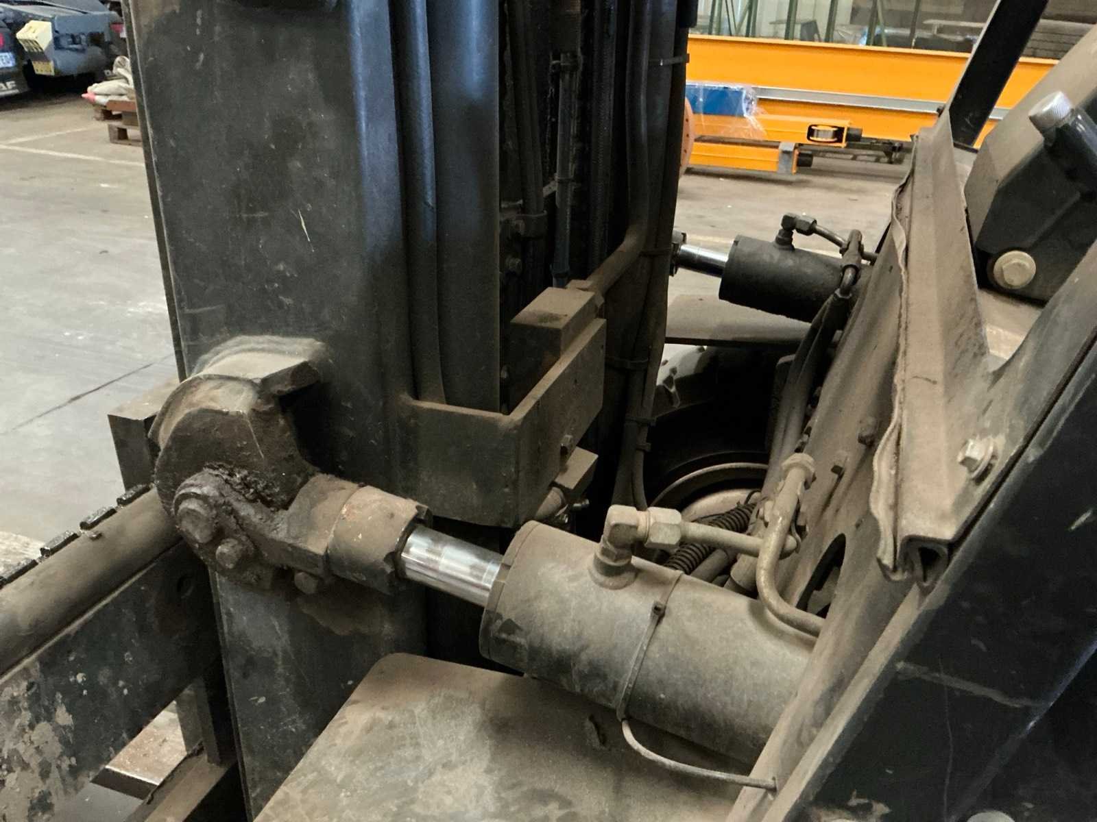 Olielek. Voorwaartse versnelling reageert traag. In werkende staat. Voorzien van zijverschuiver. Nee Merk: Daewoo Type: D40SC-2 Bouwjaar: 2001 Brandstof: Diesel Mast: Triple Soort band: Volrubber banden Afgelezen urenstand: 10730 Triple mast: true Eigen gewicht: 5840kg Hefvermogen: 4000kg Max. hefhoogte: 4250mm Vol rubber banden: true Diesel: true