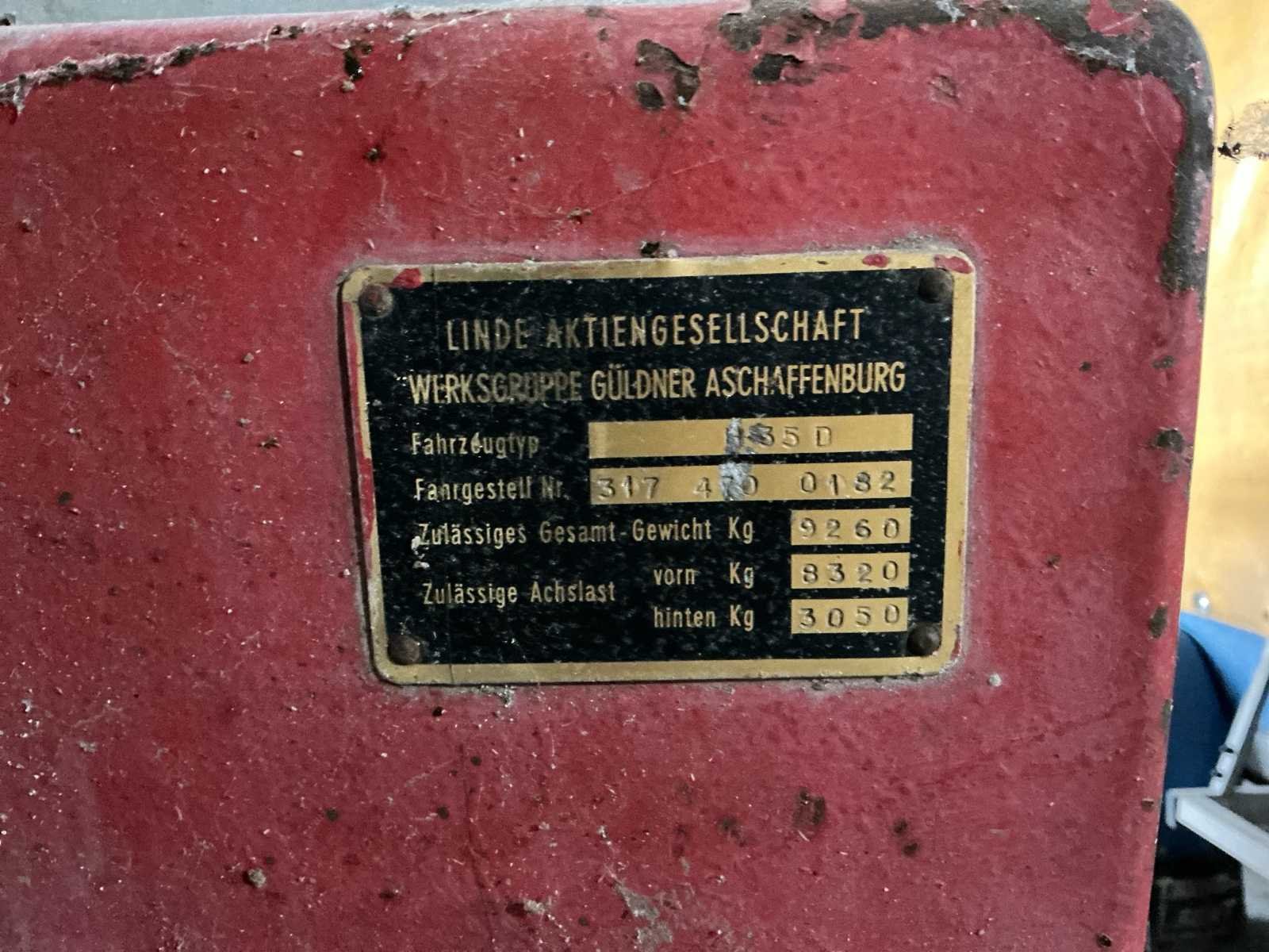 No Merk: Linde Type: H35D Aantal wielen: 4 Duplex mast: true Eigen gewicht: 9260kg Lepellengte: 1200mm Hefhoogte: 2200mm Luchtbanden: true Diesel: true