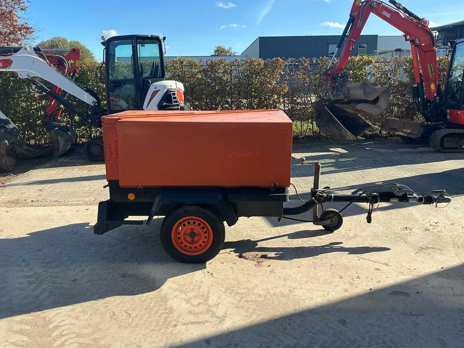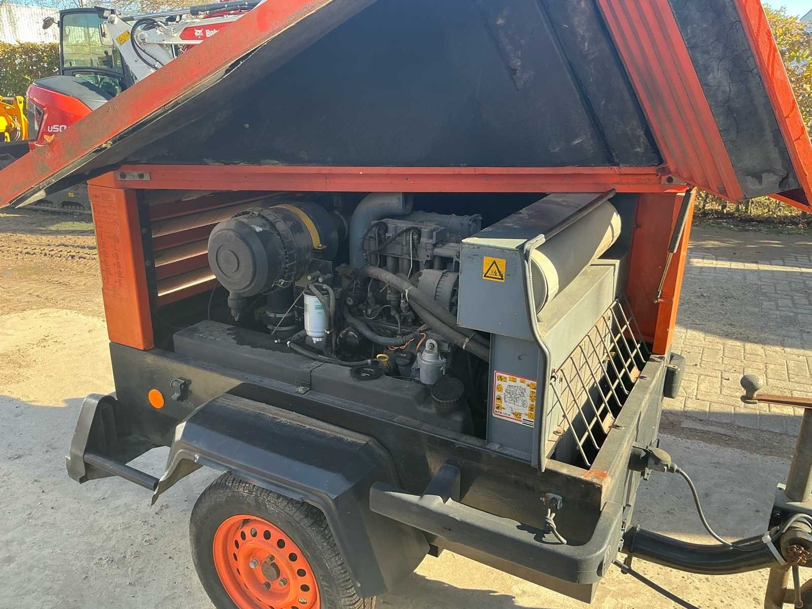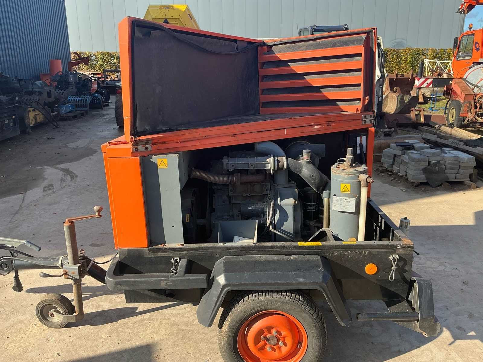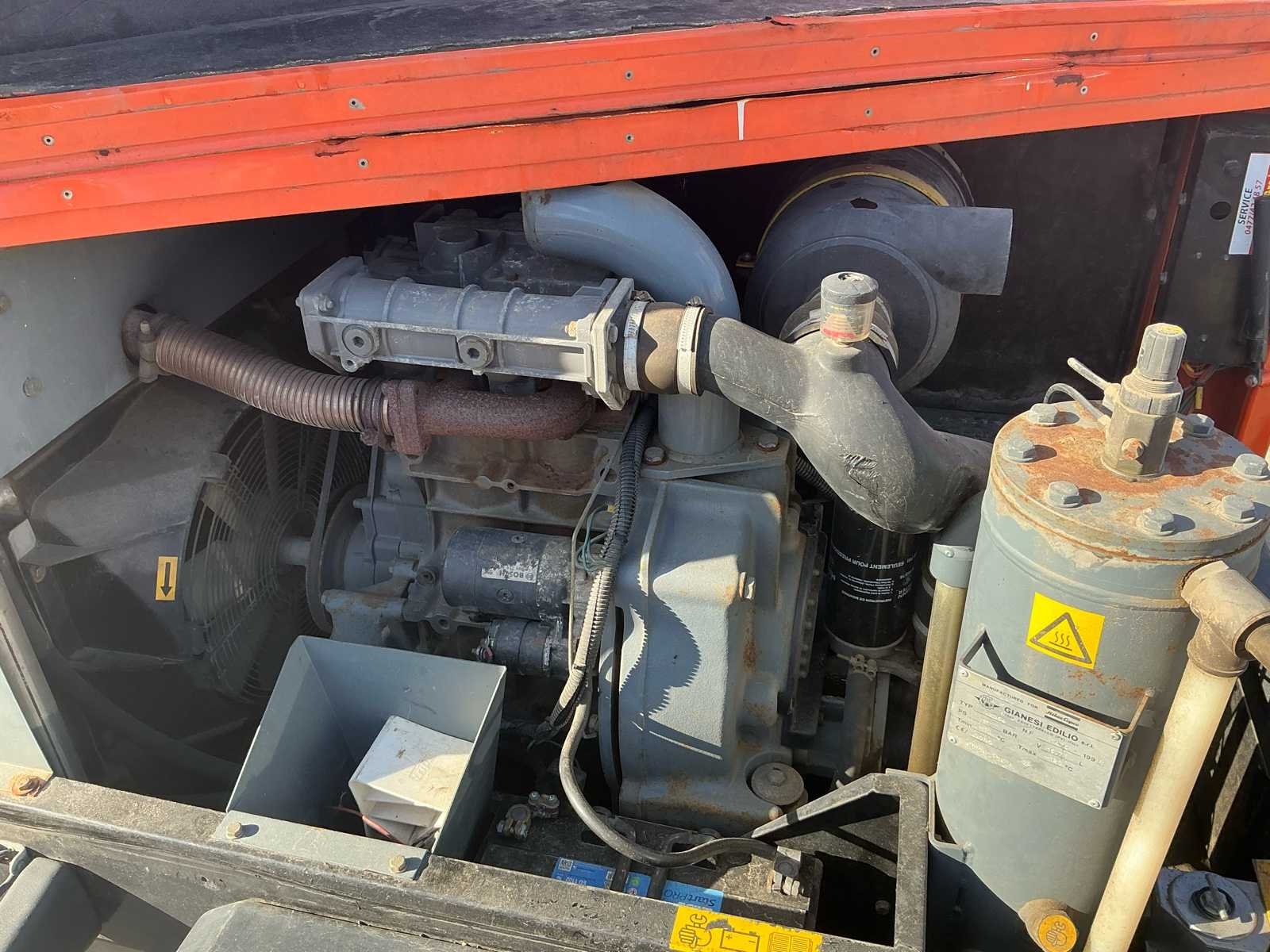 Zeer degelijke Atlas Copco mobiele compressor van bouwjaar 2009, van de fabrikant Gianesi Edilio S.r.l. (Italië) – gebouwd voor Atlas Copco en uitgerust met een Deutz F2M1011 dieselmotor (22,5 kW). De compressor levert een werkdruk van 11 bar en een luchtdebiet van circa 2.600 liter per minuut. De machine is gemonteerd op een enkelassig onderstel met kogelkoppeling, en voorzien van een geluidsgedempte stalen behuizing. De compressor verkeert in gebruikte maar complete staat. Motor draait zoals het hoort (zie video). Ideaal voor gebruik in bouw, zandstralen of pneumatisch gereedschap, of als basis voor revisie of onderdelen. No Merk: Atlas Copco Type: XAS 46 / XAHS 36 Deutz F2M 1011 Serienummer: 1476 Capaciteit.: 11bar Luchtstroom: 2600l/min Vermogen: 22kW Buffertank inhoud: 16l Afgelezen urenstand: 2787 Eigen gewicht: 900kg Totale afmeting L: 2650mm Totale afmeting Breedte: 1320mm Totale afmeting Hoogte: 1250mm