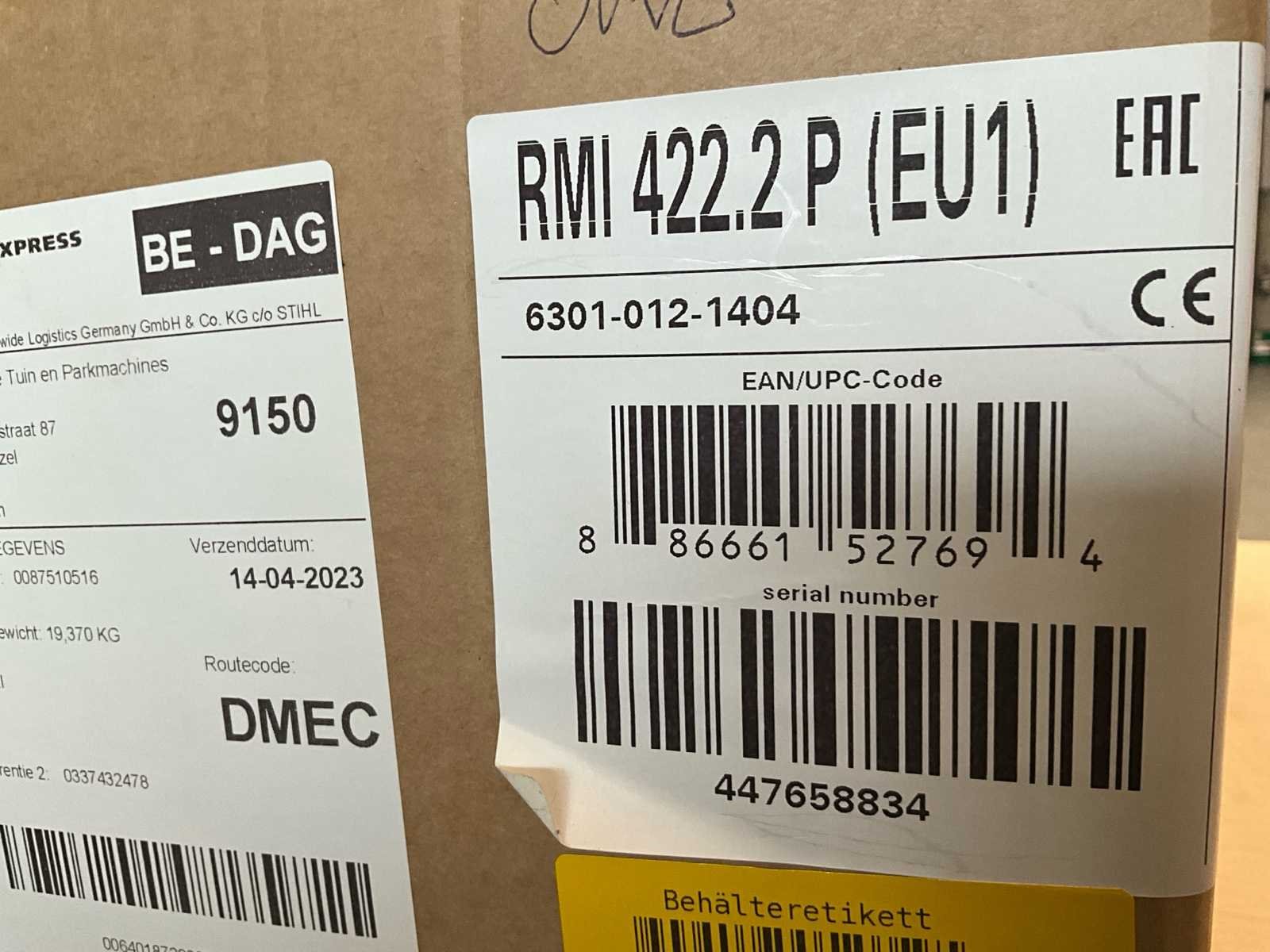 Max. Cap. 1500 vierkante meter. Nieuw toestel in de doos. No Merk: STIHL Type: RMI 422 P Bouwjaar: 2023 Serienummer: 447658834 Werkbreedte: 20cm Zelfrijdend: true Elektrisch aangedreven: true