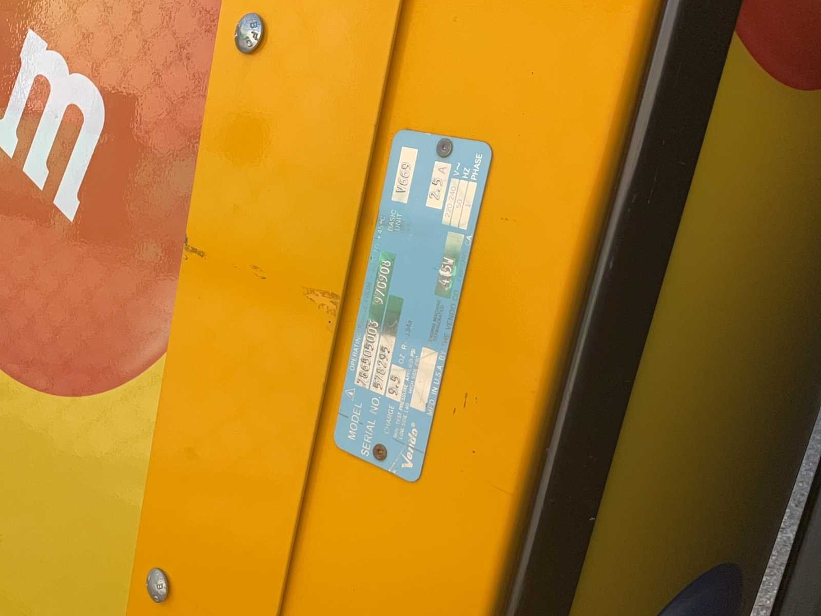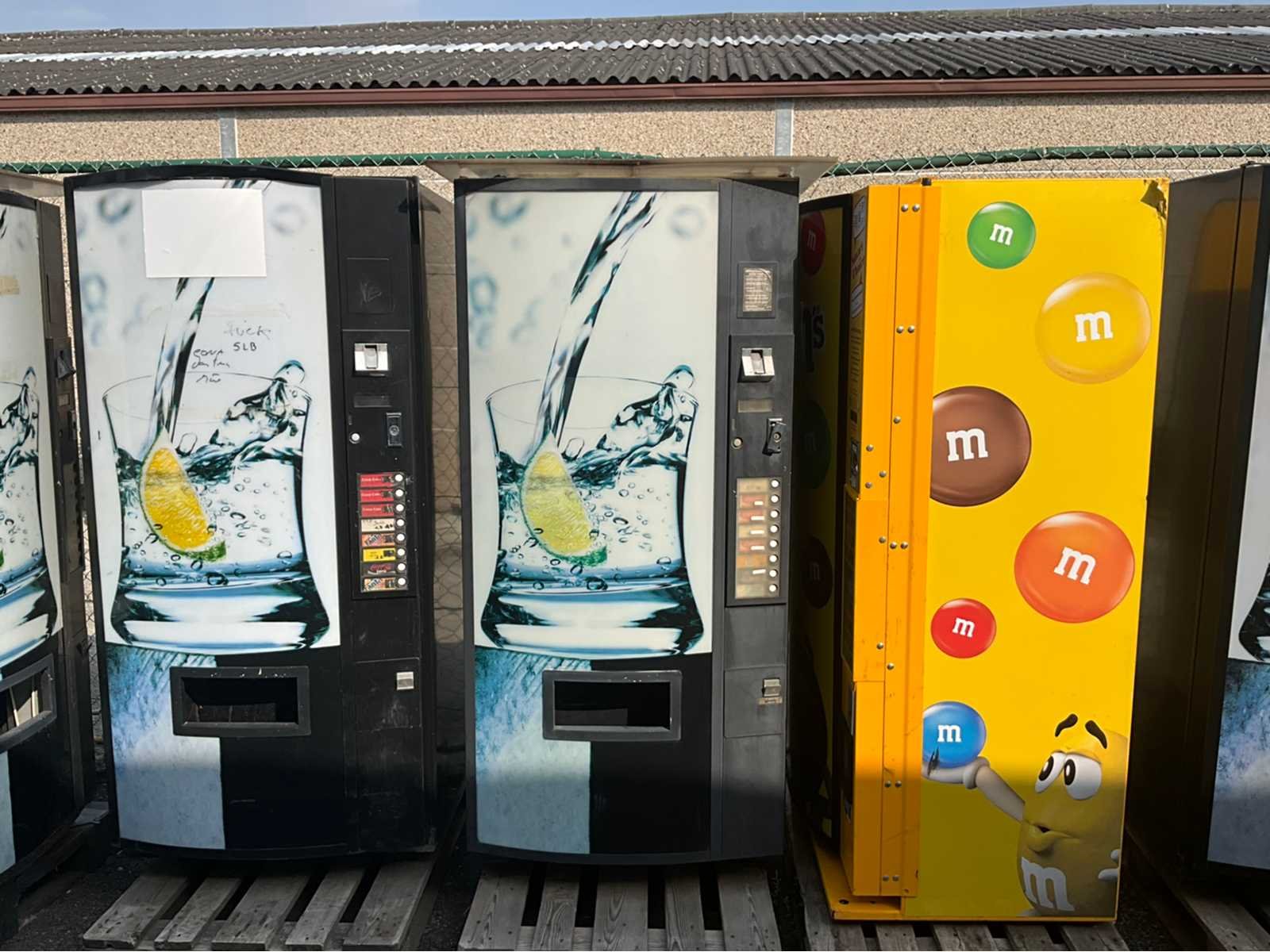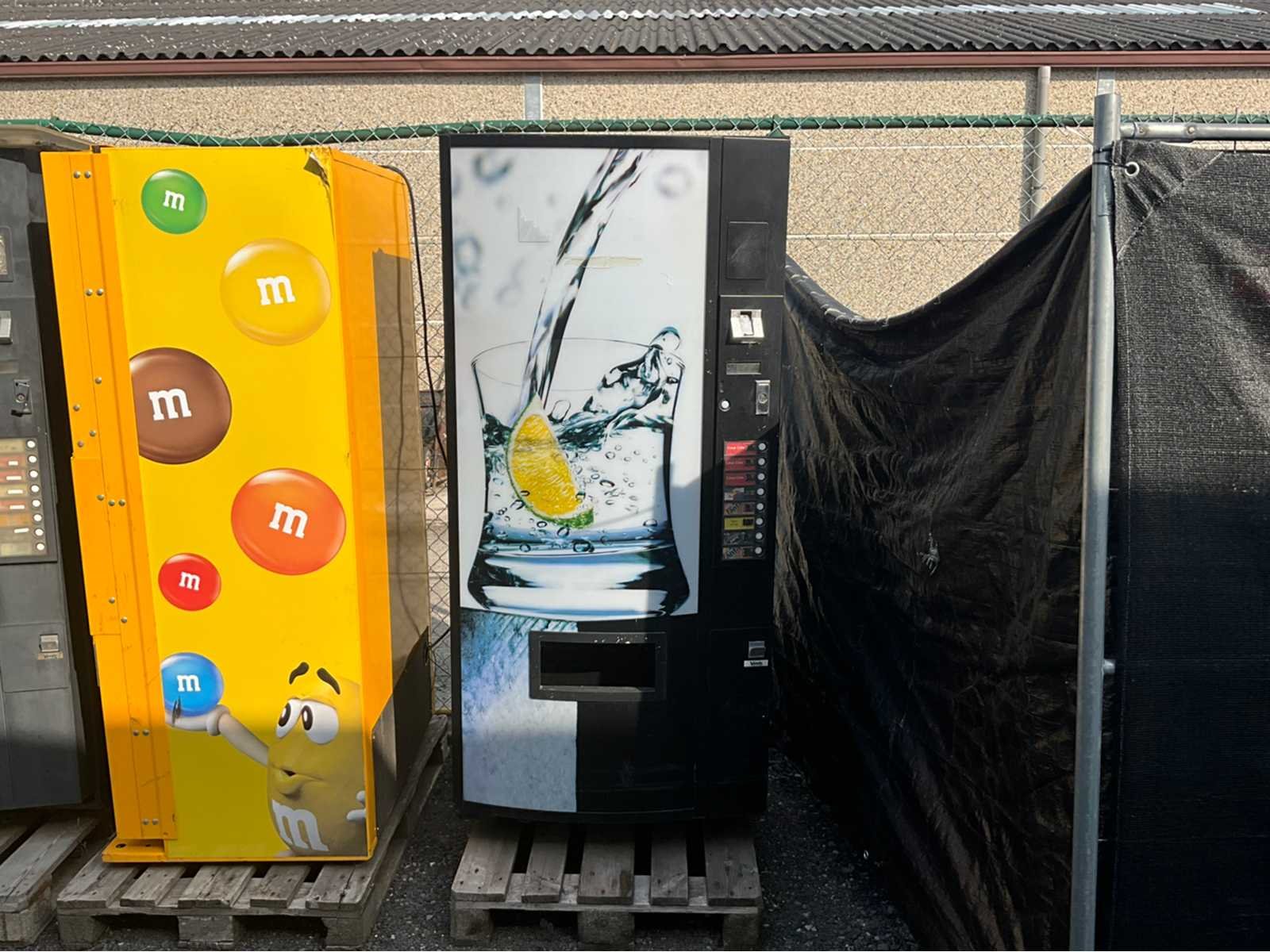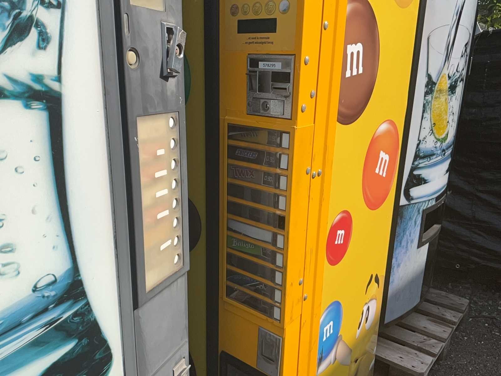 Partij van 5 stuks Sanden Vendo Verkoopautomaten. 1x Snoep/Snack automaat in gele kleur met reclame van M & M’s in werkende staat. 3x drankautomaat (zwarte) in werkende staat. 1x drankautomaat (zwarte) in niet werkende staat. Inclusief 5 werkende munters die toebehoren aan deze machine. Machines hebben zeker nazicht nodig voor ingebruikstelling. Zie foto’s voor meer info (typeplaatsjes). Nee Merk: Sanden Vendo