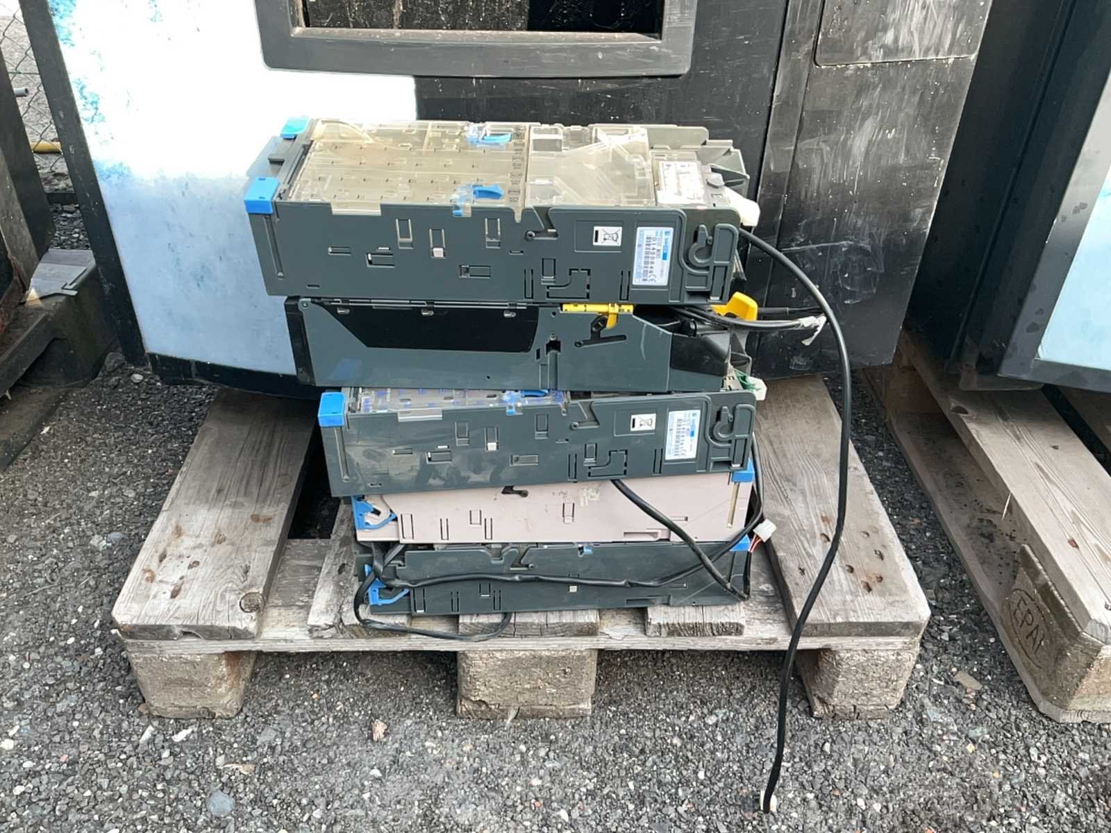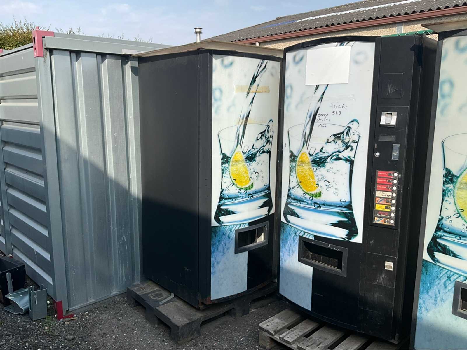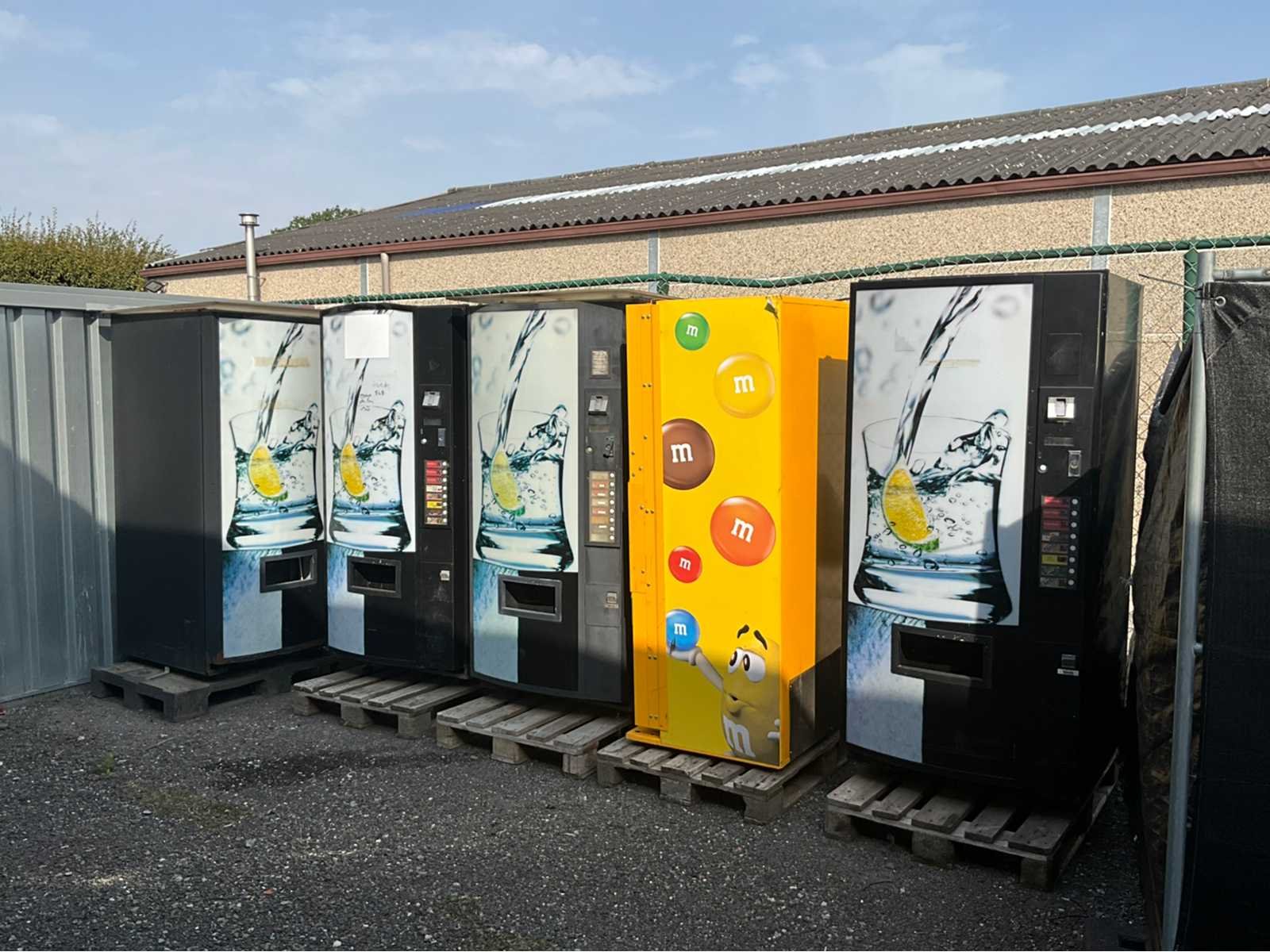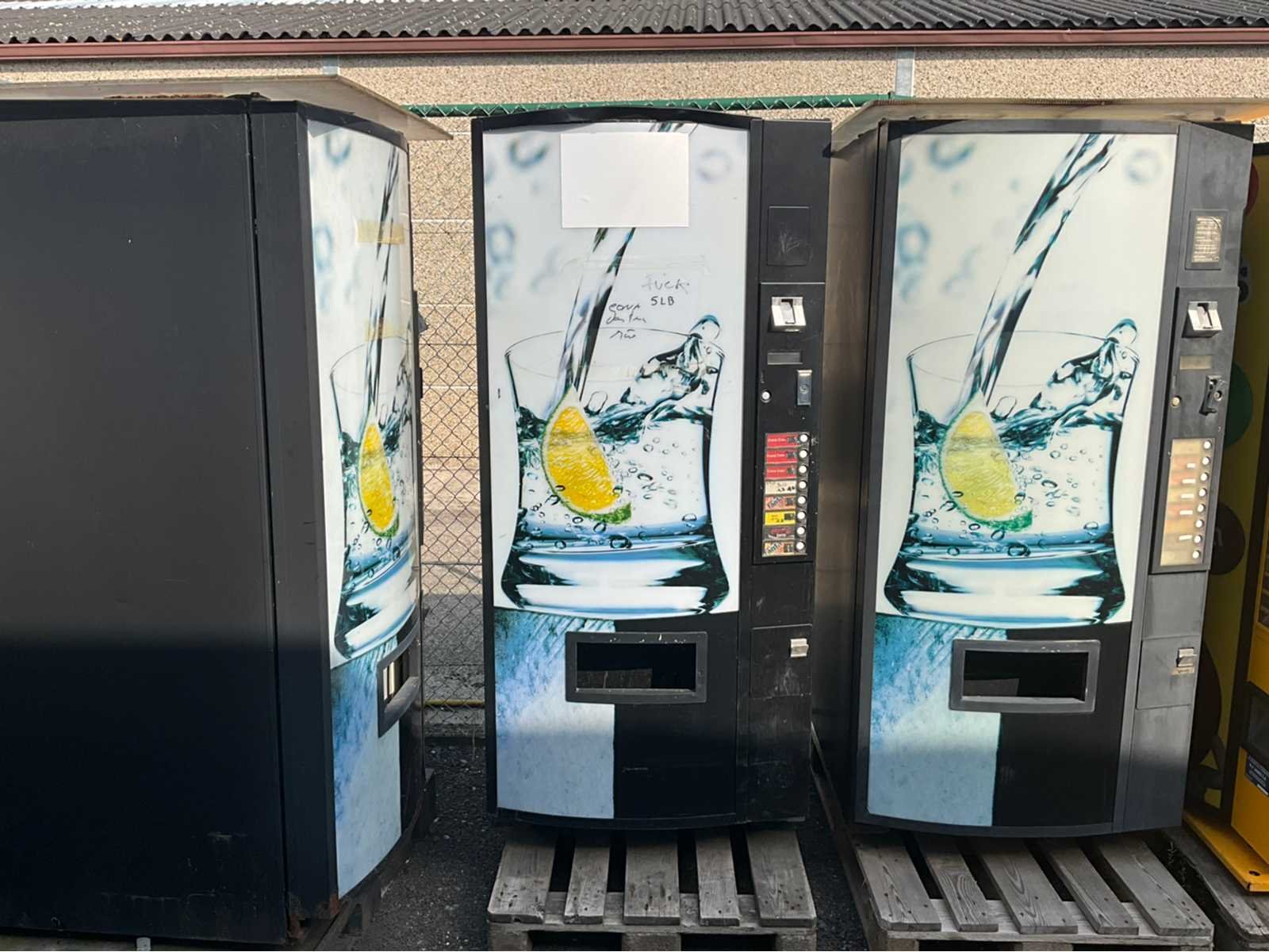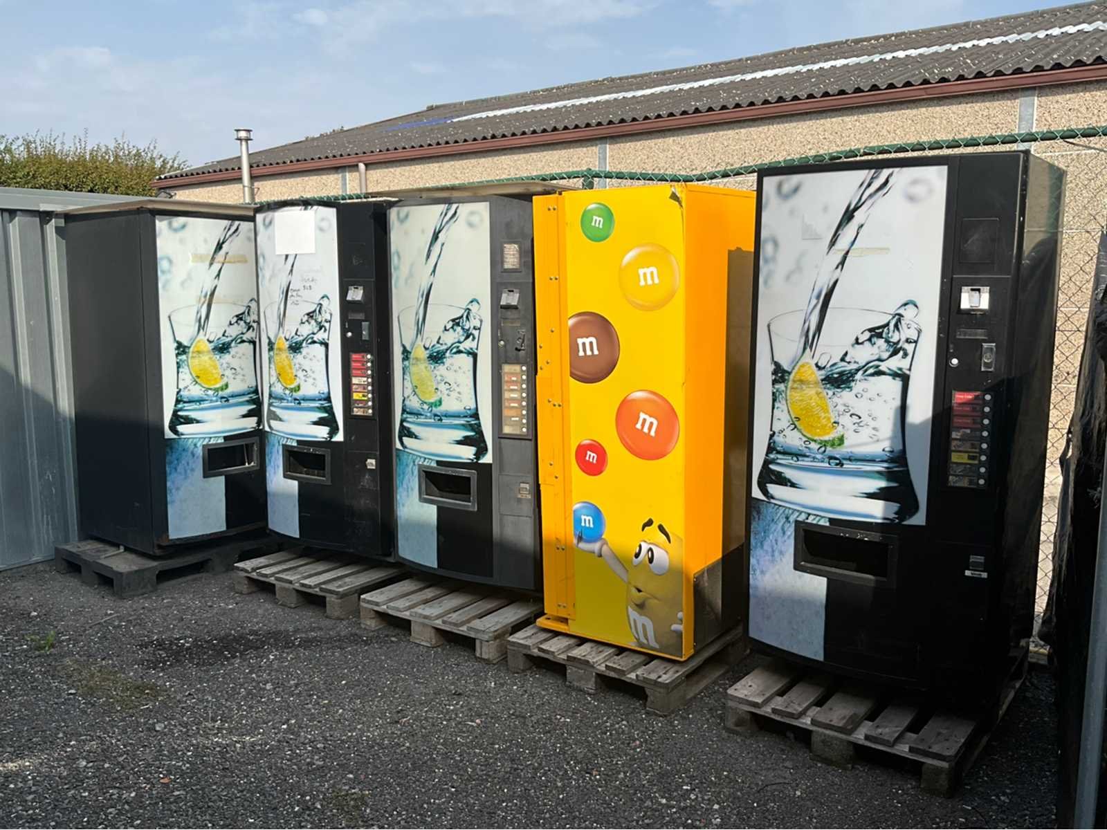 Partij van 5 stuks Sanden Vendo Verkoopautomaten. 1x Snoep/Snack automaat in gele kleur met reclame van M & M’s in werkende staat. 3x drankautomaat (zwarte) in werkende staat. 1x drankautomaat (zwarte) in niet werkende staat. Inclusief 5 werkende munters die toebehoren aan deze machine. Machines hebben zeker nazicht nodig voor ingebruikstelling. Zie foto’s voor meer info (typeplaatsjes). Nee Merk: Sanden Vendo