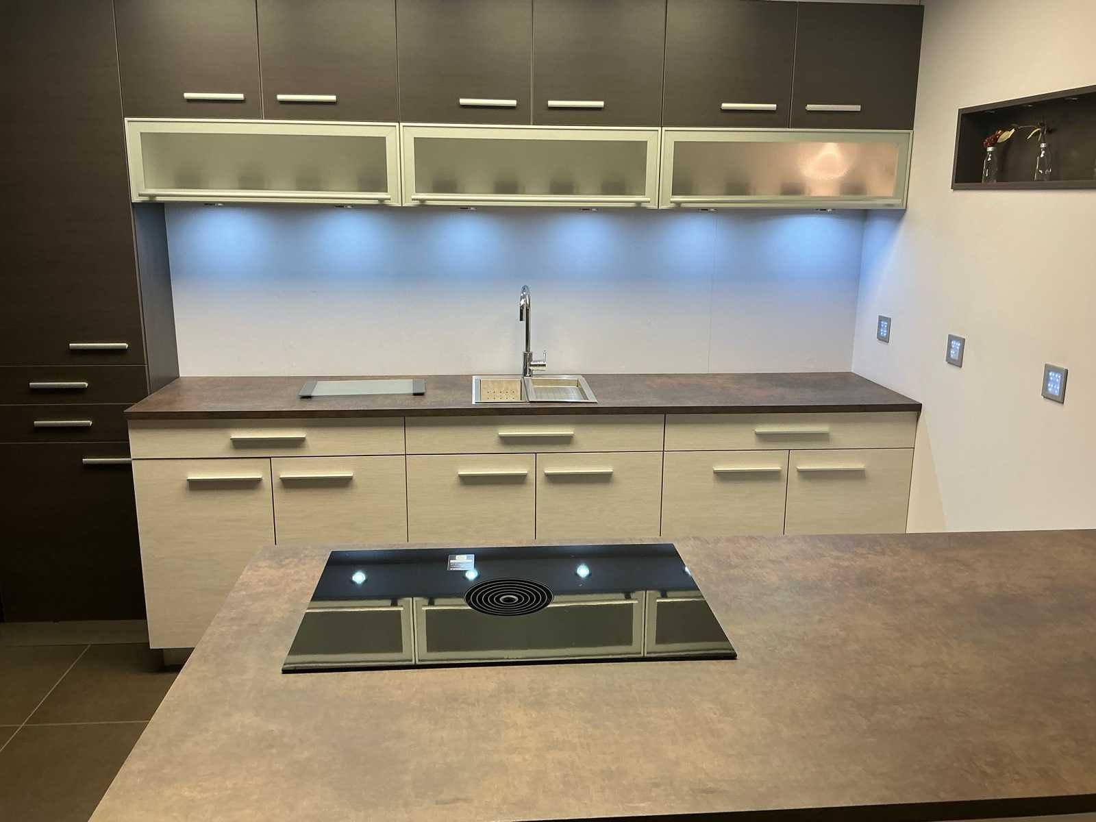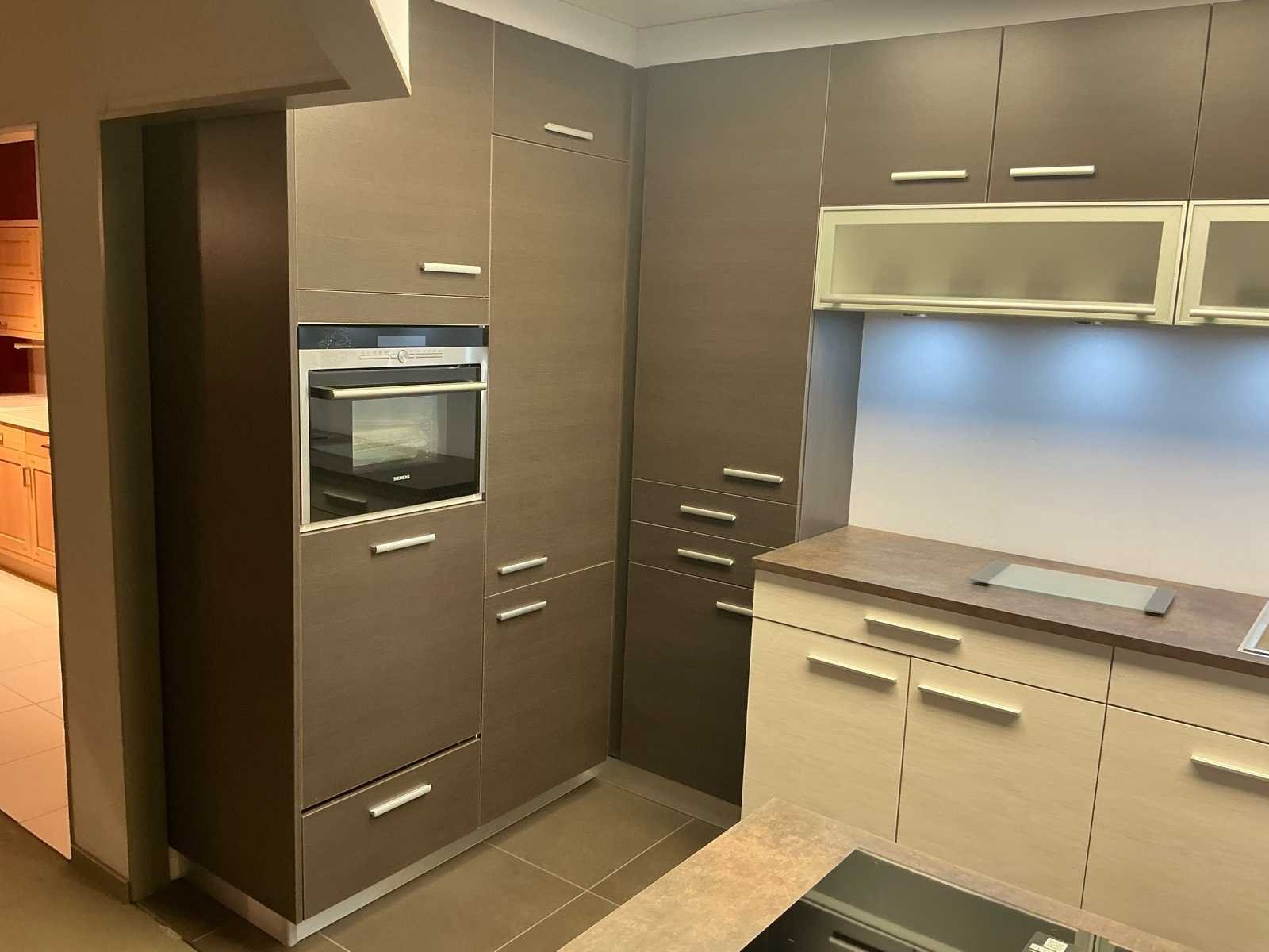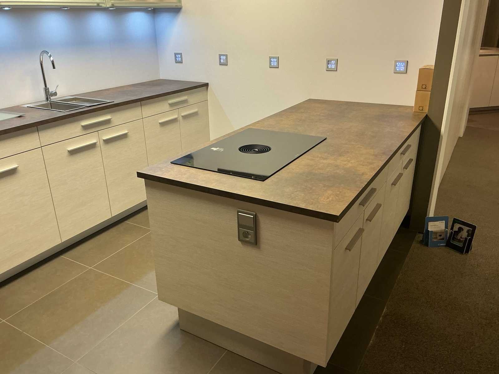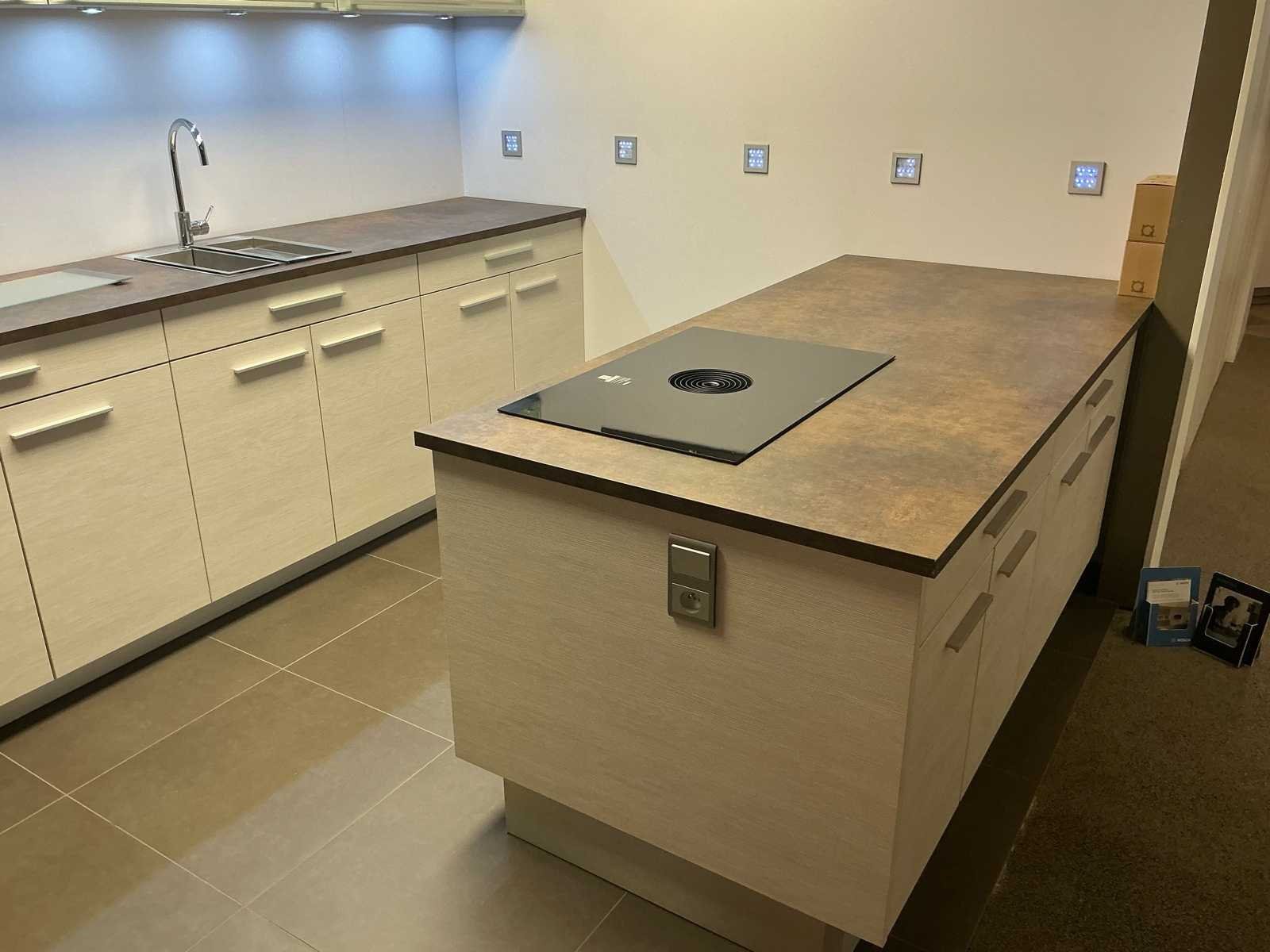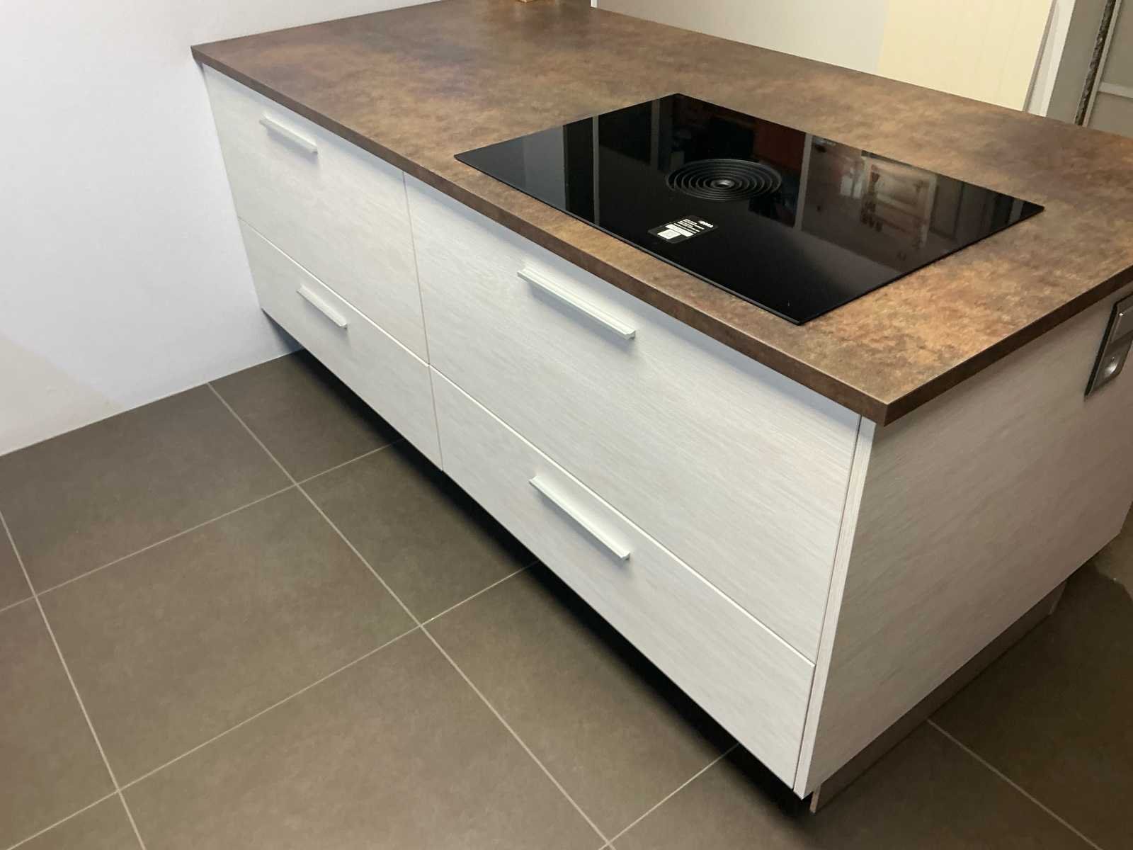 Toonzaal keuken te koop wegens verbouwing toonzaal. Werkblad in laminaat met een dikte van 3cm L. 2m04cm- B. 96cm, ZONDER kookplaat, werkblad met spoelbak heeft een lengte van 2m 70cm. en een breedte van 60cm, hoogte kasten 2m31 cm, hoogte eiland 90cm en hoogte met spoelbak 97cm. Zelf uit te breken voor geen schade te veroorzaken voor verkoop. No Gootsteen: Caressi Magnetron: Combi. Siemens Vaatwasser: Siemens